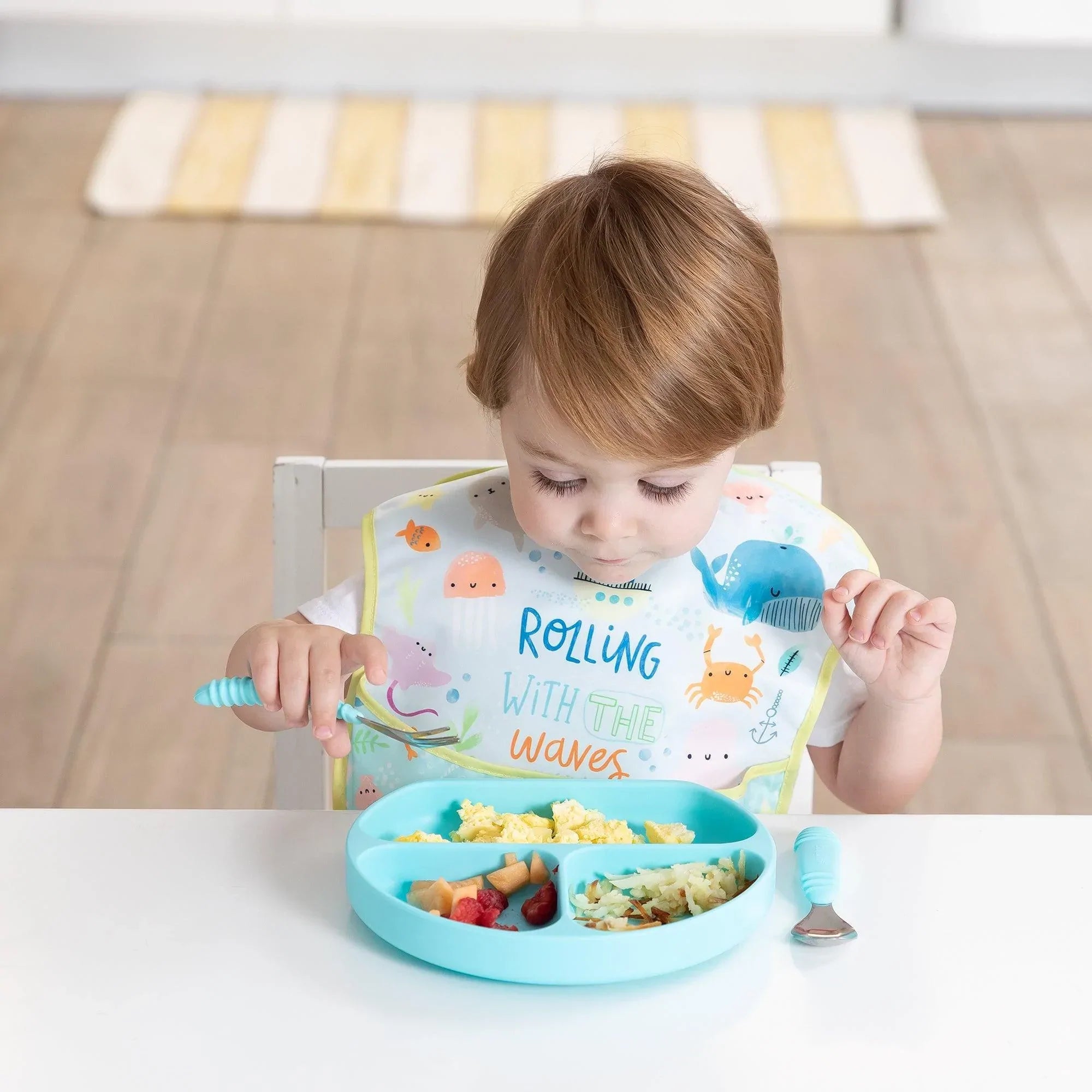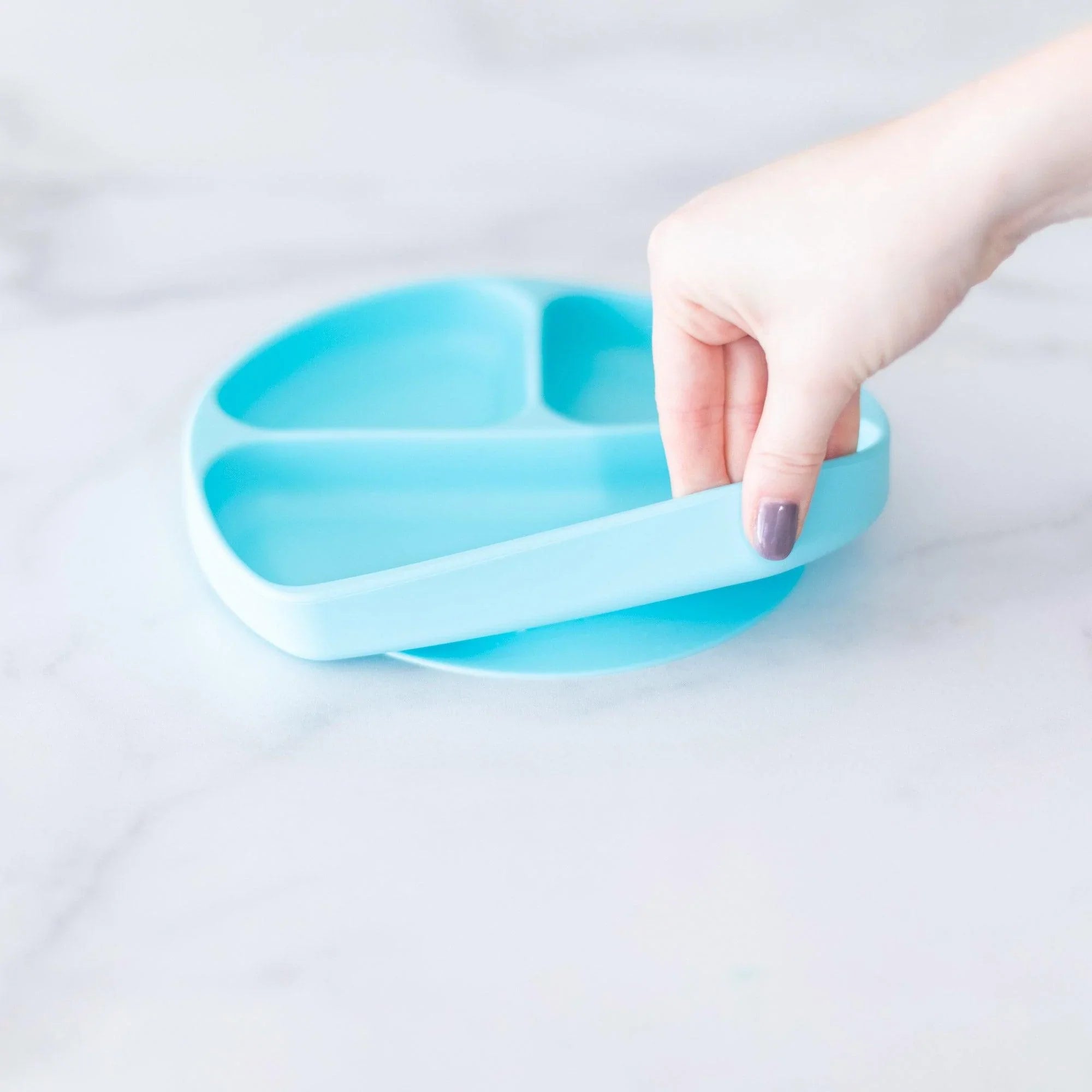 Our Silicone Grip Dish is perfect for little eaters. The divided plate is perfectly sized for toddler portions. A strong suction base ensures the dish stays put – even with the most aggressive toddler! Great for use on highchair trays or tables. A straight side allows kids to belly up to the plate, allowing less of a mess. Silicone can withstand low and high temperatures, easily transitioning from the refrigerator or freezer to the oven or microwave. Made with 100% food-safe silicone that’s durable, stain and bacteria resistant.