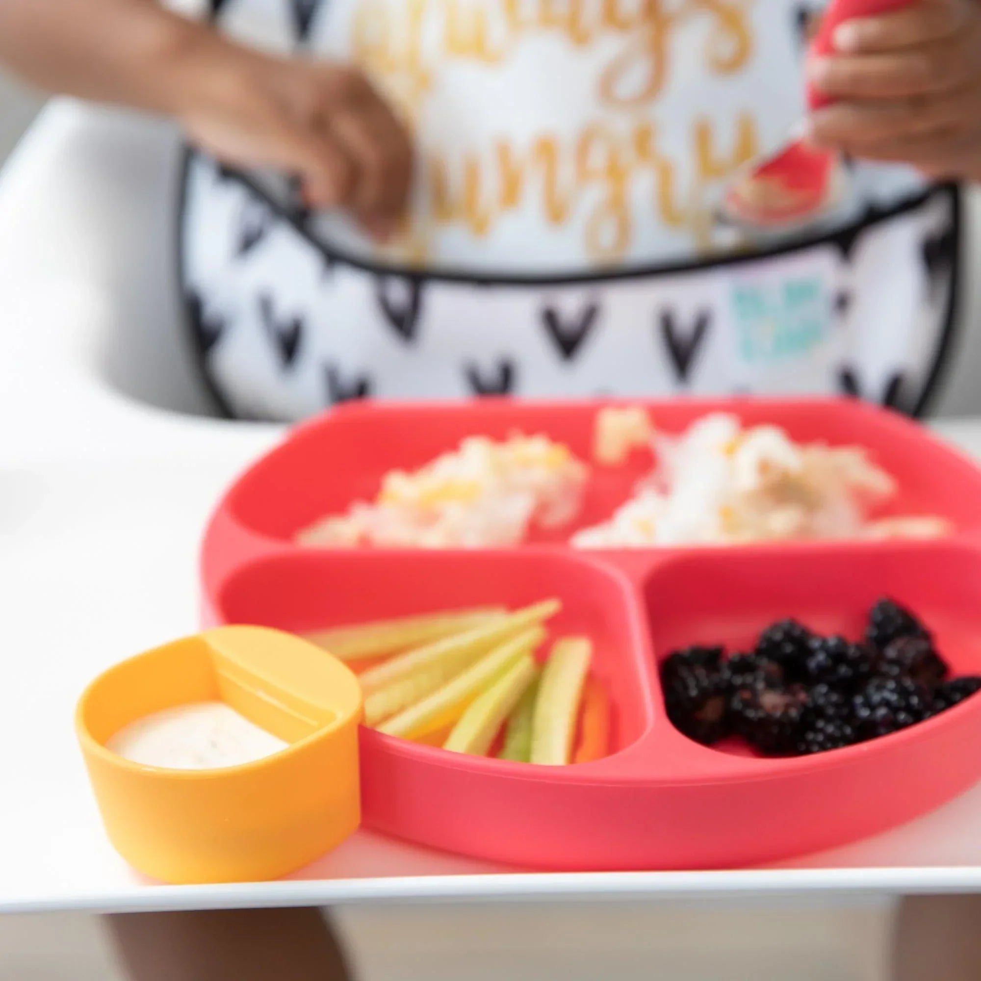 Our Silicone Grip Dish is perfect for little eaters. The divided plate is perfectly sized for toddler portions. A strong suction base ensures the dish stays put – even with the most aggressive toddler! Great for use on highchair trays or tables. A straight side allows kids to belly up to the plate, allowing less of a mess. Silicone can withstand low and high temperatures, easily transitioning from the refrigerator or freezer to the oven or microwave. Made with 100% food-safe silicone that’s durable, stain and bacteria resistant.
