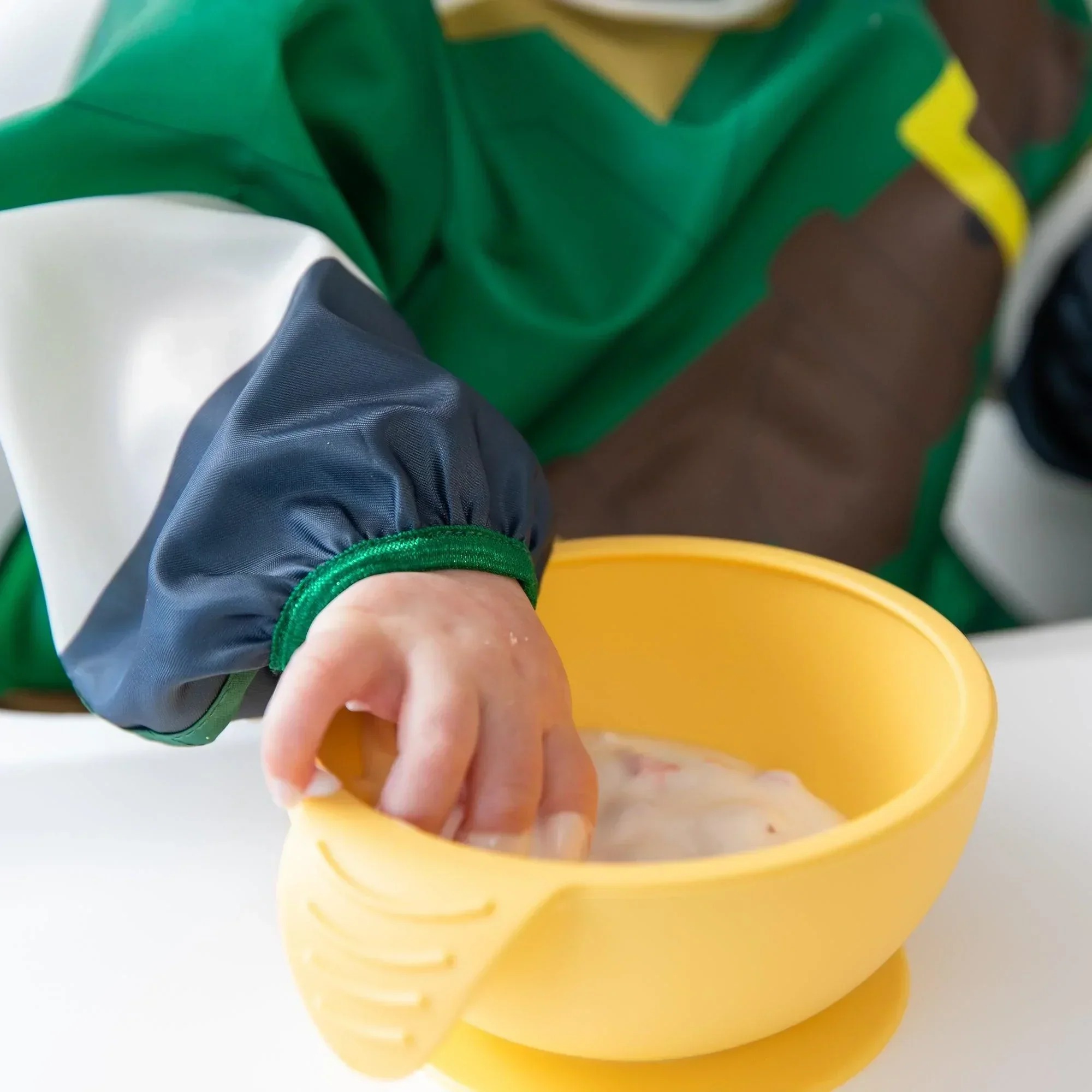 Das Lätzchen mit Ärmeln ist großzügig bemessen und ideal zum Füttern des Babys. Es besteht aus dem leichten, strapazierfähigen und wasserdichten Stoff von Bumkins, der flecken- und geruchsabweisend ist. Da der Stoff nur aus einer Lage besteht, müssen Sie sich keine Sorgen machen, dass sich zwischen den Lagen ekliges Zeug ansammelt. Die Passform lässt sich mit dem Rückenband und den elastischen Bündchen an Ihr Kind anpassen. Eine große Auffangtasche hilft, verschüttete Flüssigkeiten, Krümel und vieles mehr aufzufangen. Abwaschbar und maschinenwaschbar für eine einfache Reinigung, damit Sie ihn immer wieder verwenden können!