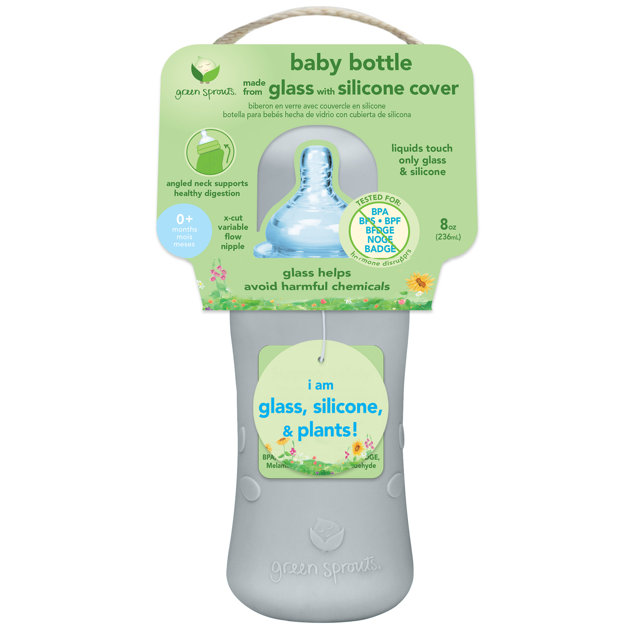 • Materialien: Glas, Pflanzenkunststoff/Polymilchsäure (PLA), Silikon