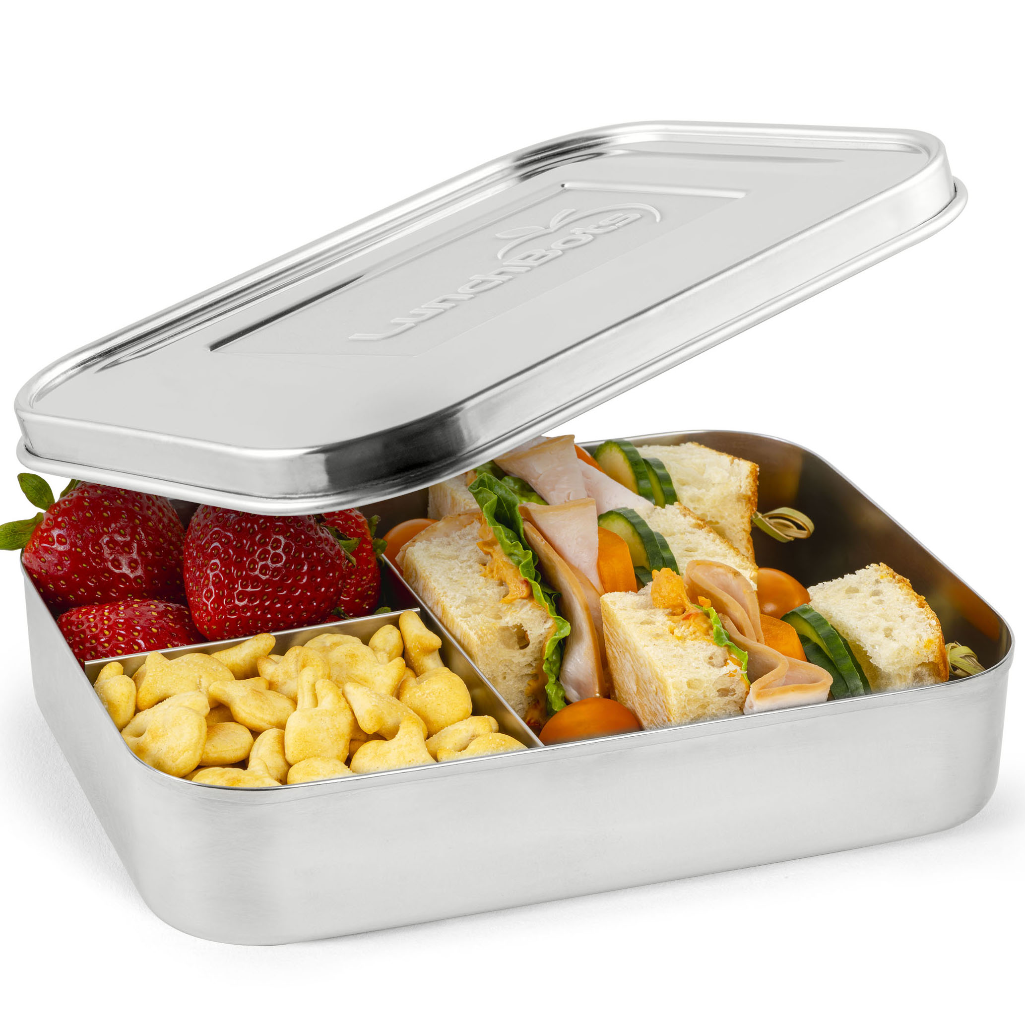 Diese geräumige Bento-Box aus Edelstahl mit 3 Fächern bietet Platz für ein komplettes Sandwich und zwei Beilagen. Sandwich-Fans jeden Alters lieben die Large Trio, denn in diesem einzigen Behälter ist genug Platz für ein ganzes Mittagessen.