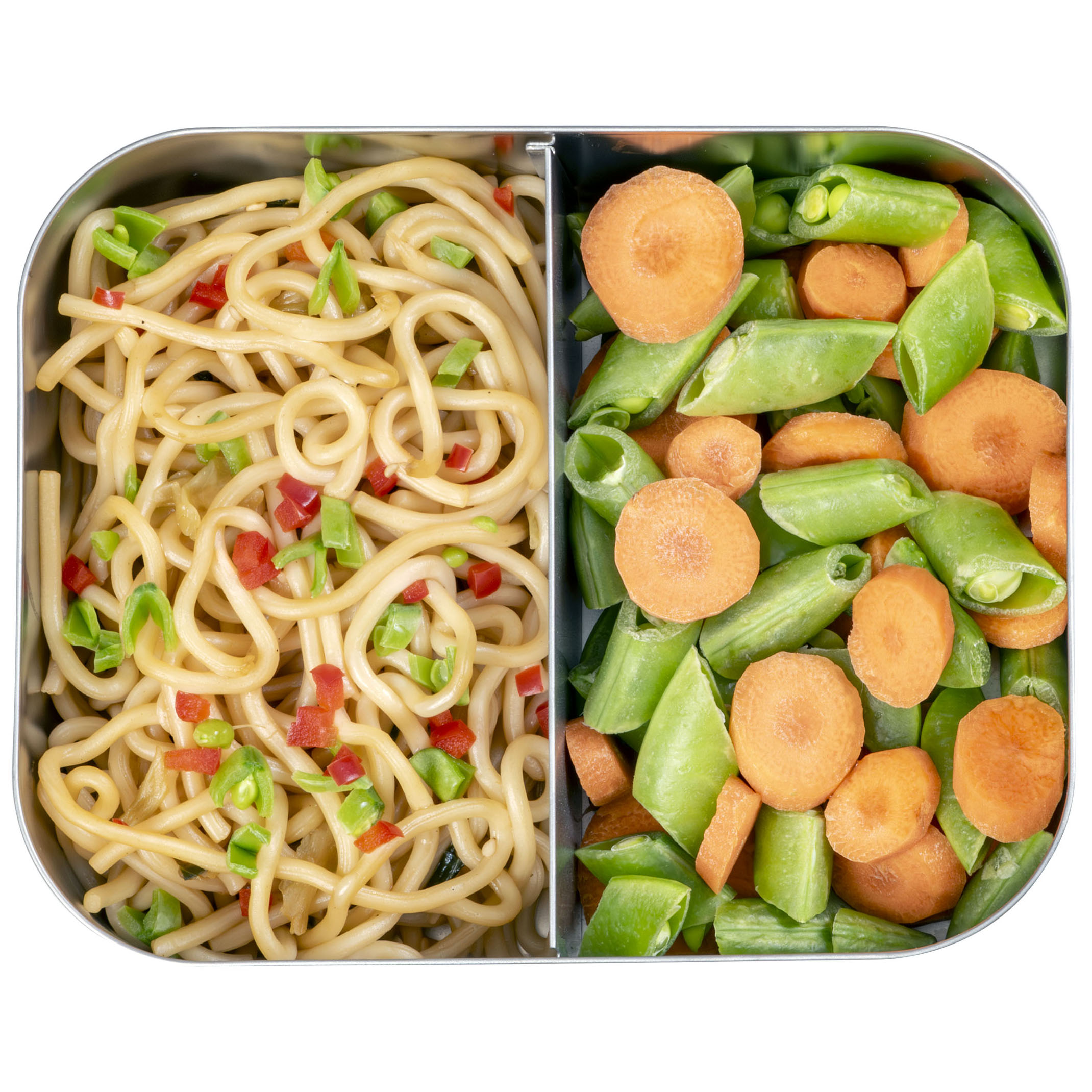 Die zwei gleichgroßen Fächer des Duo geben Ihnen die Flexibilität, zwei gesunde Lebensmittel in einen Behälter zu packen. Bringen Sie ein 1/2 Roastbeef-Sandwich und Gemüse oder ein 1/2 PBJ und Obst mit. In diese Bento-Box aus Edelstahl passt problemlos ein herzhafter Snack.