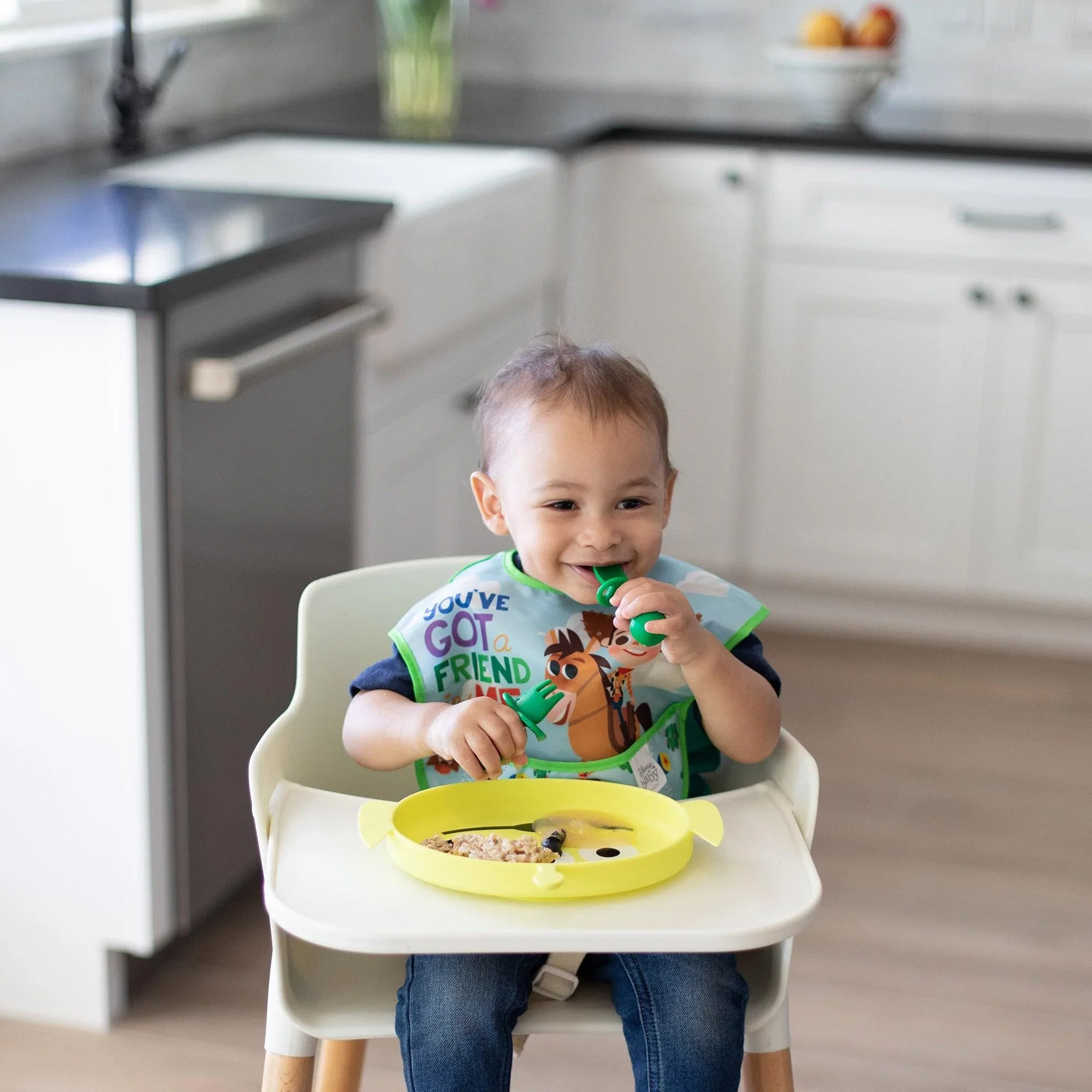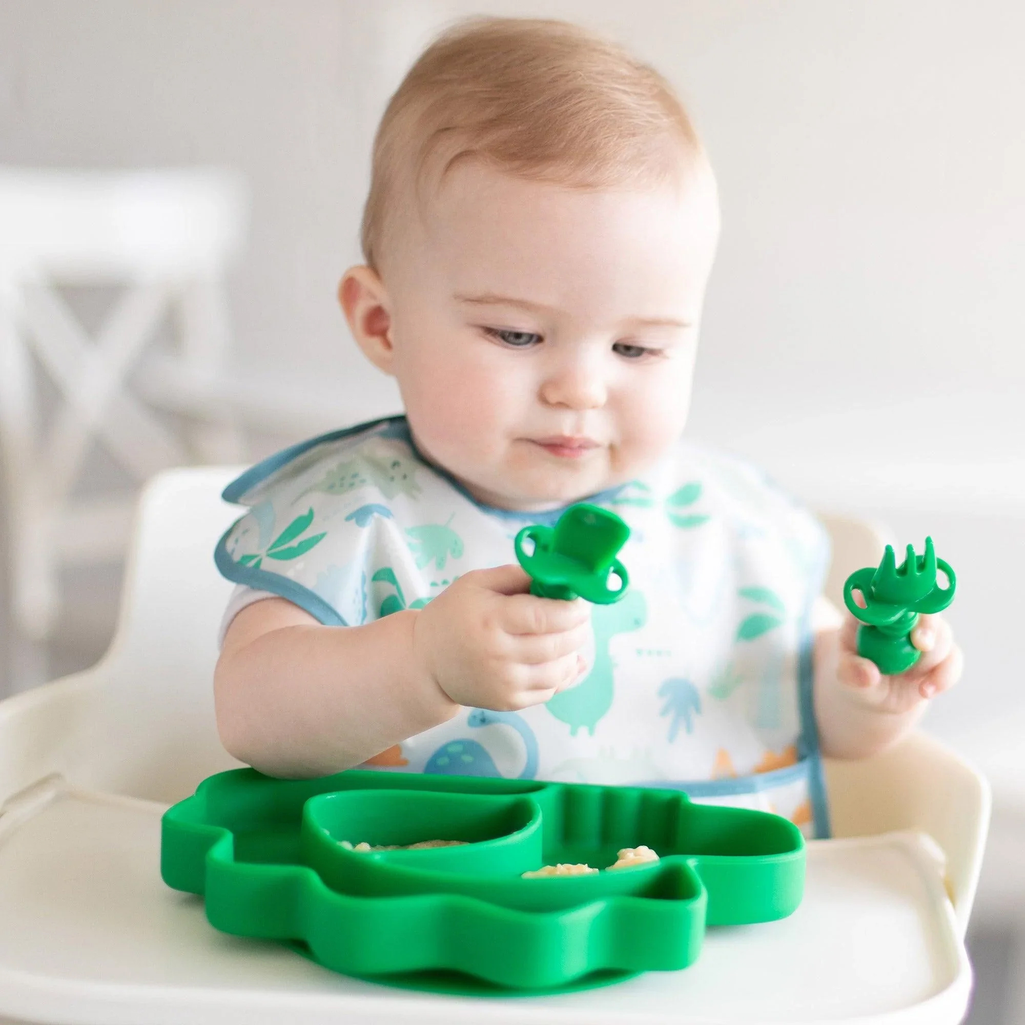 Wir haben Chewtensils für Stufe 1 der babygeführten Entwöhnung entwickelt - um Babys an das Konzept heranzuführen, ein Utensil zu halten und selbst zu essen. Sie sind aus weichem, strukturiertem, lebensmittelechtem Silikon gefertigt, das leicht zu greifen und sanft zu zartem Zahnfleisch ist, und haben biegsame Köpfe für mehr Sicherheit. Die Rückseite des Löffelkopfes hat sensorische Noppen, die das Zahnfleisch stimulieren. Sie eignen sich perfekt zum Eintauchen in pürierte Nahrung in der Anfangsphase der babygeführten Entwöhnung. Kauwerkzeuge können von jüngeren Babys gekaut werden, bevor sie bereit sind, auf Silberbesteck umzusteigen. Sie sind sicher in der Anwendung - sie bestehen aus 100% lebensmittelechtem Silikon.