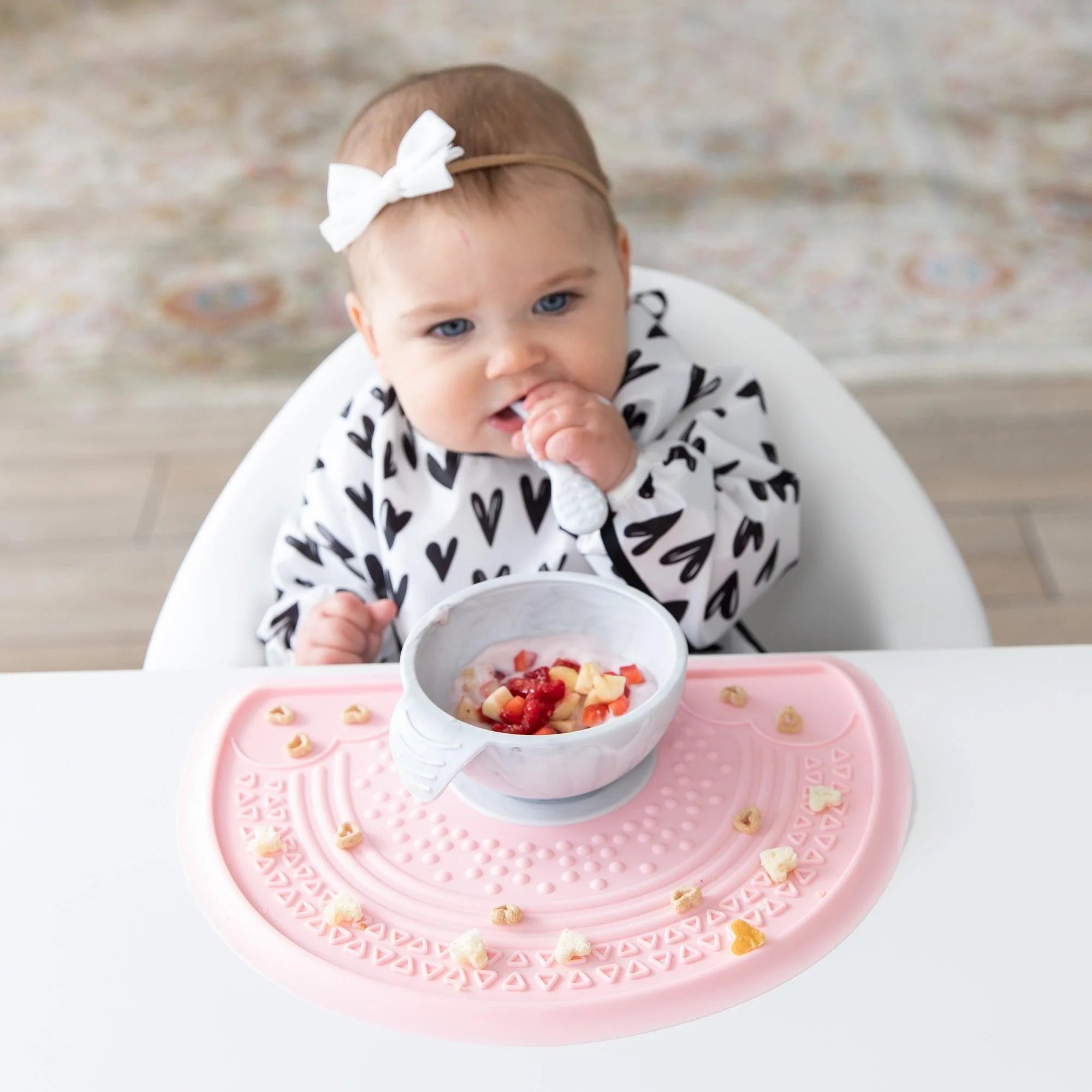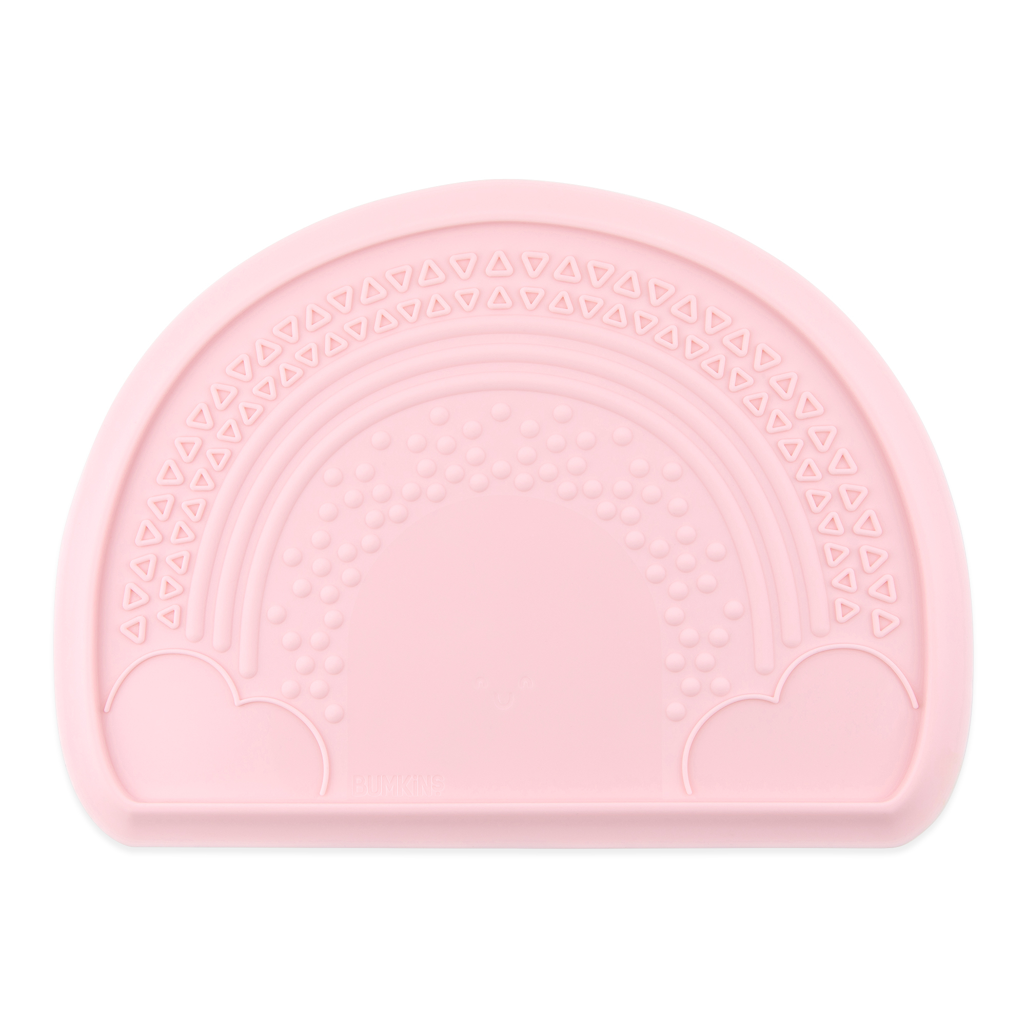 Unsere rutschfesten Silikonmatten sind mit einer glatten Oberfläche in der Mitte ausgestattet, auf der die Bumkins-Silikonsaugnäpfe gut haften können - eine perfekte Ergänzung zu den Mahlzeiten. Außerdem haben sie glatte Ecken, an denen sich die Silikon-Zubehörbänder befestigen lassen, damit Gegenstände wie Tassen, Spielzeug und Utensilien nicht auf den Boden fallen!