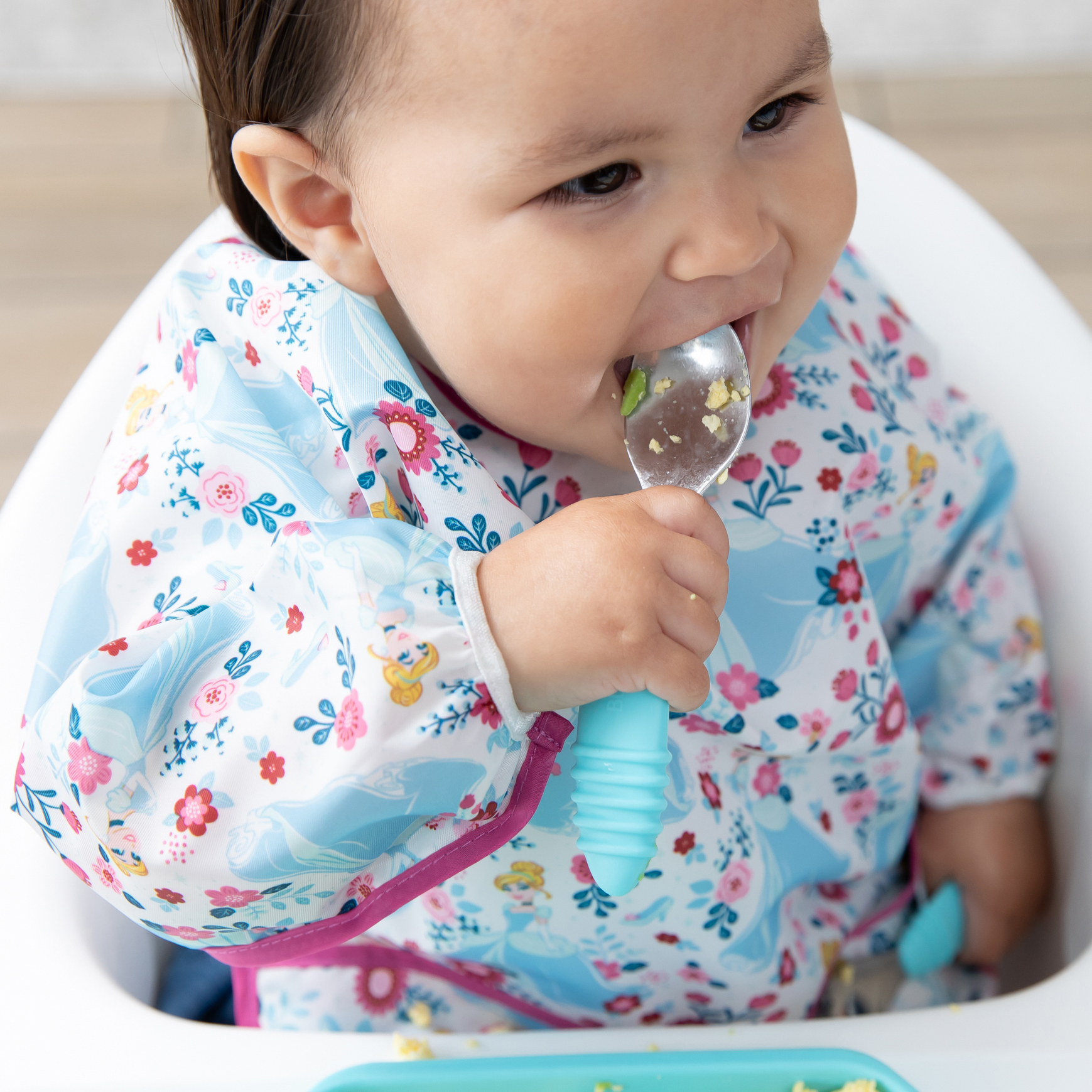 Das Lätzchen mit Ärmeln ist großzügig bemessen und ideal zum Füttern des Babys. Es besteht aus dem leichten, strapazierfähigen und wasserdichten Stoff von Bumkins, der flecken- und geruchsabweisend ist. Da der Stoff nur aus einer Lage besteht, müssen Sie sich keine Sorgen machen, dass sich zwischen den Lagen ekliges Zeug ansammelt. Die Passform lässt sich mit dem Rückenband und den elastischen Bündchen an Ihr Kind anpassen. Eine große Auffangtasche hilft, verschüttete Flüssigkeiten, Krümel und vieles mehr aufzufangen. Abwaschbar und maschinenwaschbar für eine einfache Reinigung, damit Sie ihn immer wieder verwenden können!