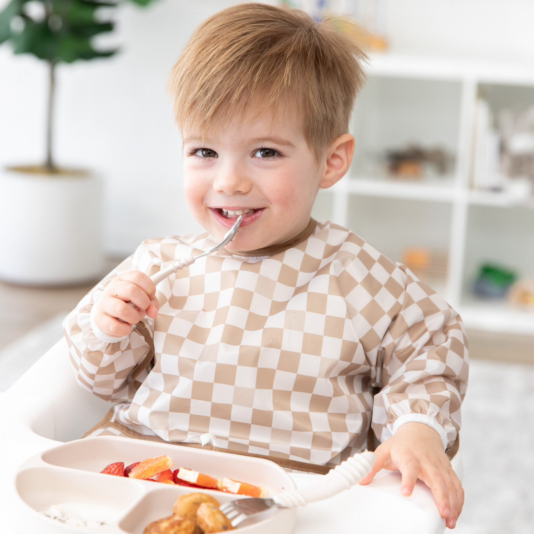 Das Lätzchen mit Ärmeln ist großzügig bemessen und ideal zum Füttern des Babys. Es besteht aus dem leichten, strapazierfähigen und wasserdichten Stoff von Bumkins, der flecken- und geruchsabweisend ist. Da der Stoff nur aus einer Lage besteht, müssen Sie sich keine Sorgen machen, dass sich zwischen den Lagen ekliges Zeug ansammelt. Die Passform lässt sich mit dem Rückenband und den elastischen Bündchen an Ihr Kind anpassen. Eine große Auffangtasche hilft, verschüttete Flüssigkeiten, Krümel und vieles mehr aufzufangen. Abwaschbar und maschinenwaschbar für eine einfache Reinigung, damit Sie ihn immer wieder verwenden können!