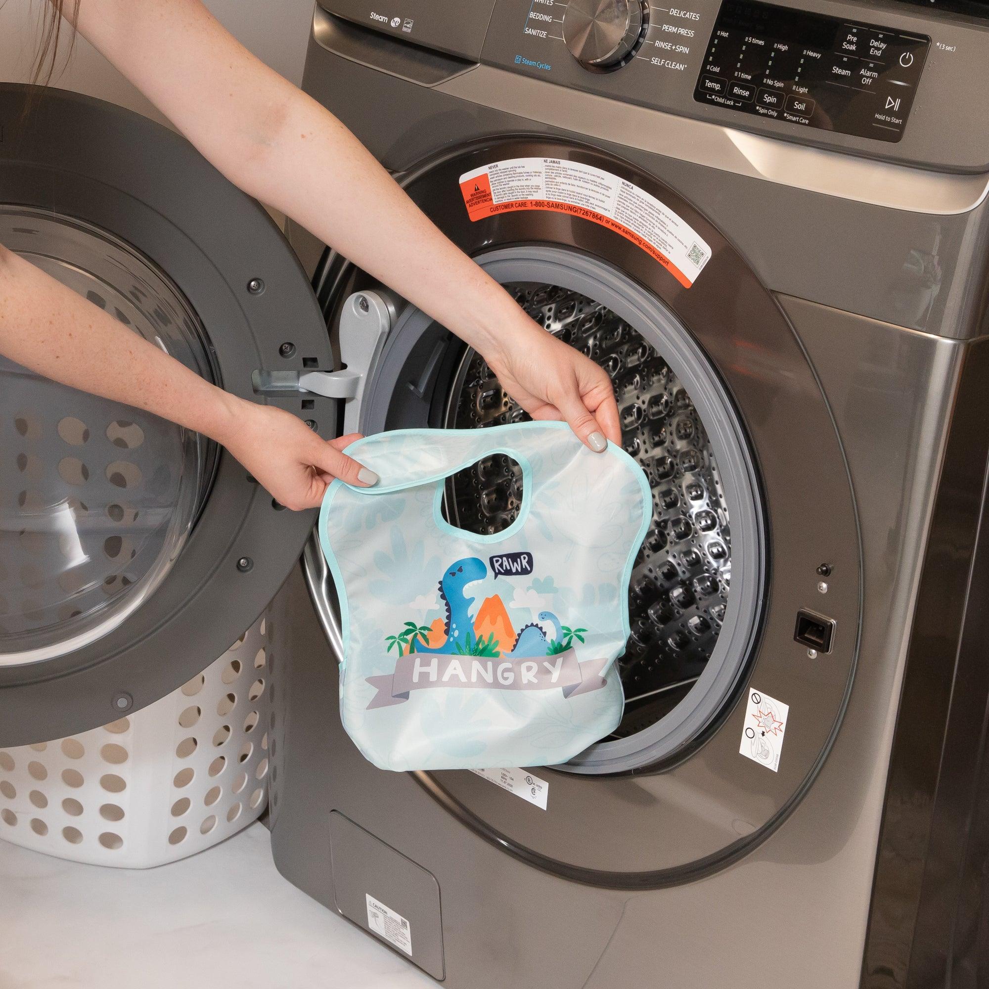 Um die Lebensdauer unserer Lätzchen zu verlängern, empfehlen wir, unser schnell trocknendes Gewebe an der Luft zu trocknen.