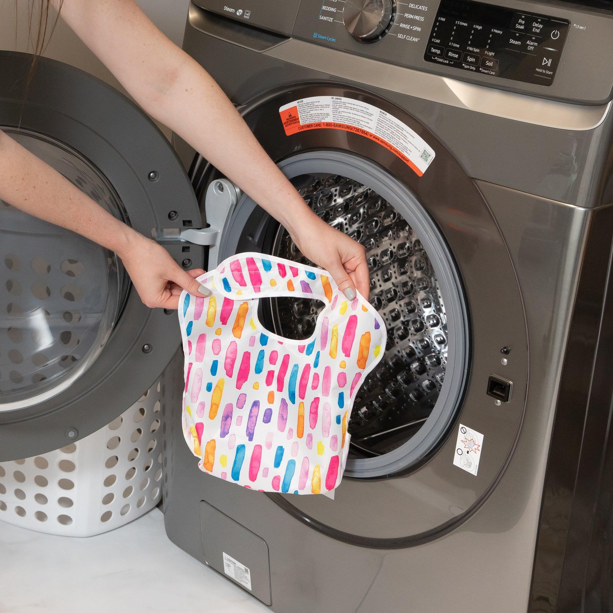 Um die Lebensdauer unserer Lätzchen zu verlängern, empfehlen wir, unser schnell trocknendes Gewebe an der Luft zu trocknen.