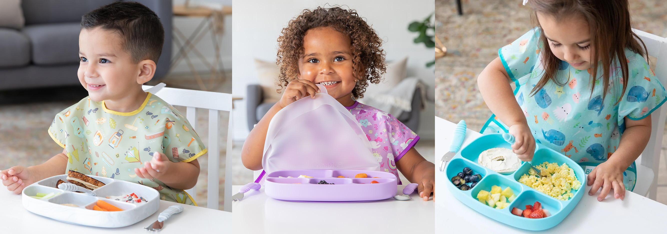 Can we get a high five for the new five-section version of the original Silicone Grip Dish? With a leak-resistant lid, it’s great for storing leftovers or prepping meals! Write on the lid, labeling leftovers—use a washable, dry-erase or wet-erase marker. Made from 100% food-safe silicone, the dish is as durable and versatile as the original version, just with added sections for more food fun. Perfectly sized for toddler portions—there are two large sections that hold approximately 9 oz each, two smaller sections hold approximately 3 oz each, and one 4 oz section; all with deep walls to help contain food. The Grip Dish can be safely put in the microwave, oven (up to 204°C), freezer, or dishwasher. A strong suction base, keeps the Grip Dish in place, making plates on the floor a thing of the past!