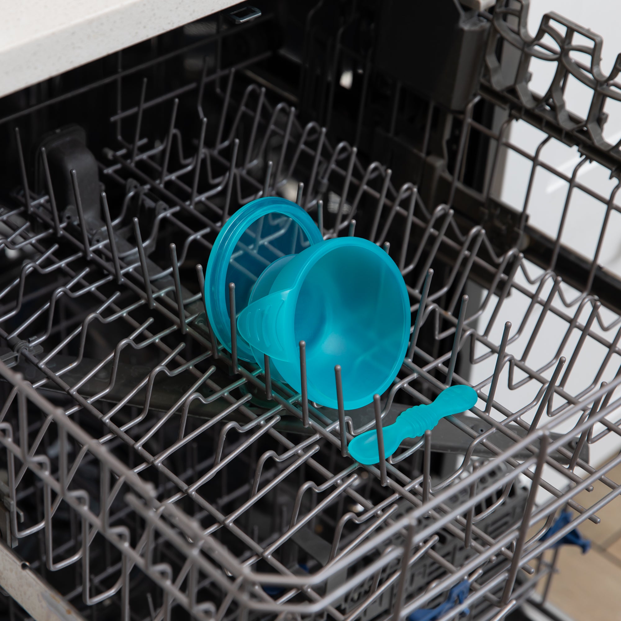 In full transparency, you're going to love this Jelly Silicone First Feeding Set. It's your perfect companion to introduce solid foods and transition your baby to self-feeding. The suction base keeps the bowl from sliding or flipping over. Great for use on highchair trays or tables. The easy to grip double-end silicone spoon grows with baby – one end is for dipping into purees and the other for scooping solid foods. The bowl is designed with a curved handle so mom or dad can hold and help with feeding, and the spoon is soft and safe for teething babies. The set includes a clear silicone lid with a secure fit. Ideal for saving leftovers – the clear lid allows you to easily see stored food.
