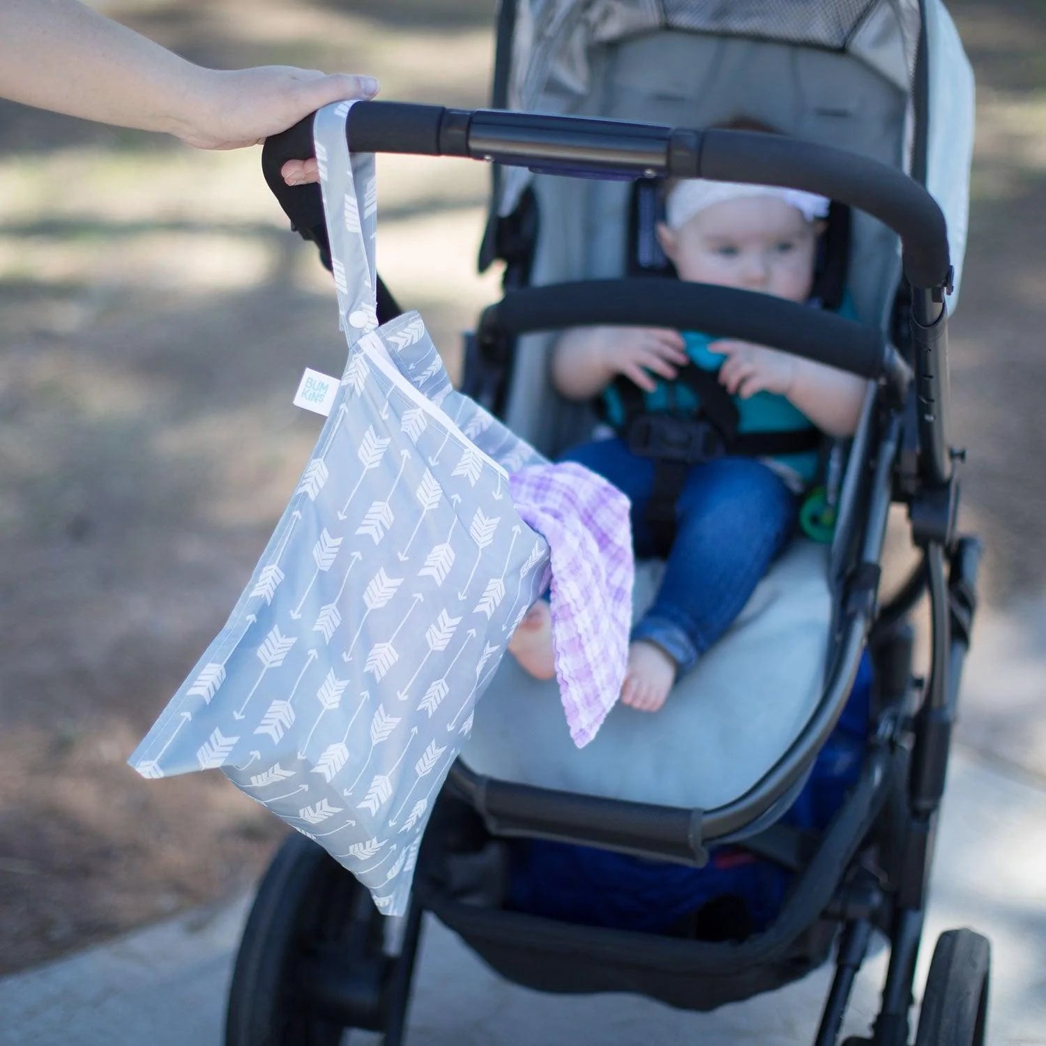 The better alternative to single-use plastic bags, our reusable Wet Bags are made from the same waterproof fabric as Bumkins award-winning SuperBib. Our bags feature heat-sealed seams for true waterproof protection. A smooth zipper closure locks away the mess, and single-ply construction means no worrying about icky stuff growing between layers of fabric. Wet bags are great for carrying diapers, dirty gym clothes, and wet swimsuits. Not just for wet stuff – these bags make excellent organizers for toys, accessories, toiletries, electronics, travel, and more! With a snap handle, snap your bag wherever you need it – stroller, changing table, or suitcase. Bags are single compartment, non-gusseted, non-insulated, and non-stretch.
