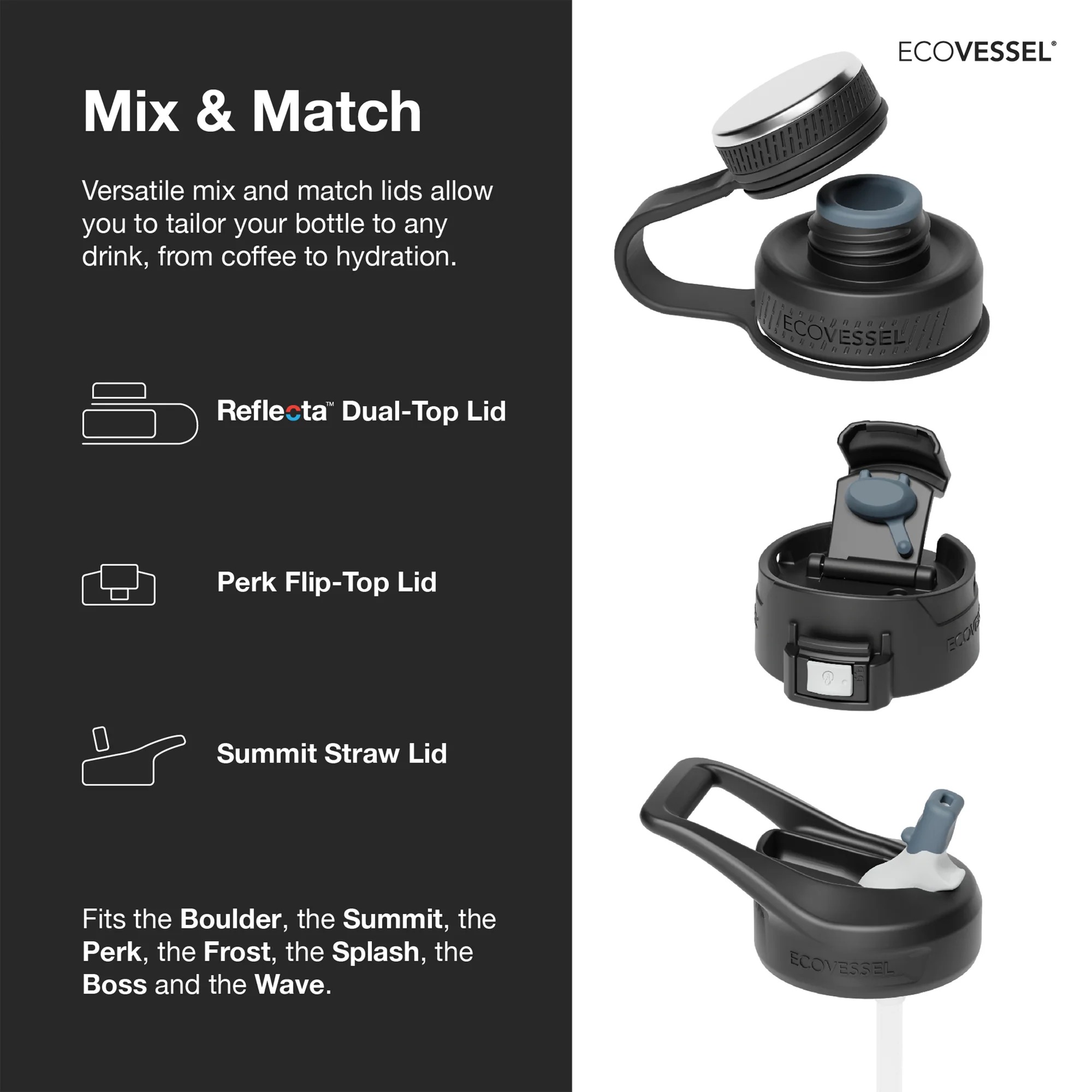 - Interchangeable with Straw Top and Locking Lid