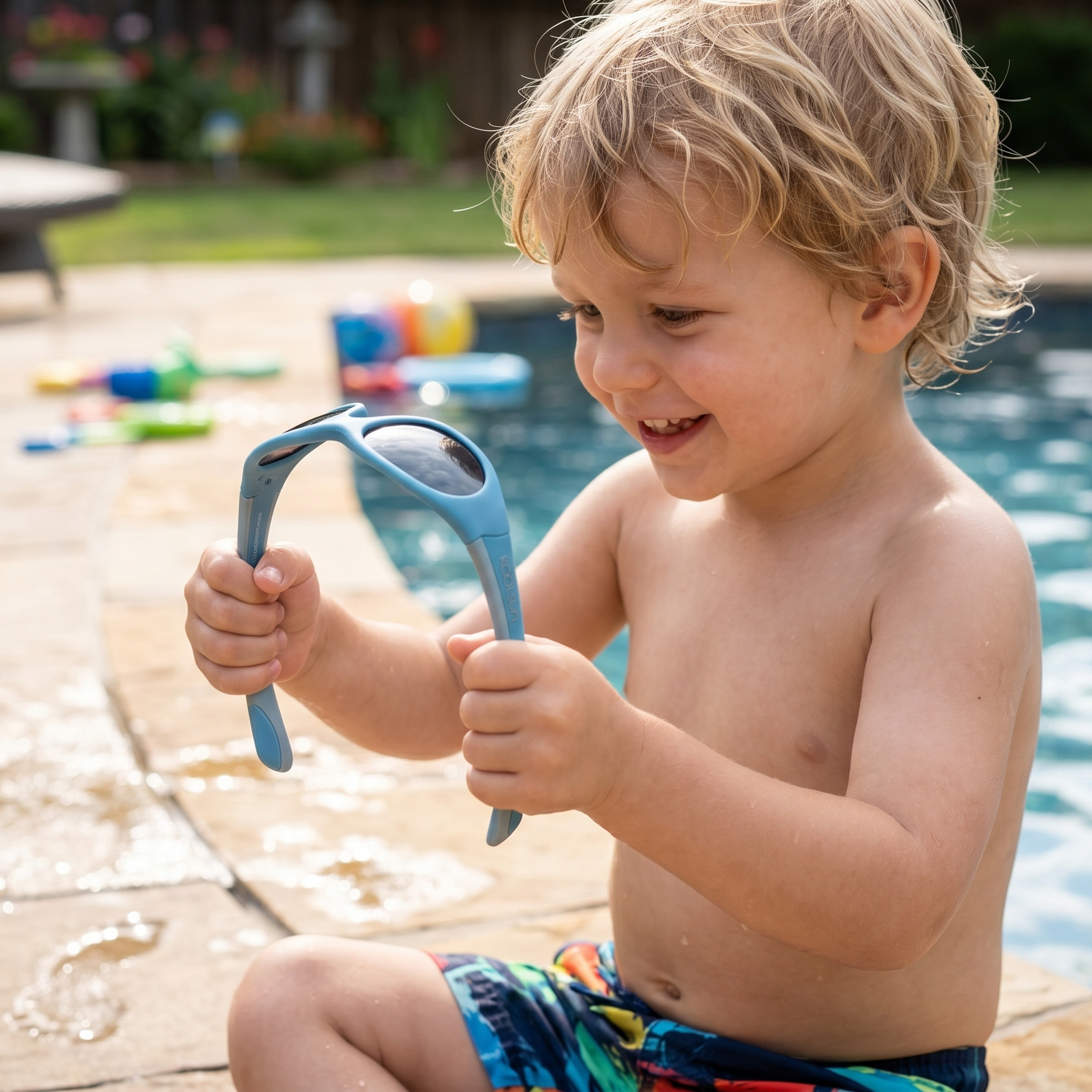 The sunglasses have unbreakable polycarbonate lenses, offer UV-400 protection, is CE-Category 3 and filters UVA and UVB radiation 100%.The sunglasses are ideal for use in summer and winter. The UV filter is in the glasses and not with a layer on them so that your child's eyes are always protected from the UV light. The sunglasses come with a KOOLSUN microfibre pouch.