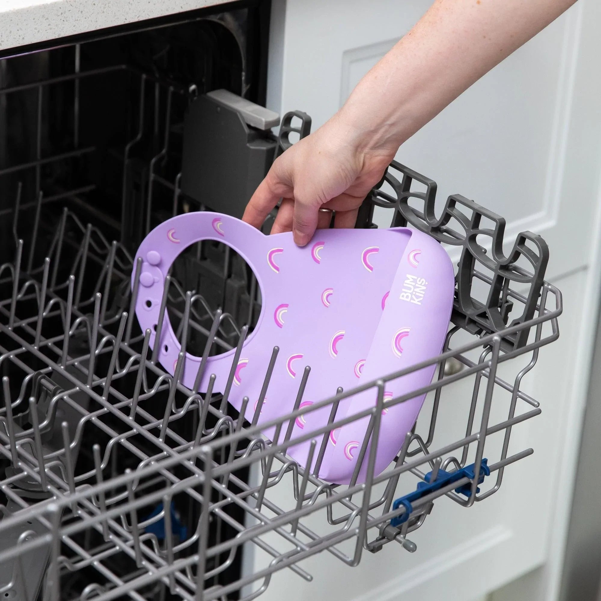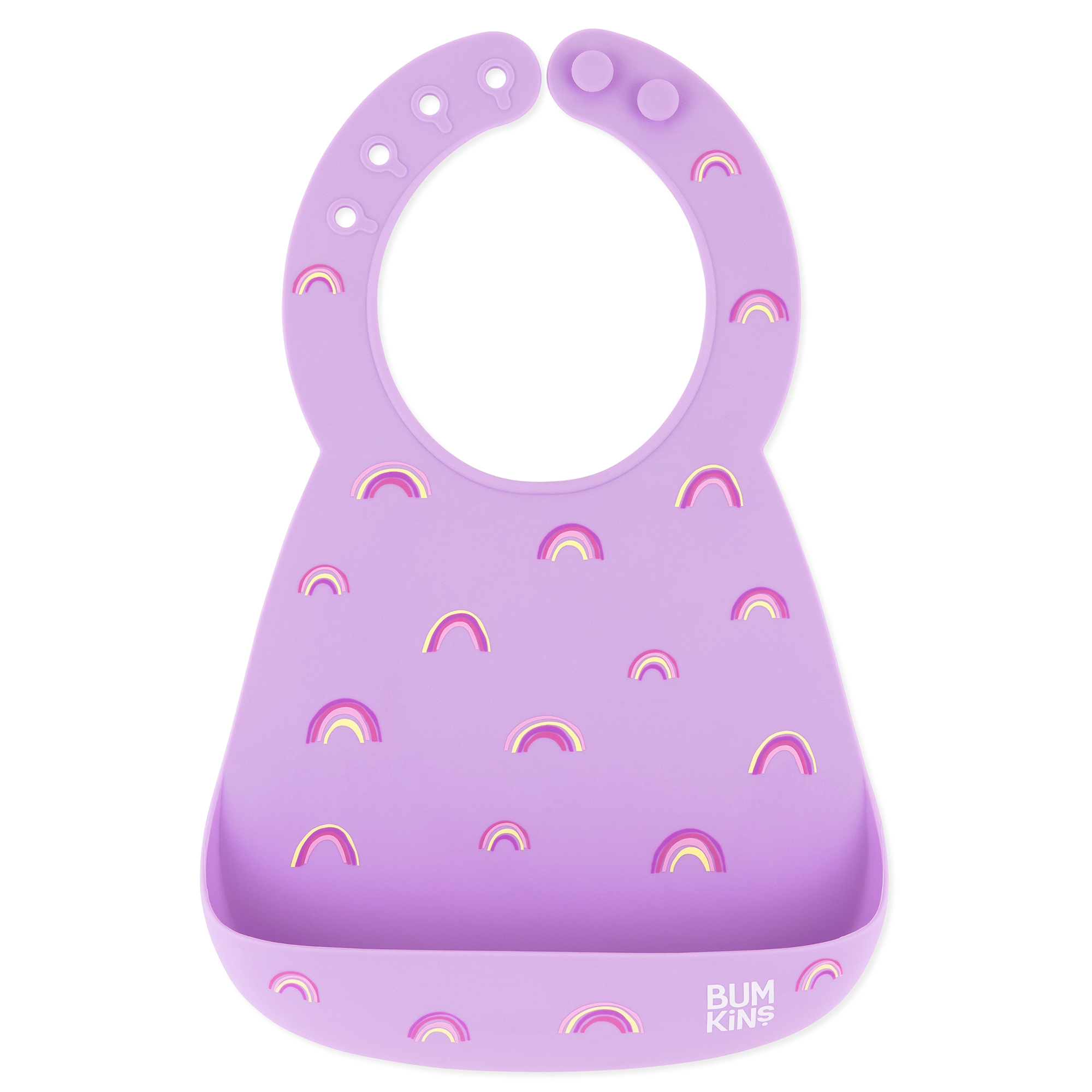 The Bumkins Silicone Bib is great for reducing mealtime mess. The large catch-all pocket is wide open for catching drips, drops, and spills before they hit baby’s lap or the floor. Start using this as baby begins eating dribbly purees and then transitions to self-feeding solids, adjusting the neck buttons as they grow. The bib is made from flexible, durable, food-safe platinum silicone that cleans up quickly and easily and can even go in the dishwasher! Silicone is also naturally resistant to bacteria and most odors and stains, making it a safe and hygienic choice for messy babies.