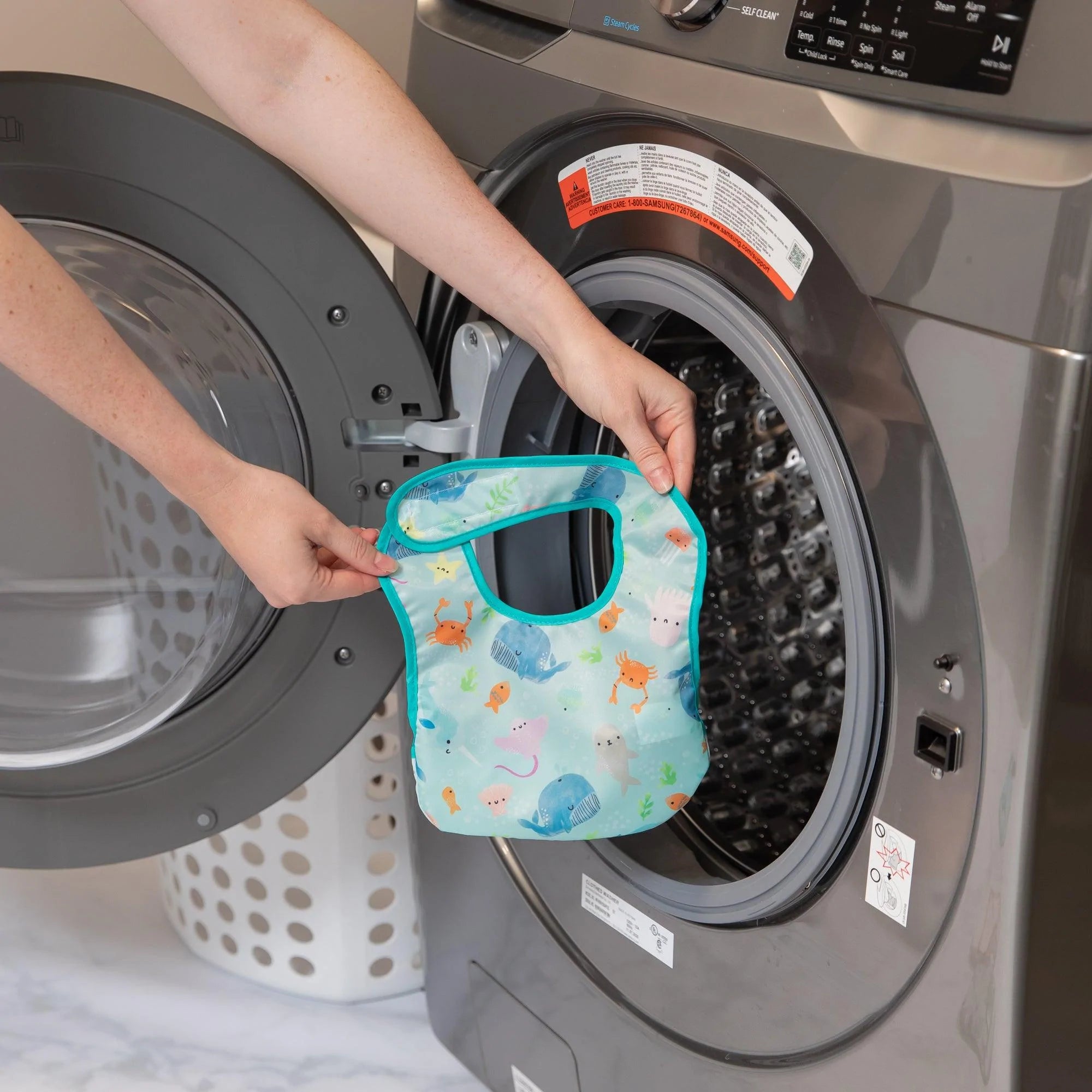 To extend the life of our bibs, we recommend hang drying our quick-dry fabric.
