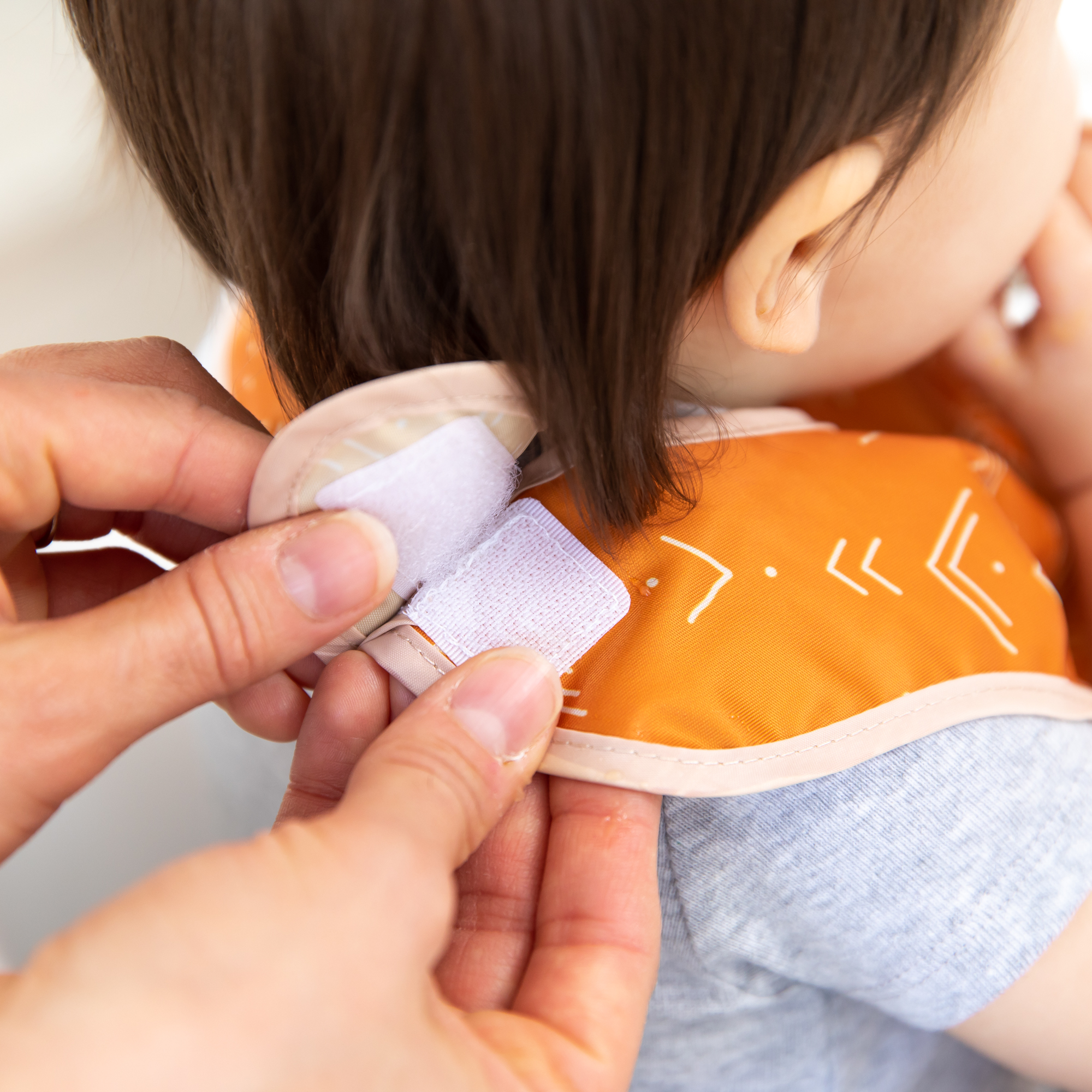 Perfect for baby’s first foods, these Starter Bibs attach over the back of the shoulder with a hook-and-loop closure for a quick, adjustable, and tug-proof fit and feature a large catch-all pocket to help contain spills, crumbs, and more. Starter Bibs are made from Bumkins’ lightweight, durable, waterproof fabric that is resistant to stains and odors. Their single-ply construction means no worrying about icky stuff growing between layers of fabric. Wipeable and machine washable, these bibs are easy to clean, and a pack of two ensures you always have one handy!