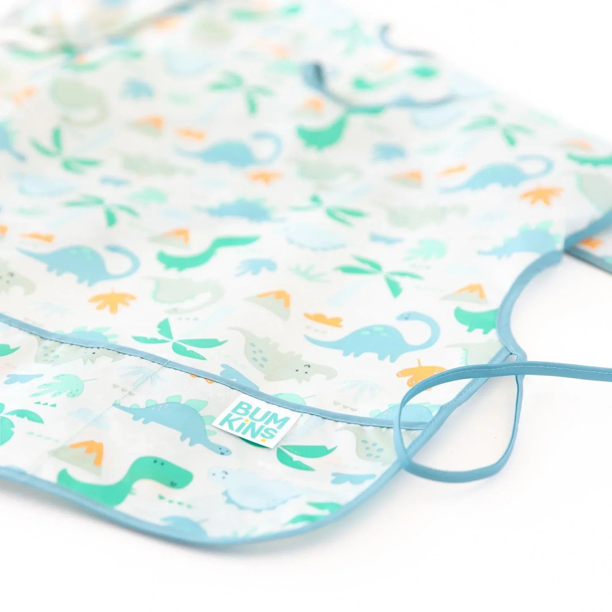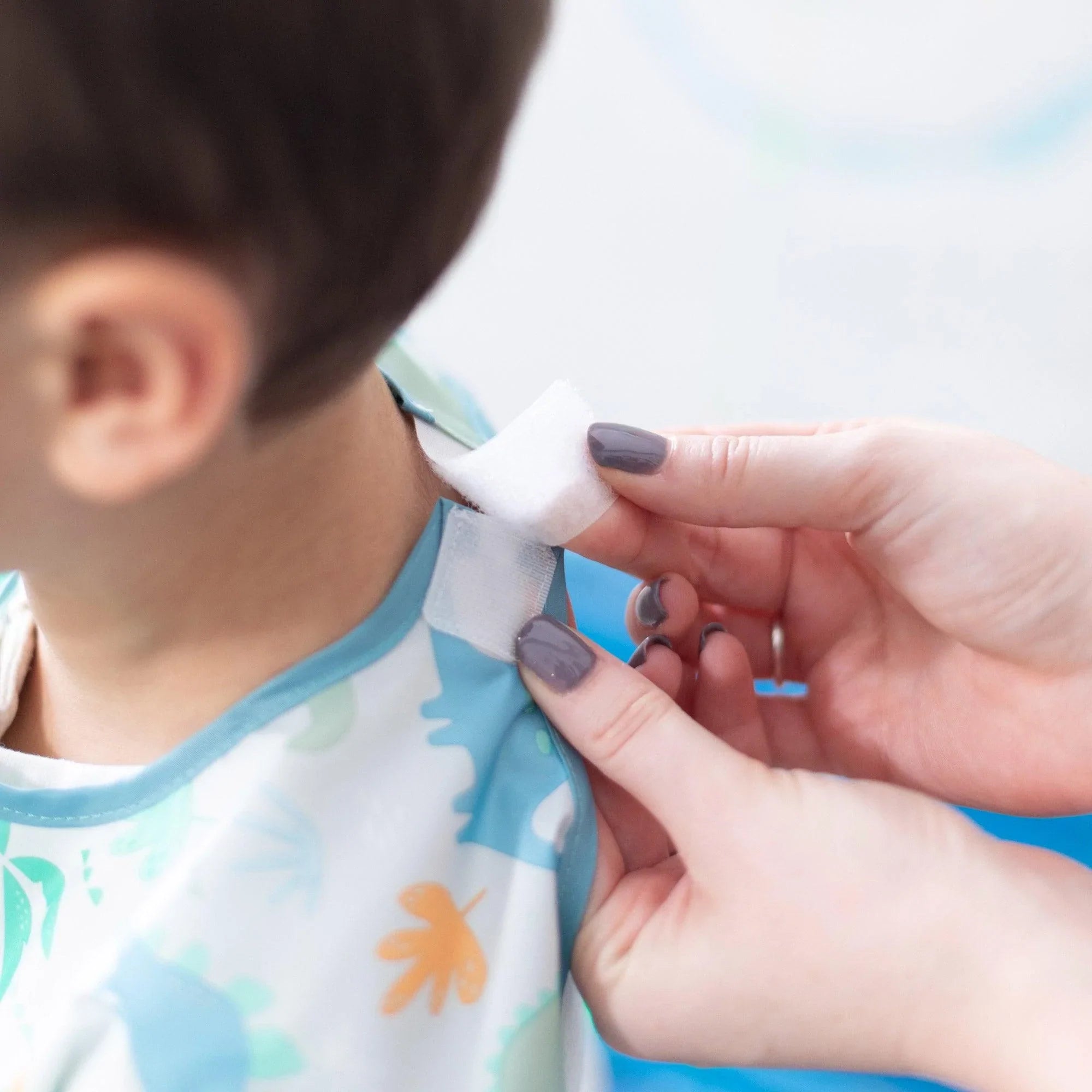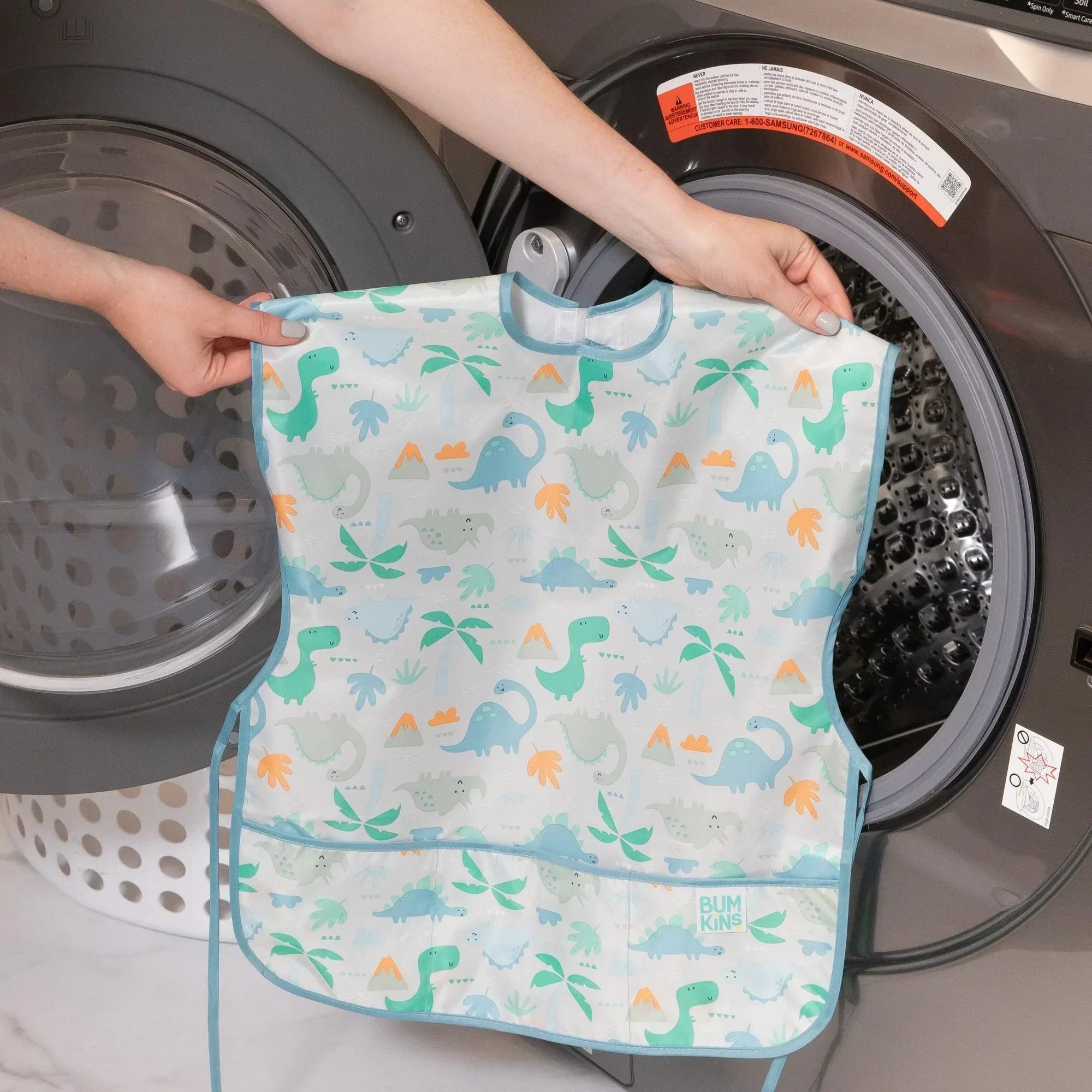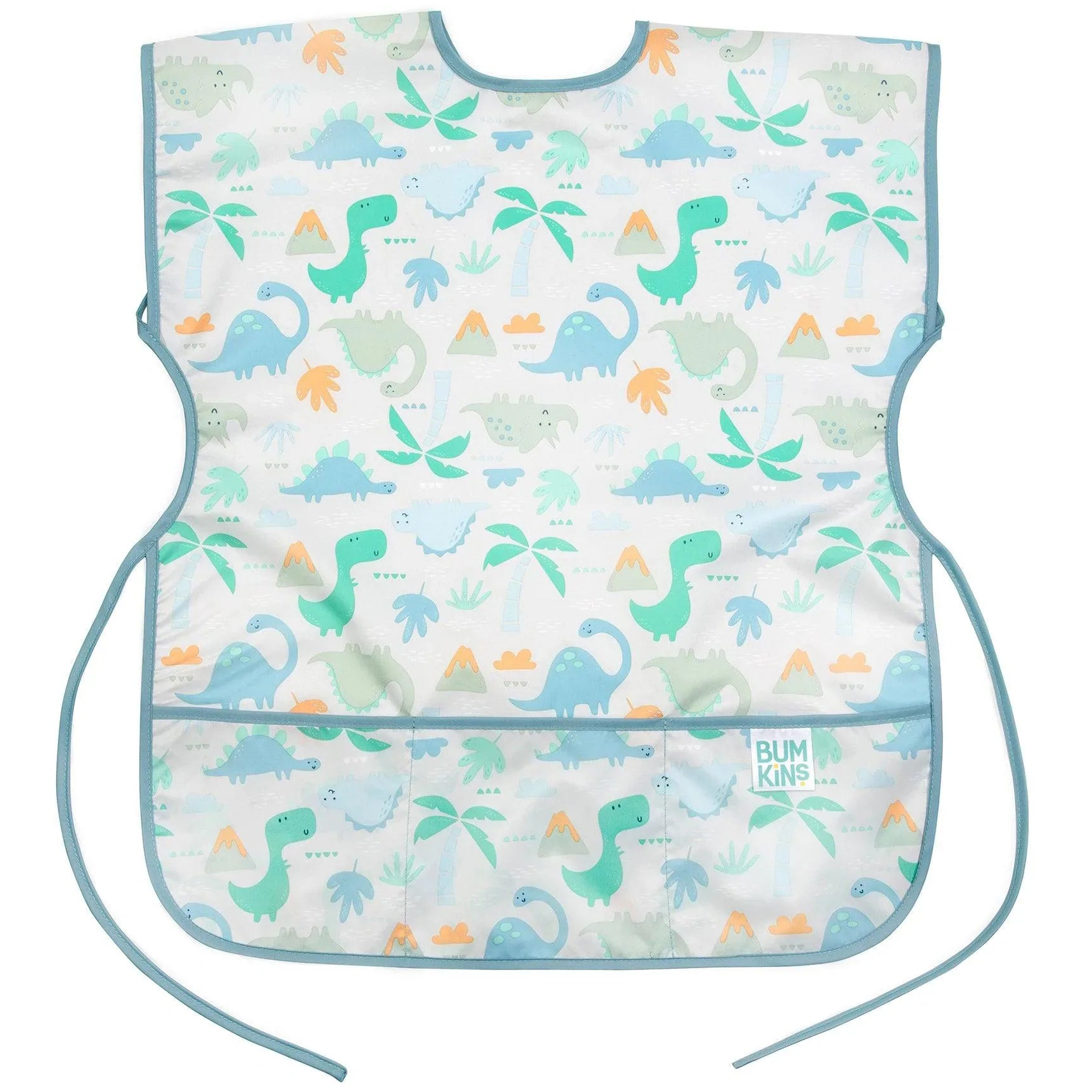 Perfect for your budding artist, the Short-Sleeved Art Smock keeps creativity from staining clothes. It can also be used as a bib for messy eaters that may have outgrown our Junior Bib. With a pocket large enough to hold art supplies or catch drips and spills. Made from Bumkins lightweight, waterproof, easy-wipe, stain and odor resistant fabric. Single ply construction means no worrying about icky stuff growing between layers of fabric. Without a cotton layer, stains and smells don't stick. Wipeable and machine washable for easy cleaning so you can use it over and over again! Adjustable tie waist and a hook and loop neck closure.