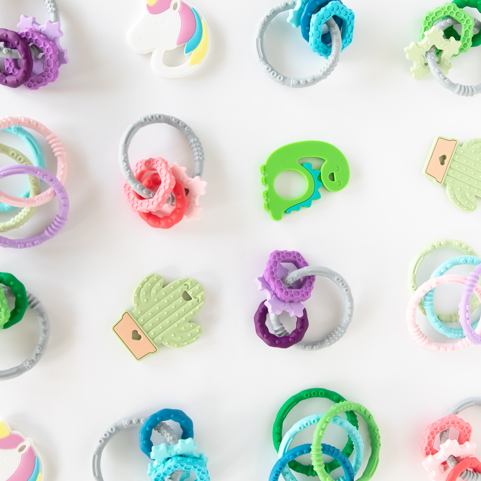 Our Teether helps soothe baby’s sore gums. The teether’s cute shape is designed for little hands to grip, allowing babies to hold on tight as they gnaw away aches from emerging teeth. Made from silicone that’s flexible and gentle enough when your baby wants soft pressure on their gums. Textured to help massage and provide relief while allowing your baby to explore shapes, helping in the development of sensory and motor skills. Silicone has a natural resistance to bacteria. It can be safely boiled to sterilize. Made from 100% food-safe silicone and does not contain any petroleum-based plastics or toxic chemicals.