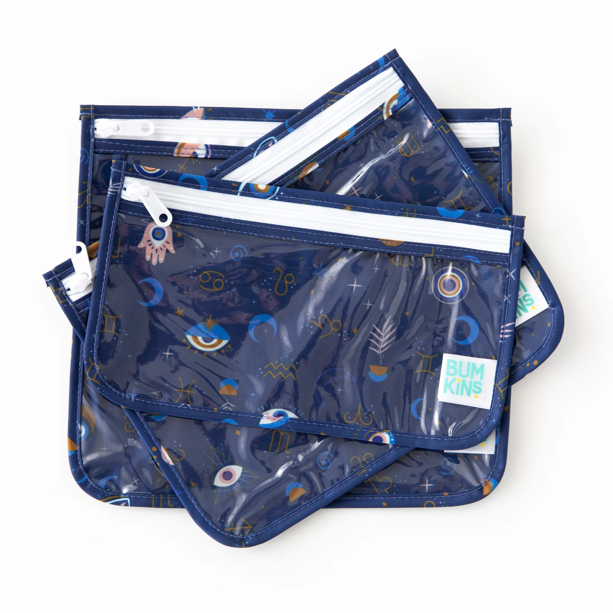 Hacer la maleta puede ser una locura, ¡hagámoslo un poco más fácil! Ya sea para ti o para tu pequeño, las bolsas de viaje transparentes Bumkins son excelentes neceseres y bolsas de viaje. Una alternativa a las bolsas de plástico de un solo uso, nuestras bolsas reutilizables son fantásticos organizadores para los suministros de la bolsa de pañales, juguetes, accesorios, cosméticos, electrónica, y mucho más. Las bolsas son compatibles con la TSA, lo que facilita la transición del uso diario a pasar el control de seguridad del aeropuerto en su equipaje de mano. Fabricadas con el tejido ligero, resistente e impermeable de Bumkins, con la parte delantera transparente para mostrar el colorido estampado. Sólo se puede limpiar con un paño.