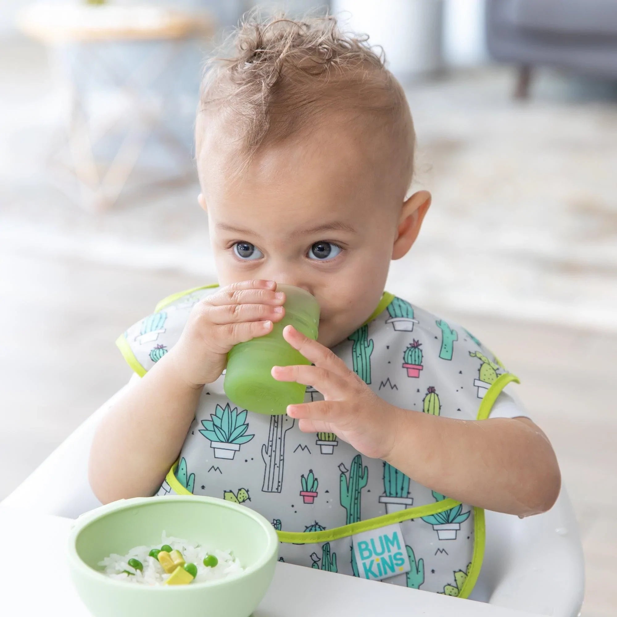 ¡Salud por el primer vaso del bebé! El primer vaso de silicona de Bumkins es un vaso abierto de medio litro para bebés fabricado exclusivamente para facilitar la transición del biberón al vaso para niños grandes. Nuestro diseño de vaso abierto de medio litro está adaptado a las manos de los más pequeños gracias a sus bordes texturizados, que facilitan el agarre del bebé. Al mismo tiempo, el interior inclinado ayuda a controlar el flujo de líquido para que el bebé beba de forma más segura a medida que aprende a dar sorbos de forma independiente. Las marcas en la silicona transparente permiten medir el progreso del bebé, y el fondo con contrapeso reduce el riesgo de vuelco, lo que significa menos derrames que limpiar.