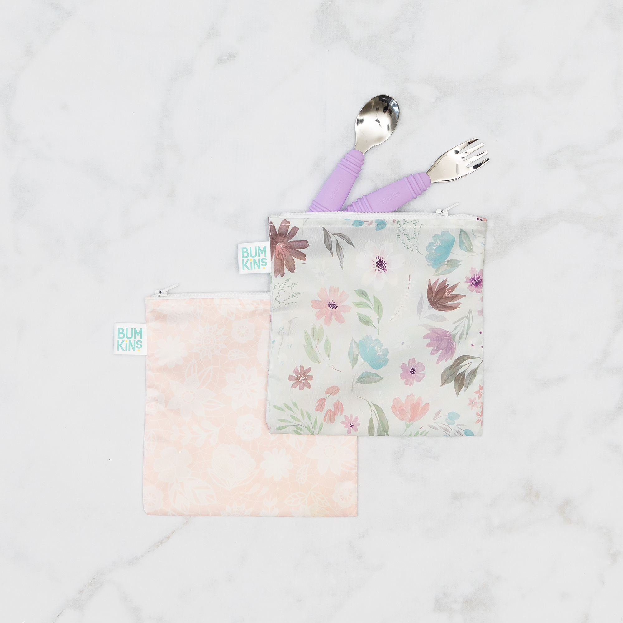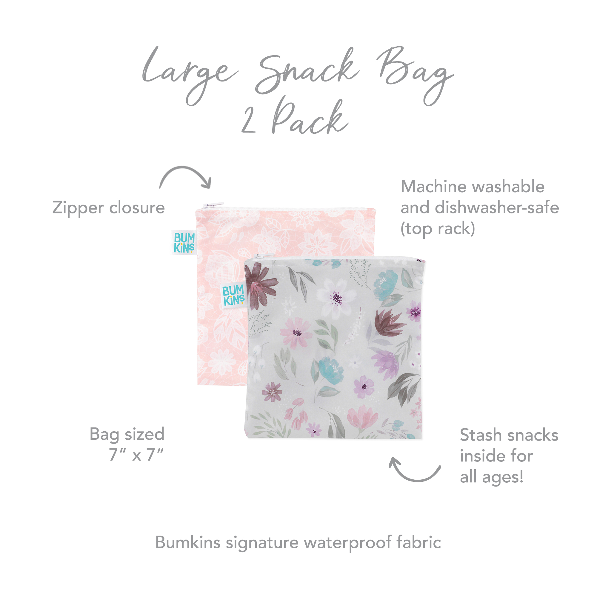 Ayude a salvar la Tierra, un pequeño cambio cada vez. Como alternativa a las bolsas de plástico de un solo uso, nuestras bolsas grandes reutilizables para bocadillos/sándwiches están fabricadas con el mismo tejido impermeable que nuestro galardonado SuperBib. Su suave cierre de cremallera impide que entren las migas, y su estructura de una sola capa evita que se acumulen restos de comida entre las capas de tejido. Ideales para la comida y la diversión, las bolsas de merienda ayudan a organizar almuerzos, juguetes, aparatos electrónicos y mucho más. Incluso cabrá un panecillo.