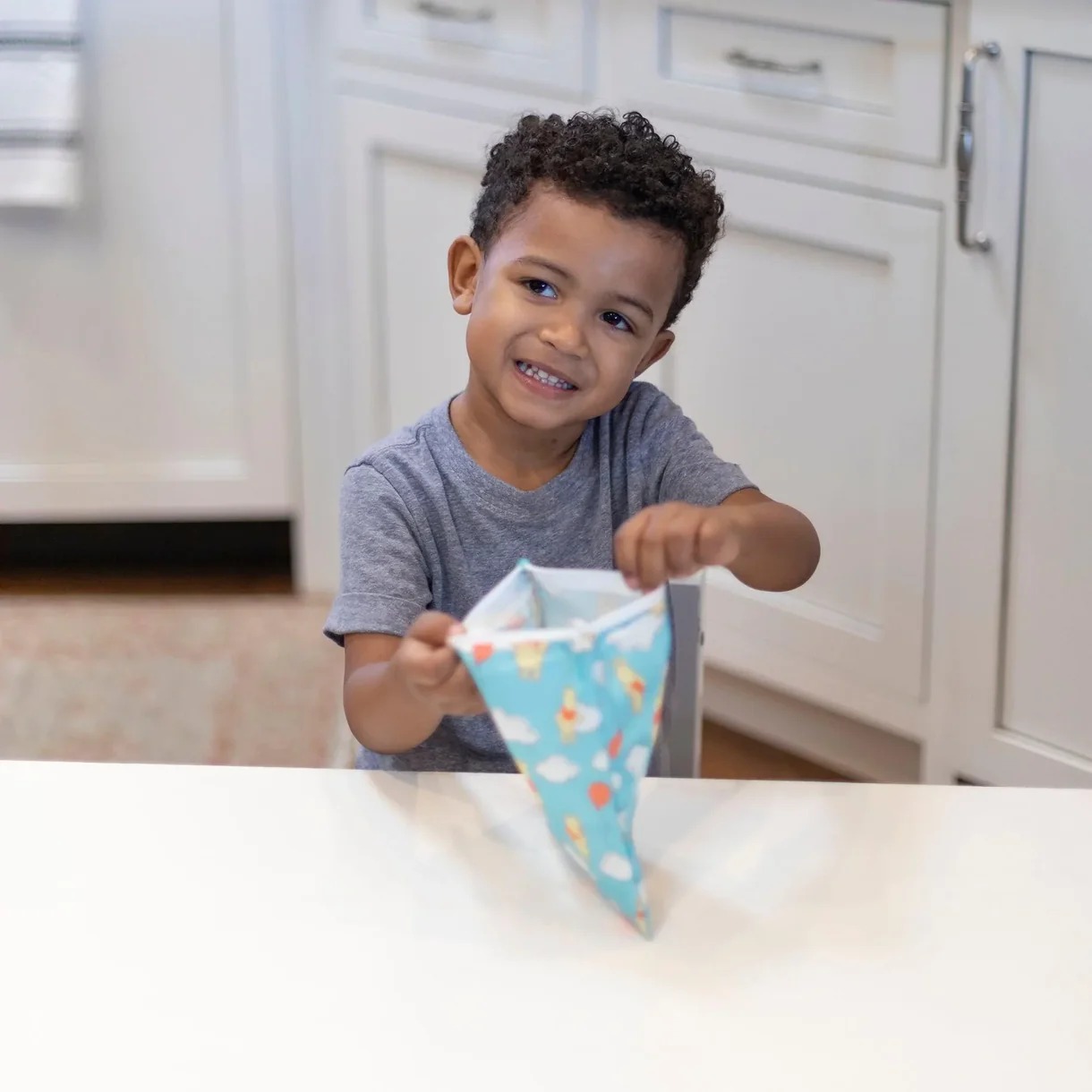 The better alternative to single-use plastic bags, our reusable large snack bags / sandwich bags are made from the same waterproof fabric as Bumkins award-winning SuperBib. A smooth zipper closure doesn't hold crumbs and single-ply construction means no worrying about icky stuff growing between layers of fabric. Great for food and fun, snack bags help organize lunches, toys, electronics and more. They’ll even fit a bagel!