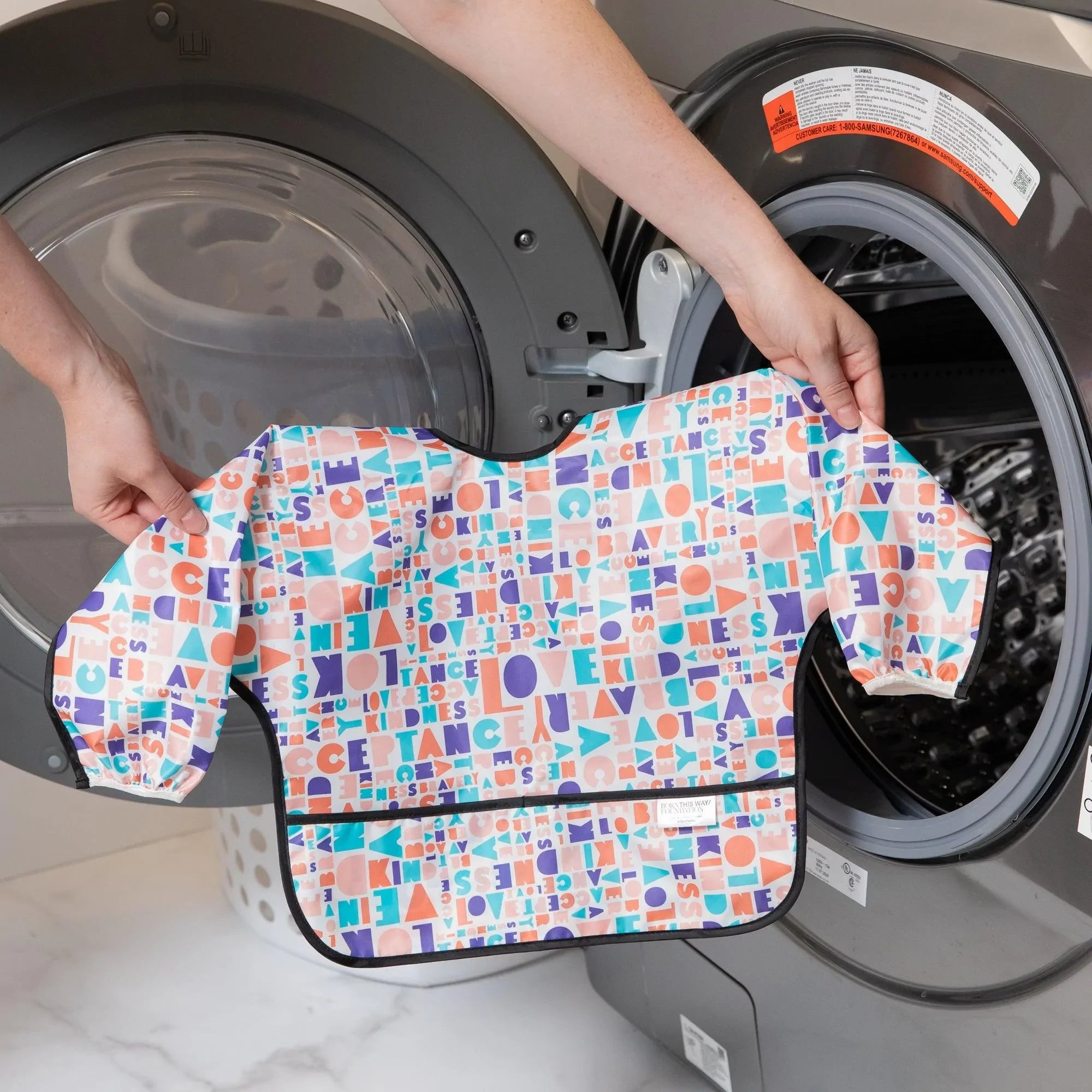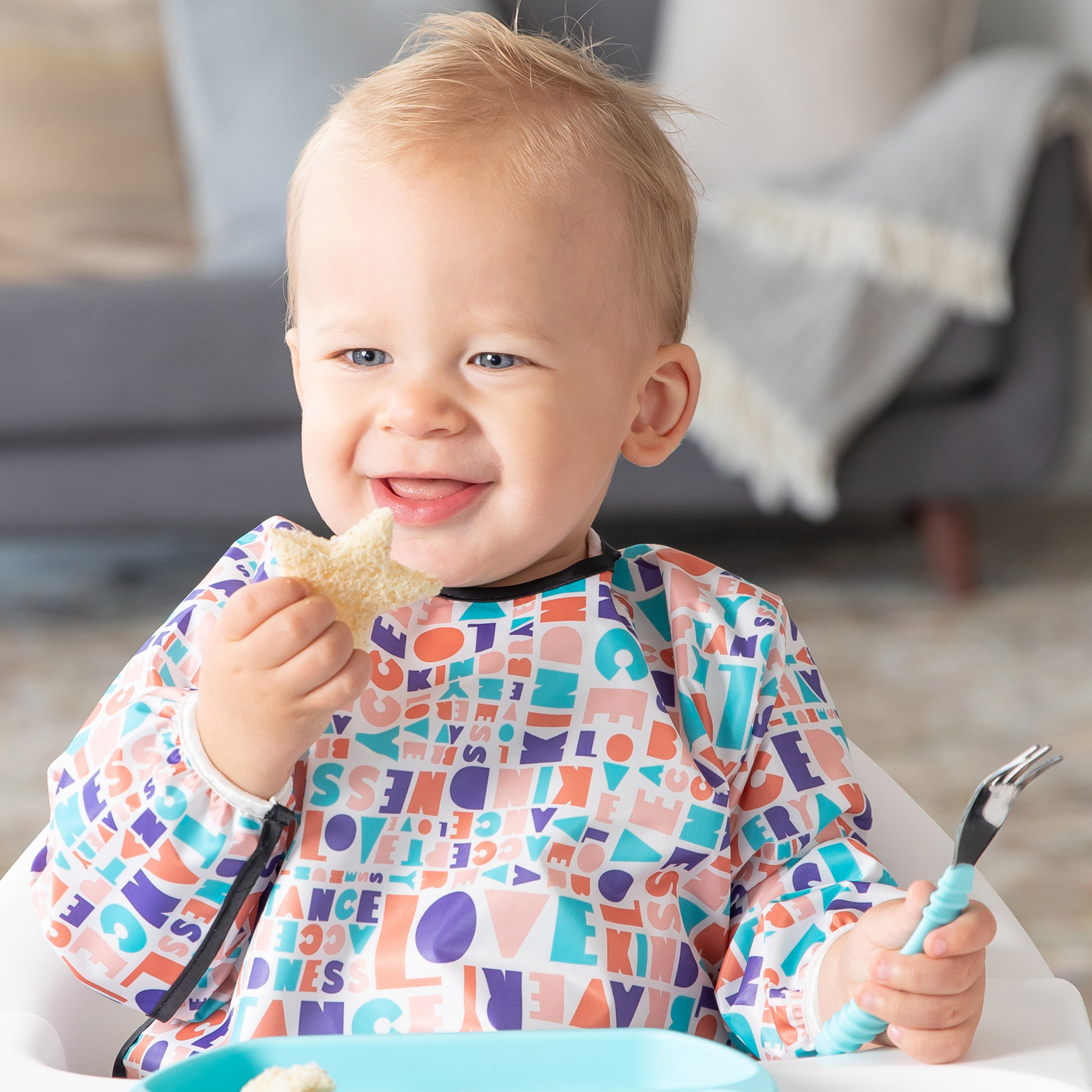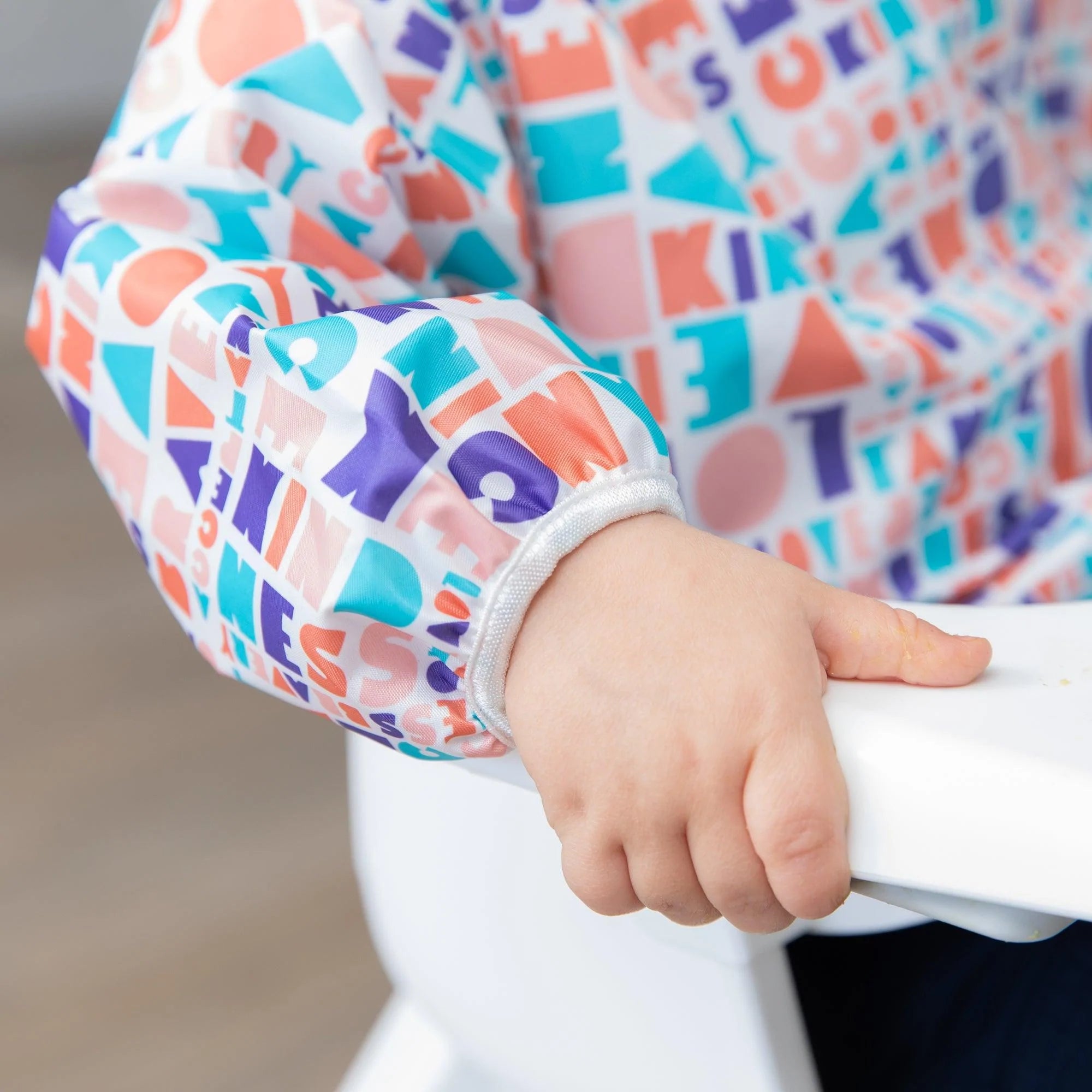De tamaño generoso e ideal para dar de comer al bebé, el babero con mangas está fabricado con el tejido ligero, duradero e impermeable de Bumkins, que resiste las manchas y los olores. Con una sola capa de tejido, no tienes que preocuparte de que crezcan cosas asquerosas entre las capas. Ajústalo a tu pequeño con un cierre de lazo trasero y puños elásticos. Un gran bolsillo ayuda a contener derrames, migas y más. Se puede limpiar con un paño y se puede lavar a máquina para que puedas usarlo una y otra vez.