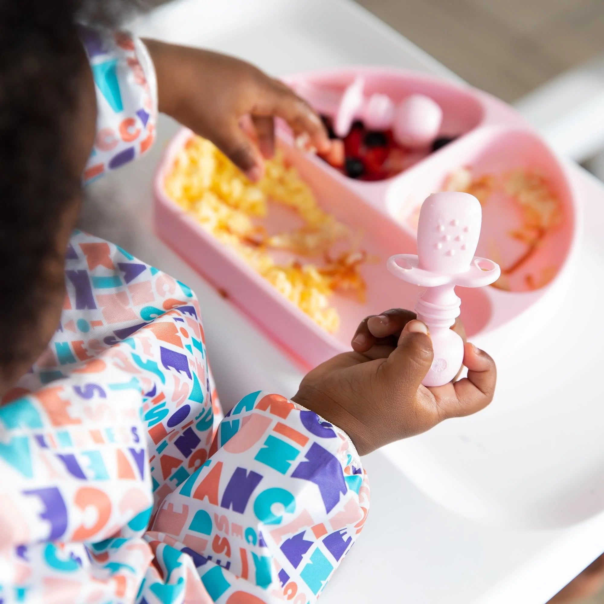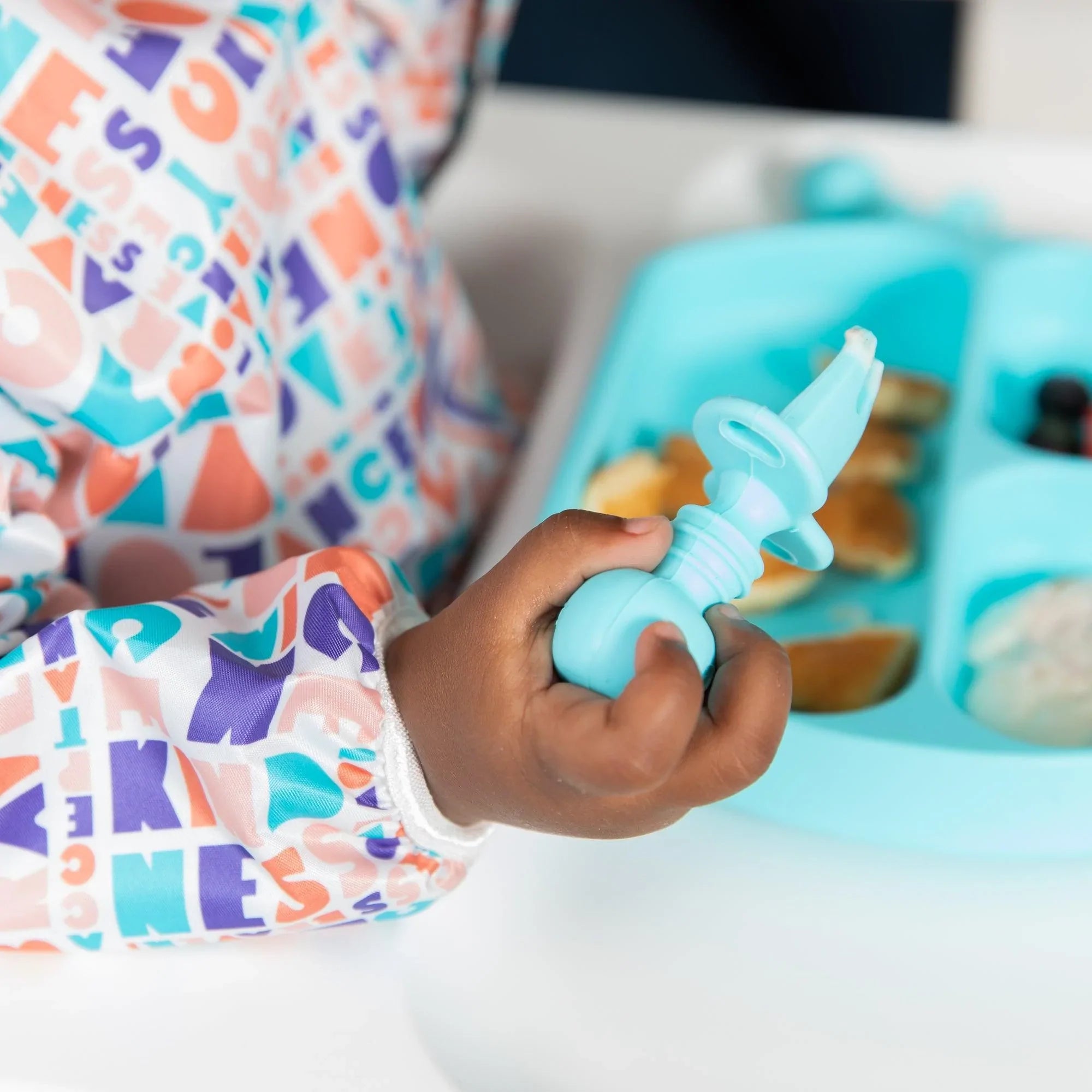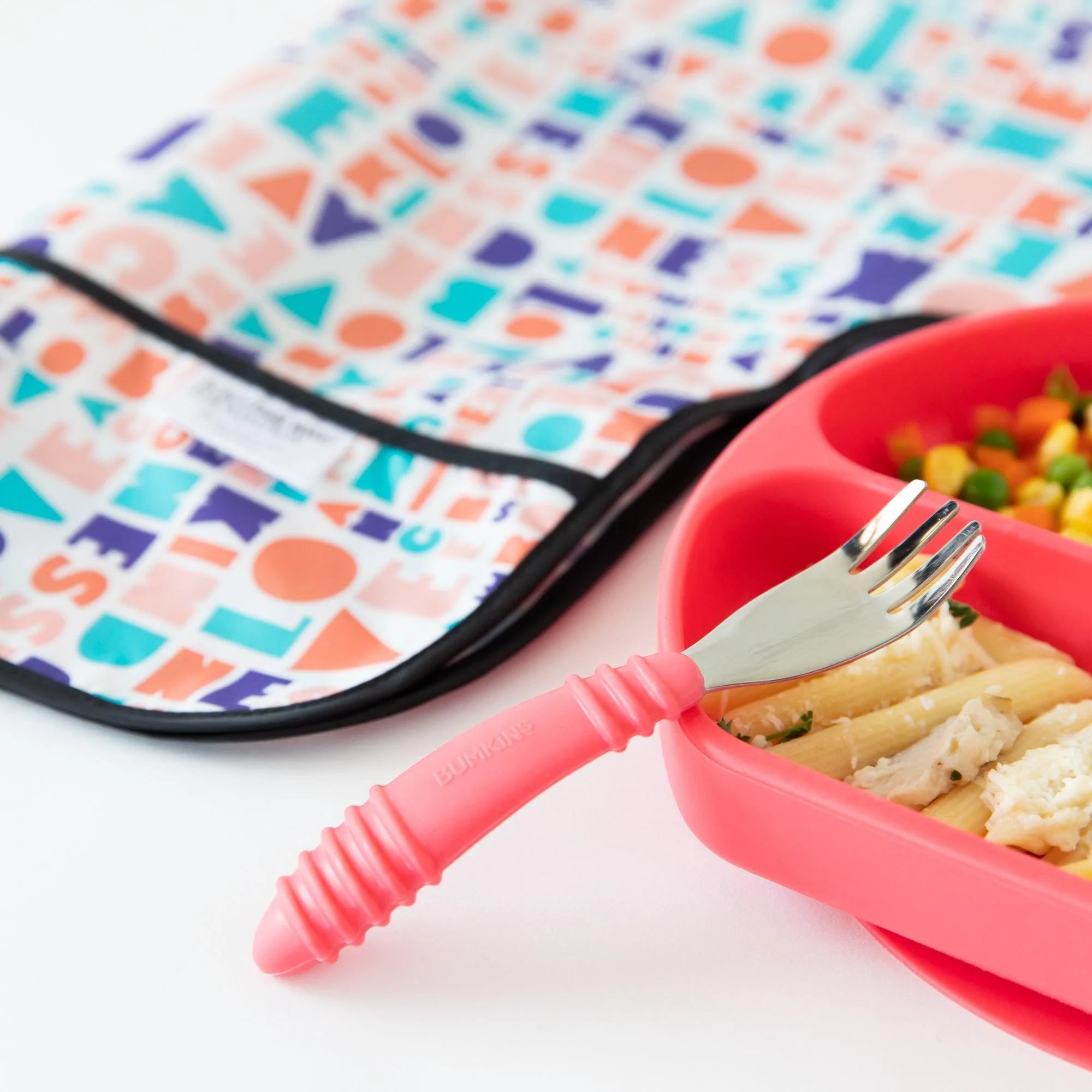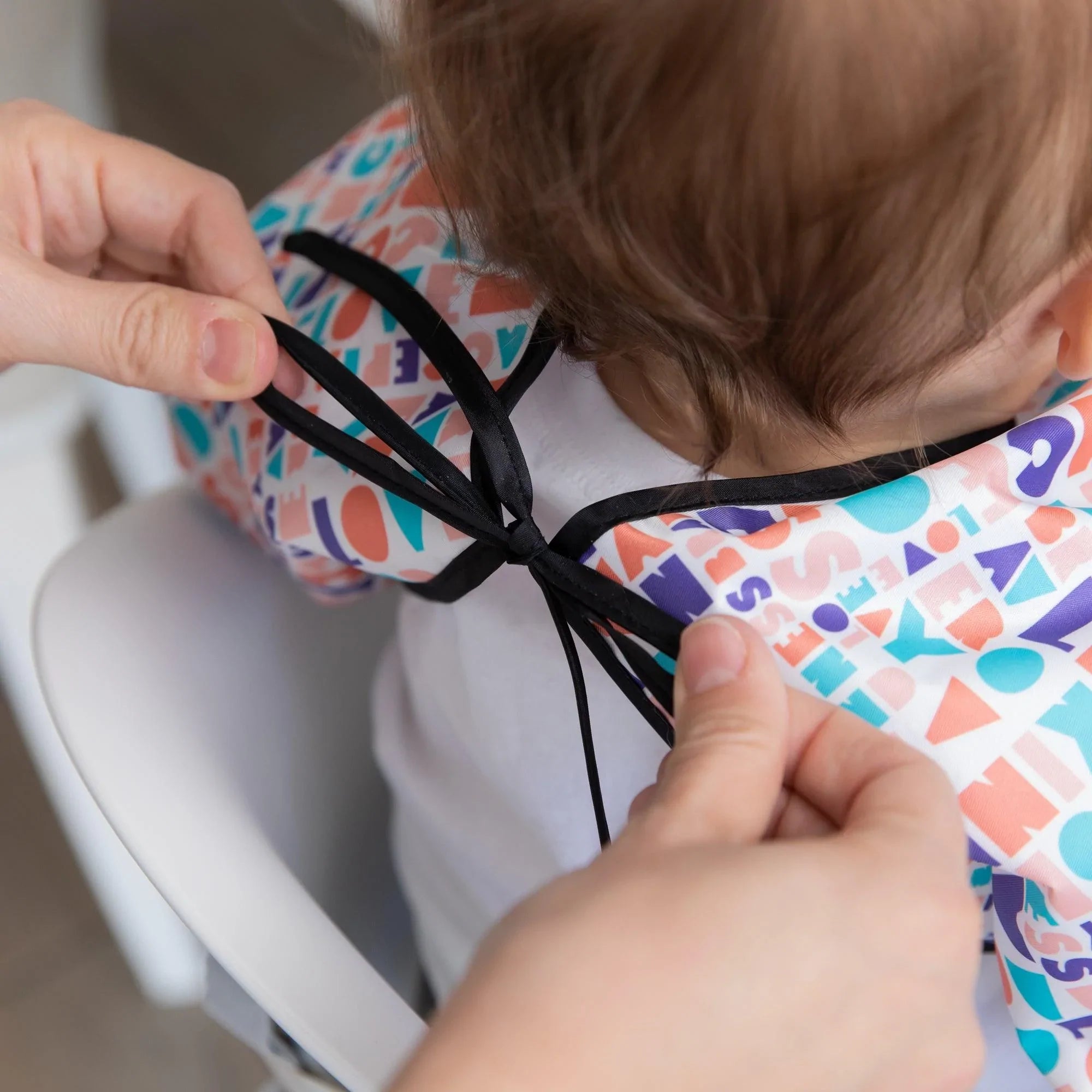De tamaño generoso e ideal para dar de comer al bebé, el babero con mangas está fabricado con el tejido ligero, duradero e impermeable de Bumkins, que resiste las manchas y los olores. Con una sola capa de tejido, no tienes que preocuparte de que crezcan cosas asquerosas entre las capas. Ajústalo a tu pequeño con un cierre de lazo trasero y puños elásticos. Un gran bolsillo ayuda a contener derrames, migas y más. Se puede limpiar con un paño y se puede lavar a máquina para que puedas usarlo una y otra vez.