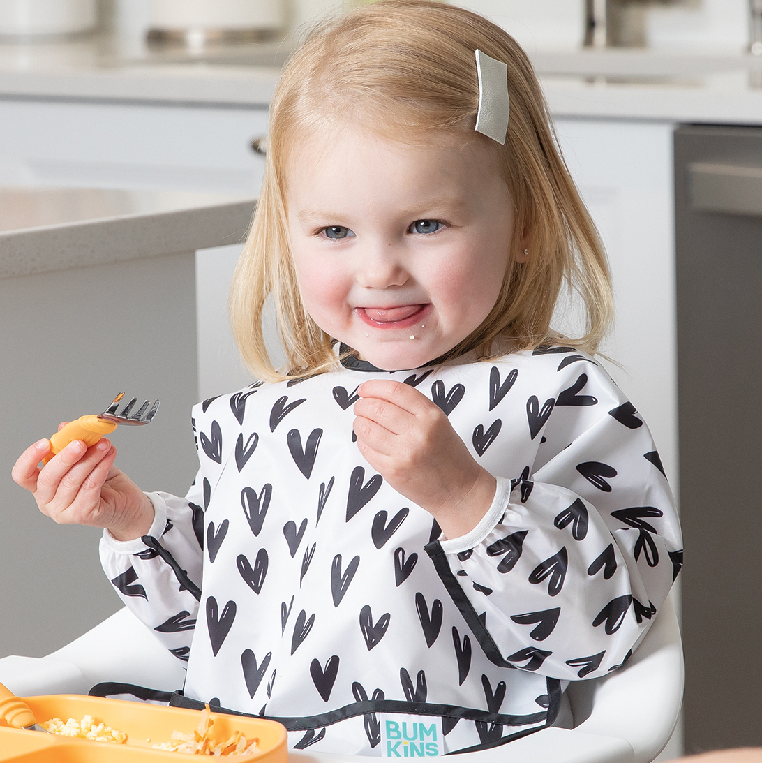 De tamaño generoso e ideal para dar de comer al bebé, el babero con mangas está fabricado con el tejido ligero, duradero e impermeable de Bumkins, que resiste las manchas y los olores. Con una sola capa de tejido, no tienes que preocuparte de que crezcan cosas asquerosas entre las capas. Ajústalo a tu pequeño con un cierre de lazo trasero y puños elásticos. Un gran bolsillo ayuda a contener derrames, migas y más. Se puede limpiar con un paño y se puede lavar a máquina para que puedas usarlo una y otra vez.