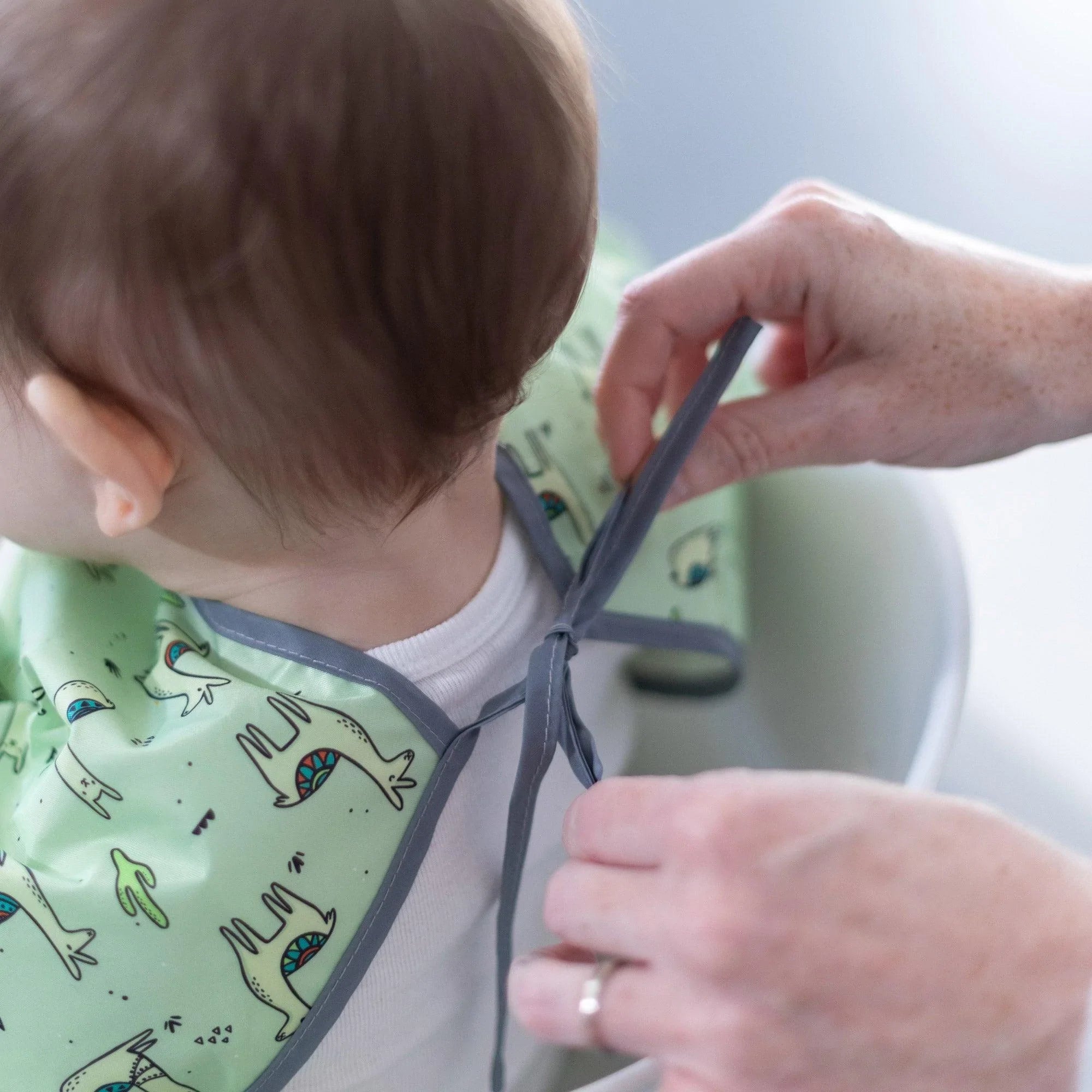 Para prolongar la vida útil de nuestros baberos, recomendamos secar en secadora nuestro tejido de secado rápido.