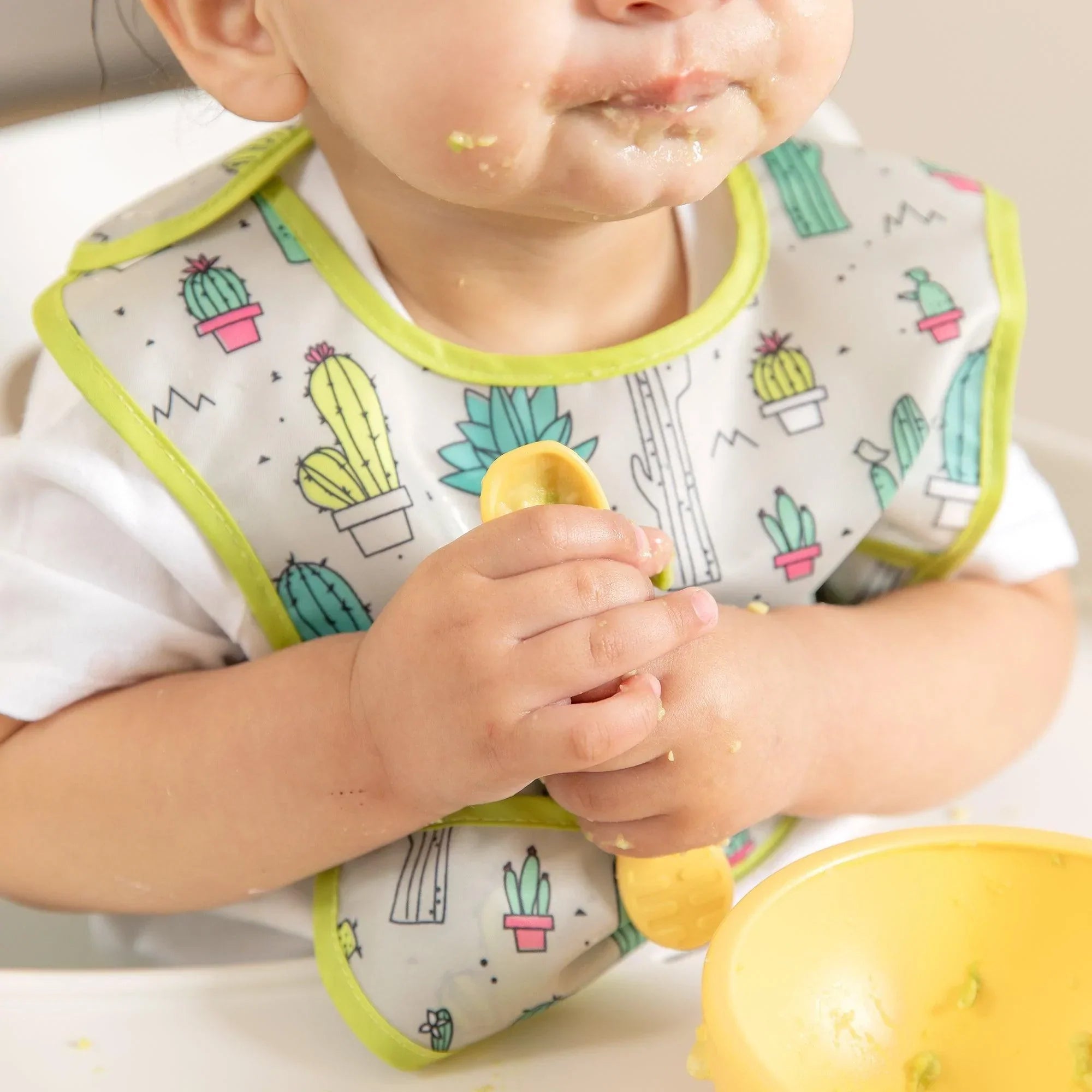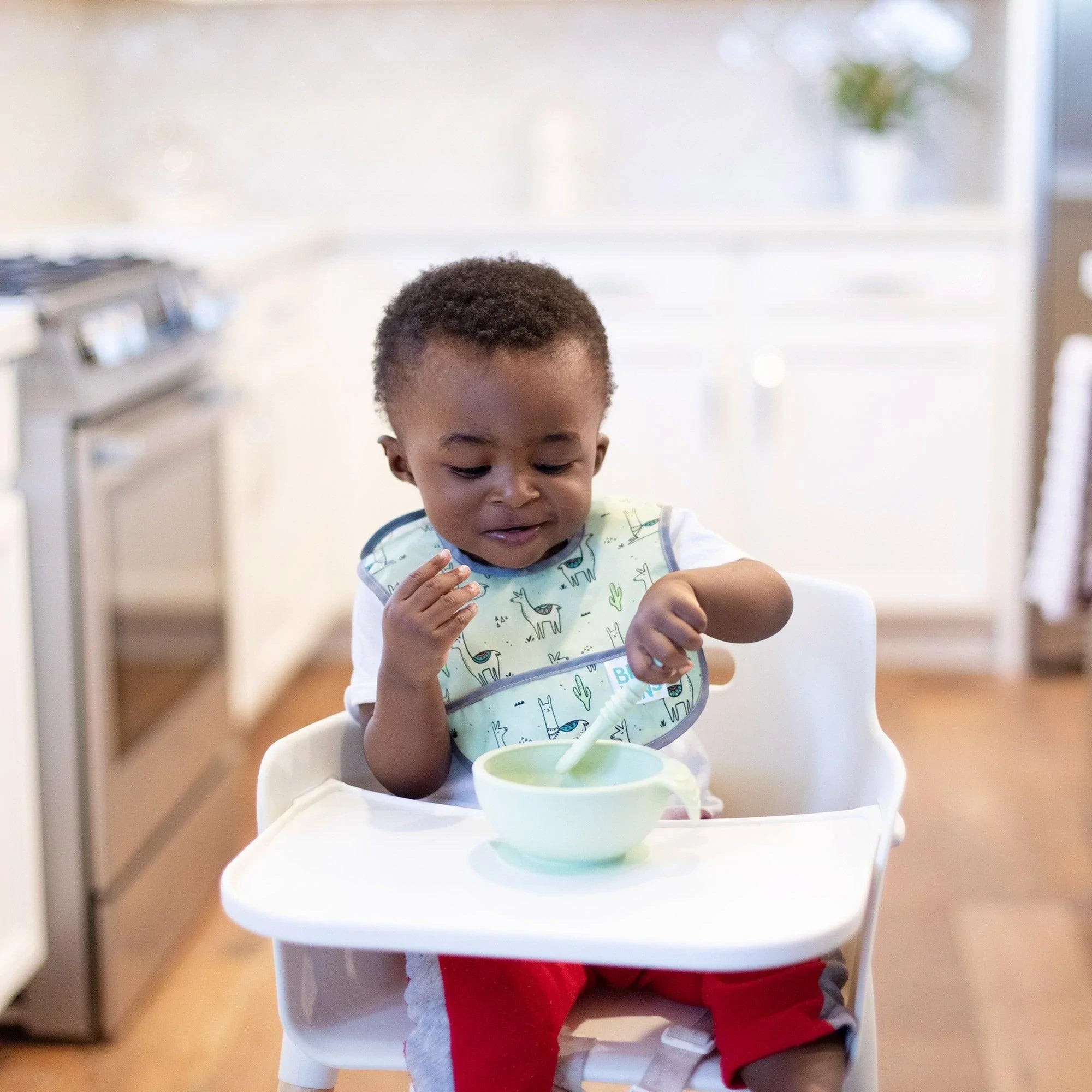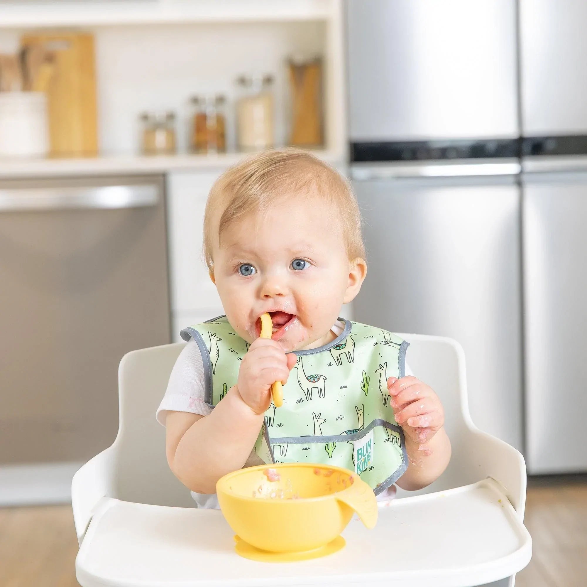 Perfectos para las primeras comidas del bebé, estos baberos de iniciación se sujetan en la parte posterior del hombro con un cierre autoadherente para un ajuste rápido, ajustable y a prueba de tirones, y cuentan con un gran bolsillo recogedor para ayudar a contener derrames, migas y mucho más. Los baberos Starter están fabricados con el tejido ligero, duradero e impermeable de Bumkins, resistente a las manchas y los olores. Su construcción de una sola capa significa que no hay que preocuparse por las cosas asquerosas que crecen entre las capas de tela. Estos baberos se pueden limpiar fácilmente con un paño y se pueden lavar a máquina, ¡y con un paquete de dos siempre tendrás uno a mano!