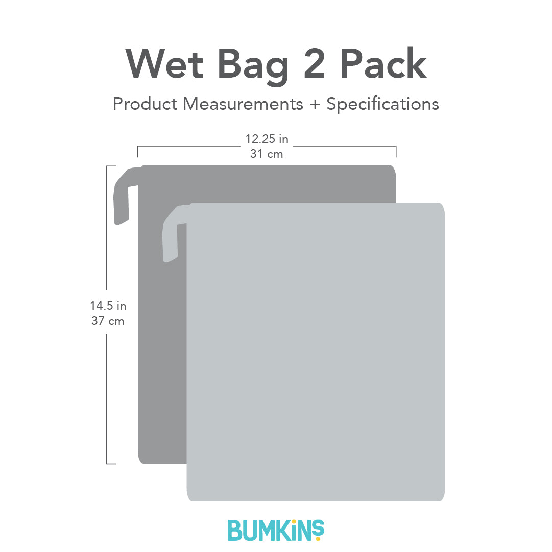 The better alternative to single-use plastic bags, our reusable Wet Bags are made from the same waterproof fabric as Bumkins award-winning SuperBib. Our bags feature heat-sealed seams for true waterproof protection. A smooth zipper closure locks away the mess, and single-ply construction means no worrying about icky stuff growing between layers of fabric. Wet bags are great for carrying diapers, dirty gym clothes, and wet swimsuits. Not just for wet stuff – these bags make excellent organizers for toys, accessories, toiletries, electronics, travel, and more! With a snap handle, snap your bag wherever you need it – stroller, changing table, or suitcase. Bags are single compartment, non-gusseted, non-insulated, and non-stretch.