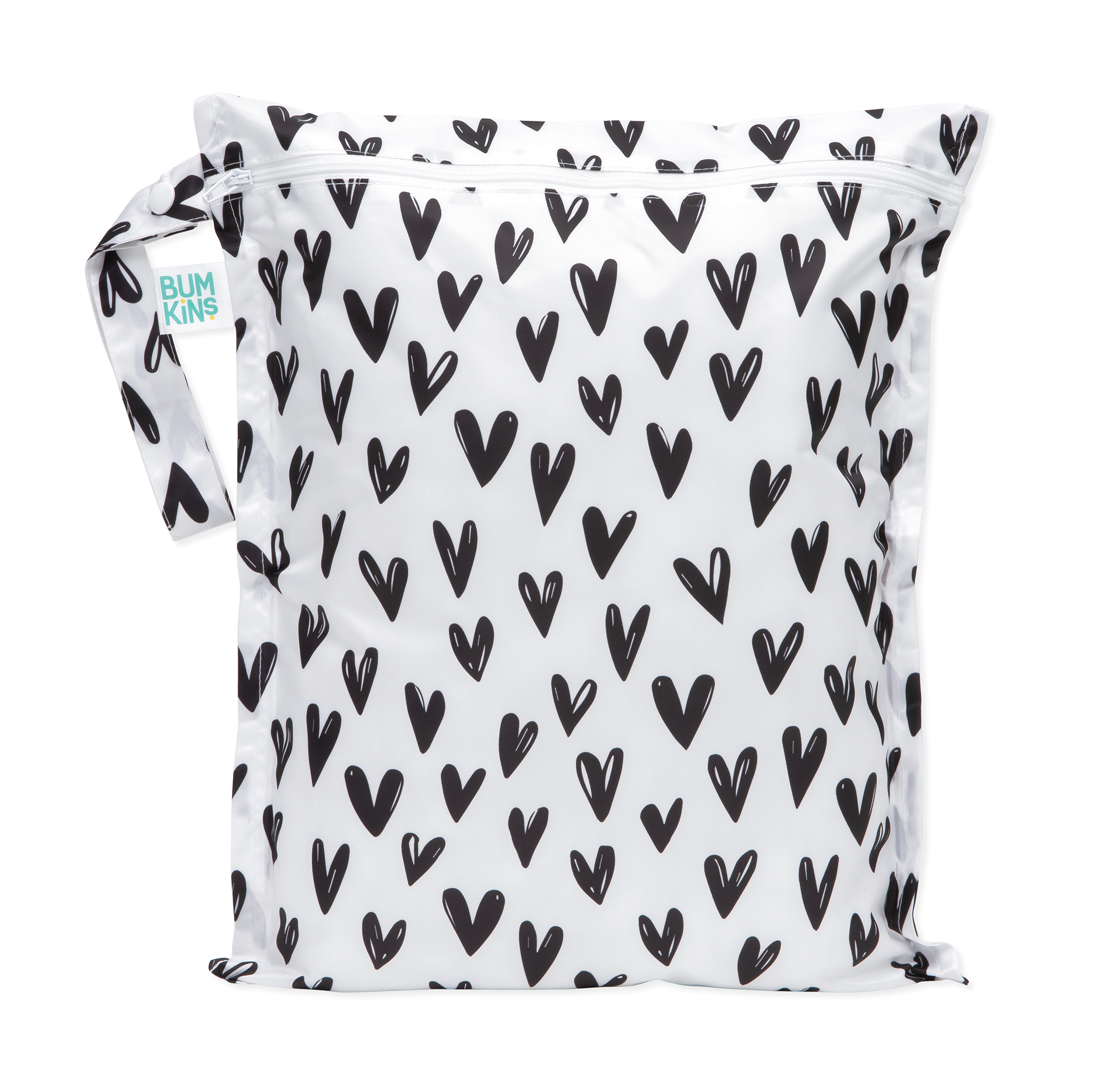 La mejor alternativa a las bolsas de plástico de un solo uso, nuestras bolsas húmedas reutilizables están fabricadas con el mismo tejido impermeable que el galardonado SuperBib de Bumkins. Nuestras bolsas cuentan con costuras termoselladas para una verdadera protección impermeable. Un suave cierre de cremallera impide que se ensucien, y su construcción de una sola capa significa que no hay que preocuparse de que crezcan cosas asquerosas entre las capas de tejido. Las bolsas húmedas son ideales para llevar pañales, ropa sucia del gimnasio y bañadores mojados. Y no sólo para las cosas mojadas: estas bolsas son excelentes organizadores para juguetes, accesorios, artículos de aseo, electrónica, viajes y mucho más. Con un asa a presión, enganche la bolsa donde la necesite: cochecito, cambiador o maleta. Las bolsas tienen un solo compartimento, no tienen fuelle, no están aisladas y no son elásticas.