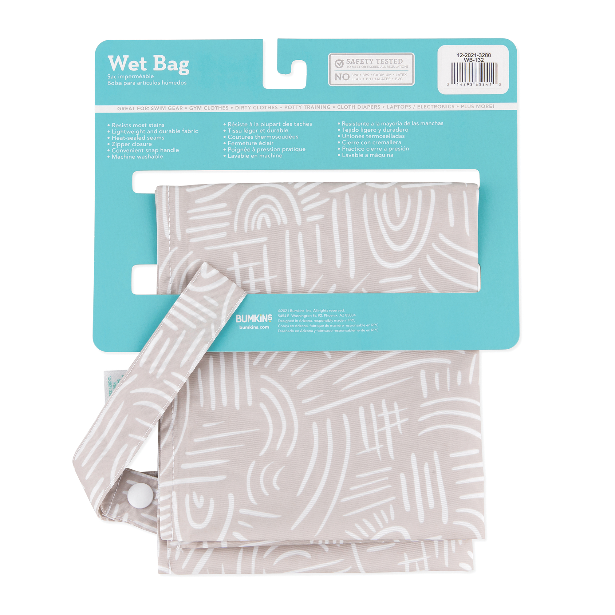 La mejor alternativa a las bolsas de plástico de un solo uso, nuestras bolsas húmedas reutilizables están fabricadas con el mismo tejido impermeable que el galardonado SuperBib de Bumkins. Nuestras bolsas cuentan con costuras termoselladas para una verdadera protección impermeable. Un suave cierre de cremallera impide que se ensucien, y su construcción de una sola capa significa que no hay que preocuparse de que crezcan cosas asquerosas entre las capas de tejido. Las bolsas húmedas son ideales para llevar pañales, ropa sucia del gimnasio y bañadores mojados. Y no sólo para las cosas mojadas: estas bolsas son excelentes organizadores para juguetes, accesorios, artículos de aseo, electrónica, viajes y mucho más. Con un asa a presión, enganche la bolsa donde la necesite: cochecito, cambiador o maleta. Las bolsas tienen un solo compartimento, no tienen fuelle, no están aisladas y no son elásticas.