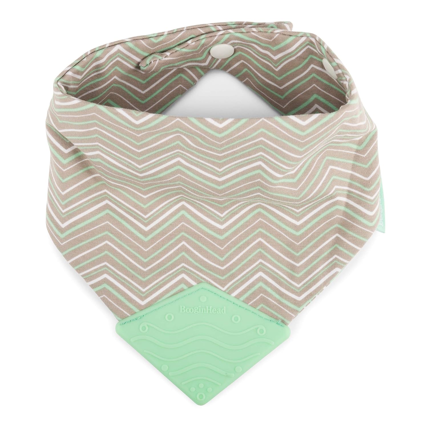 Get a grip on drool! BooginHead Bandana Teether Bib is a stylish baby bib for drooling and teething babies. The attached food-grade silicone teether massages sore gums and the soft cotton bib keeps baby’s clothes and skin dry. Bold and classic patterns are hand-designed in house for a chic, functional piece that offers peace of mind and looks cute, too. This bib is very comfortable to wear, machine washable, and features a 2-snap closure to grow with your baby for many months of daily use. Makes a great baby shower gift!