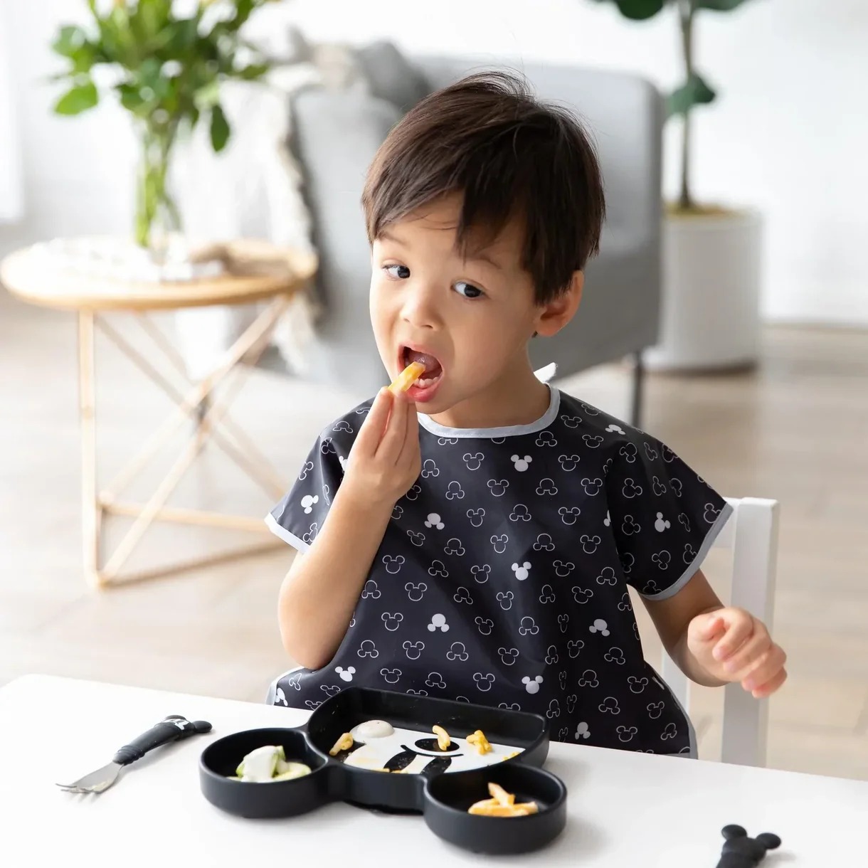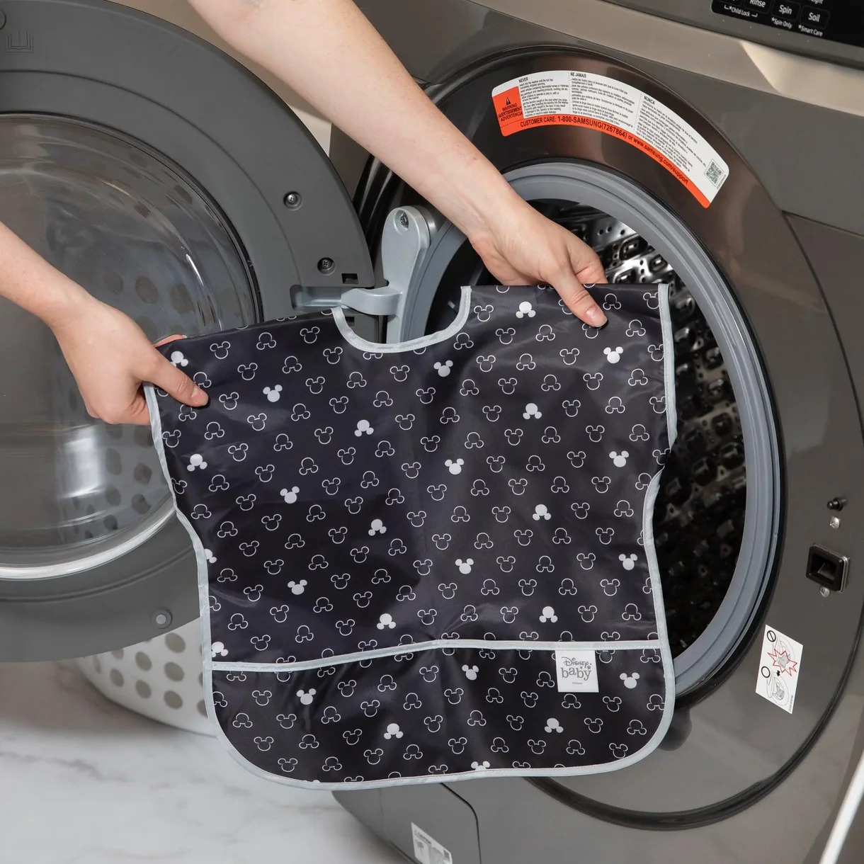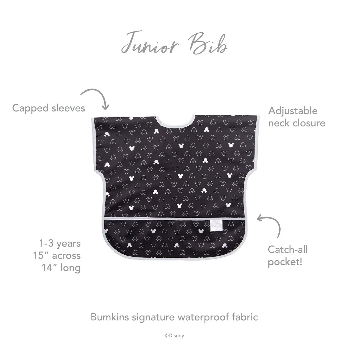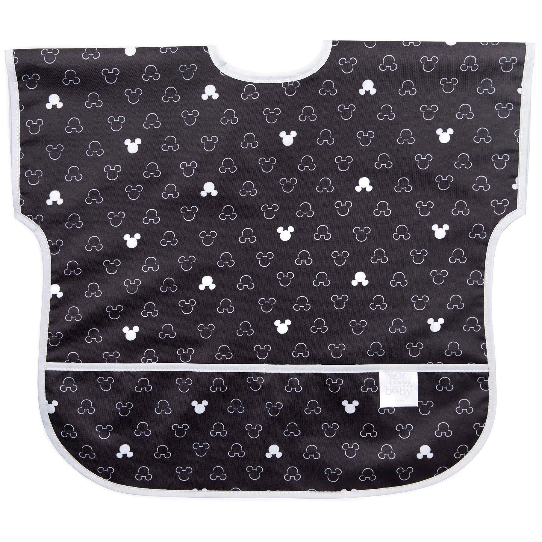 Your child won’t realize they’re wearing a bib as they slip on this short-sleeved toddler bib that features a large catch-all pocket to help contain spills, crumbs, and more. The back hook-and-loop closure allows for a quick, adjustable, and tug-proof fit. Wipeable and machine washable for easy cleaning so you can use it over and over again!