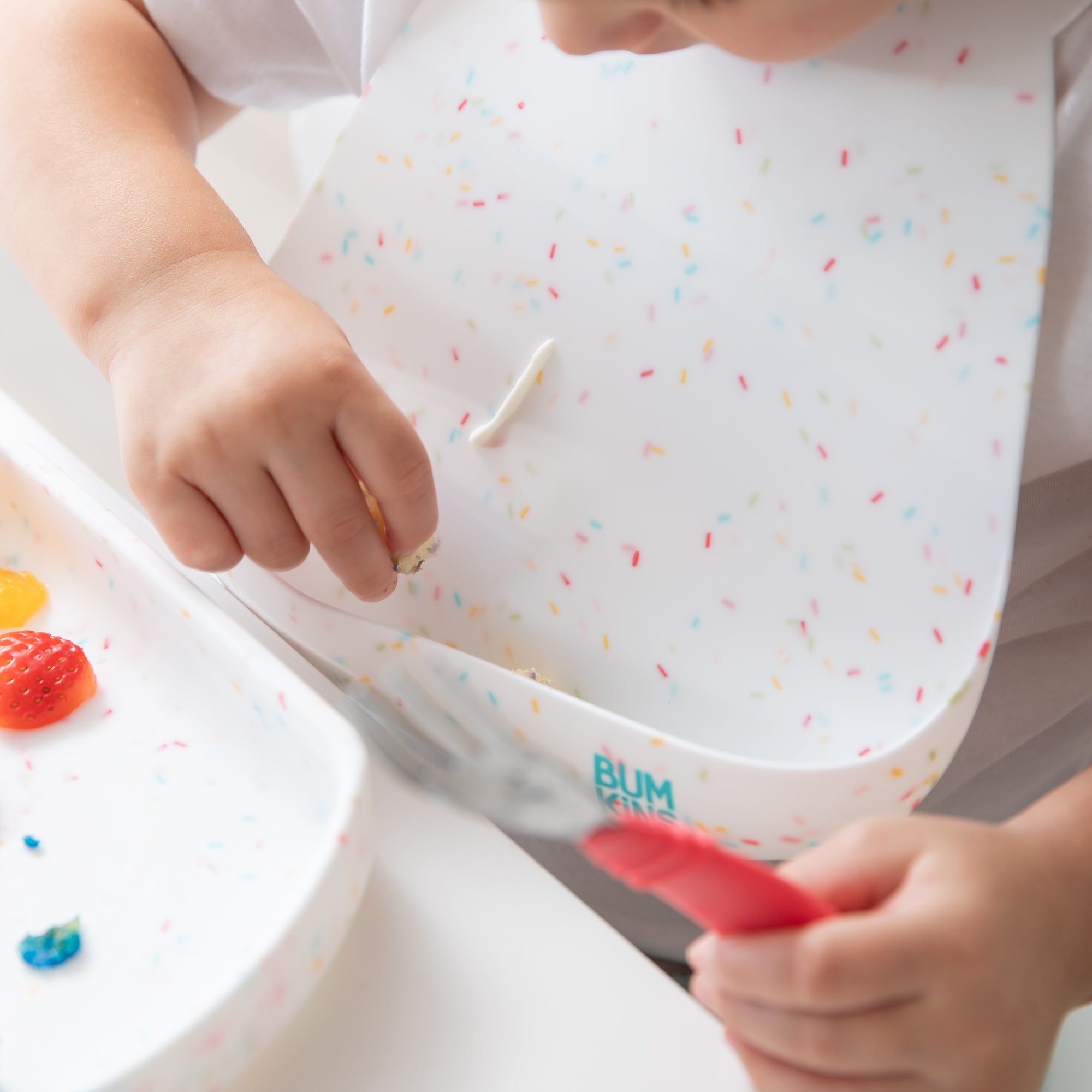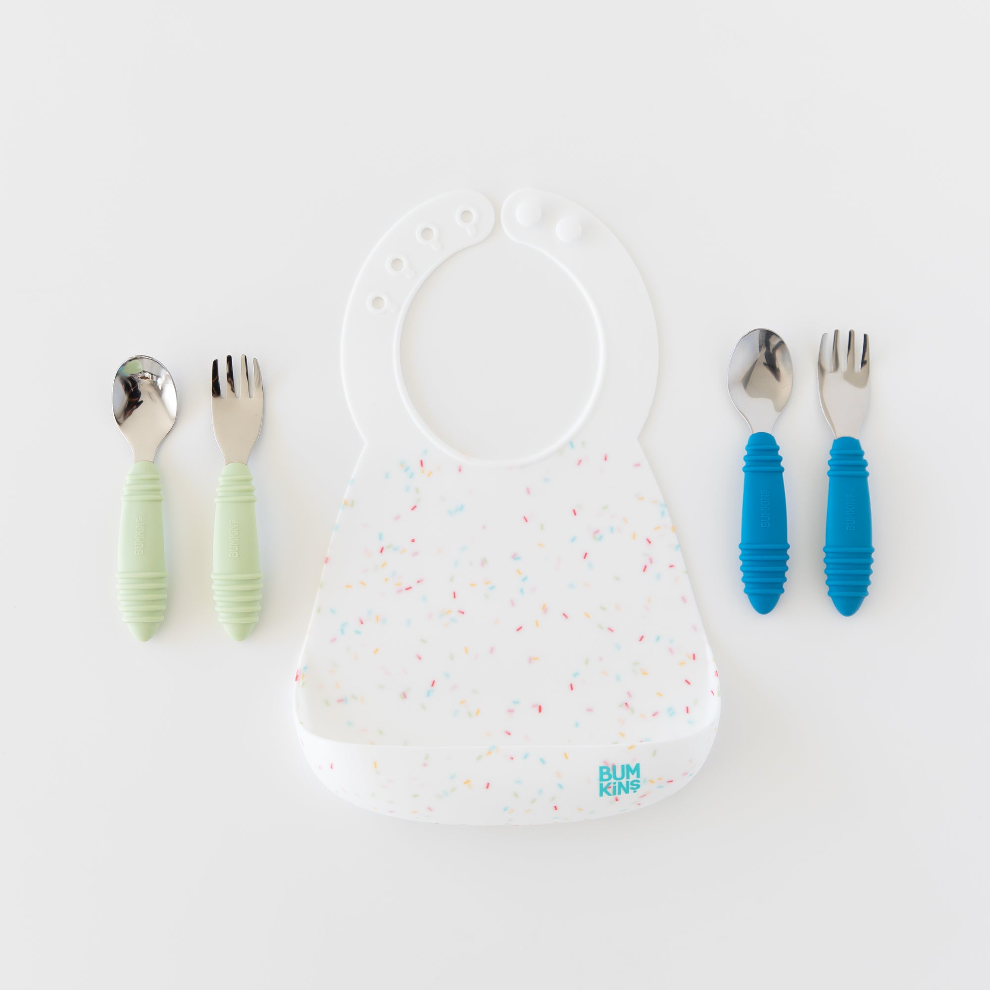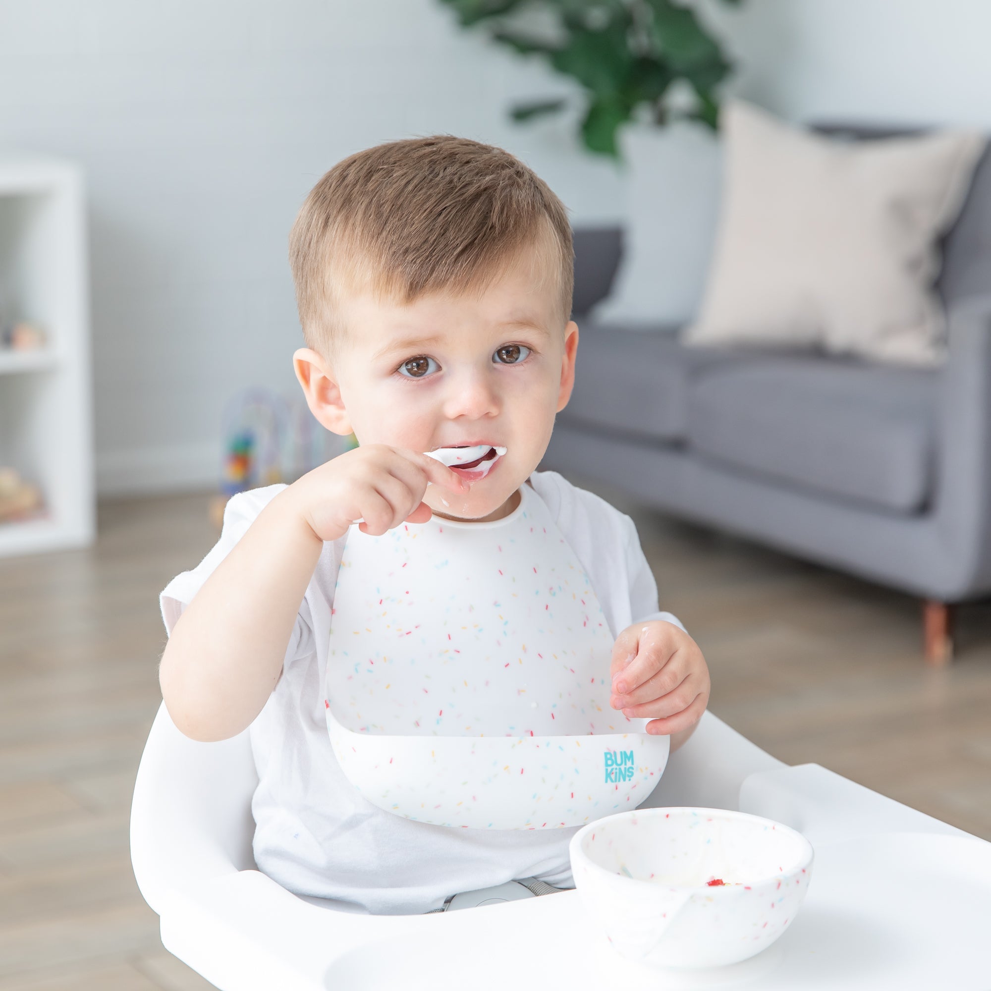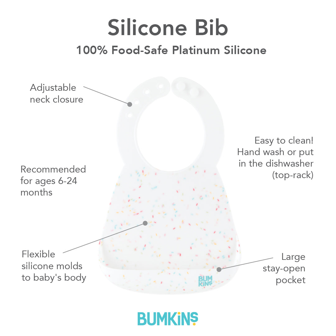 The Bumkins Silicone Bib is great for reducing mealtime mess. The large catch-all pocket is wide open for catching drips, drops, and spills before they hit baby’s lap or the floor. Start using this as baby begins eating dribbly purees and then transitions to self-feeding solids, adjusting the neck buttons as they grow. The bib is made from flexible, durable, food-safe platinum silicone that cleans up quickly and easily and can even go in the dishwasher! Silicone is also naturally resistant to bacteria and most odors and stains, making it a safe and hygienic choice for messy babies.