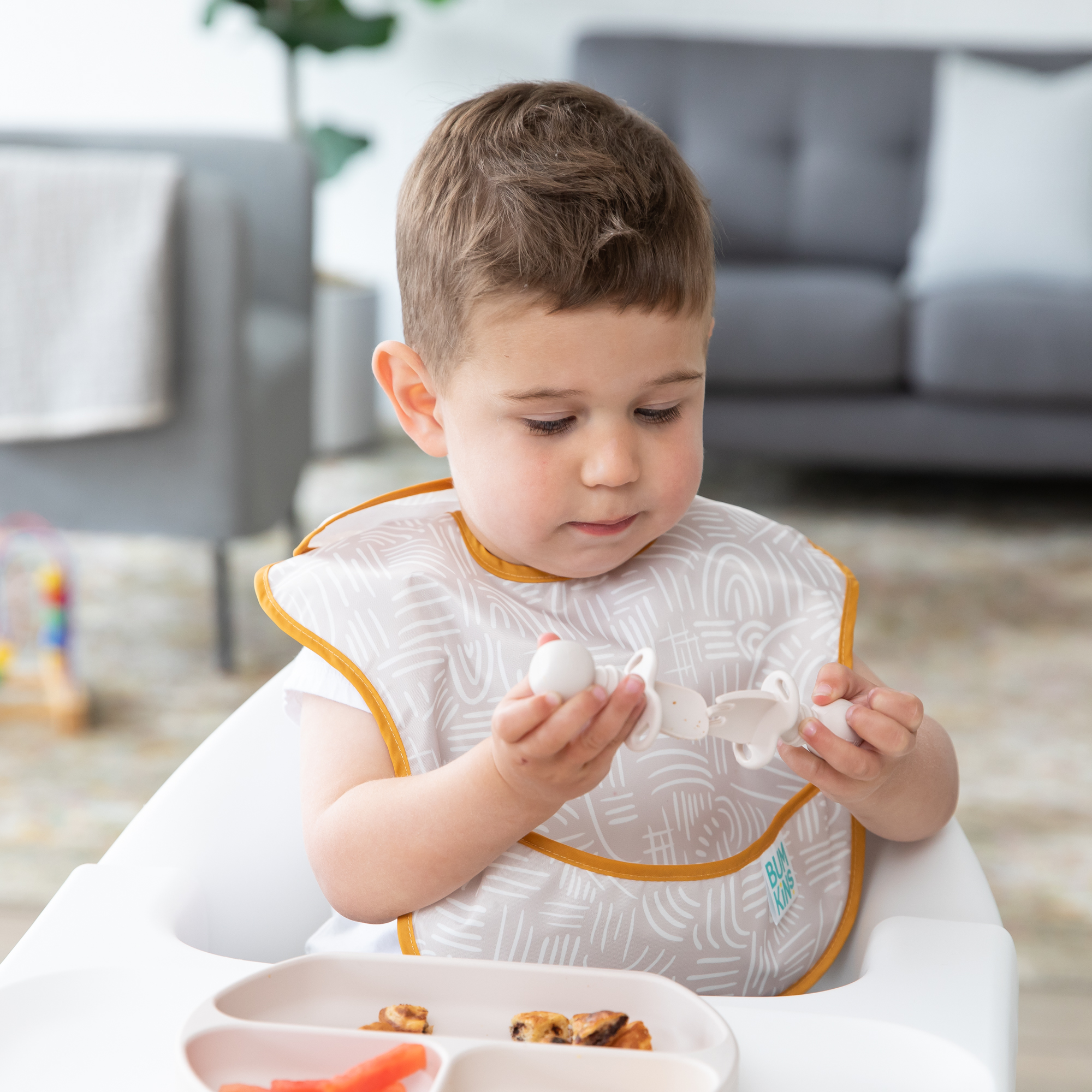 We designed Chewtensils for Stage 1 of baby-led weaning – introducing babies to the concept of holding a utensil and feeding themselves. Made from soft, textured, food-grade silicone that’s easy to grip and gentle on tender gums, with bendable heads for safety. The back of the spoon head has sensory bumps to stimulate gums. They’re perfect for dipping into puréed foods at the early part of baby led weaning. Chewtensils can be chewed on by younger babies before they’re ready to transition to silverware. They’re safe to use – made from 100% food-safe silicone.