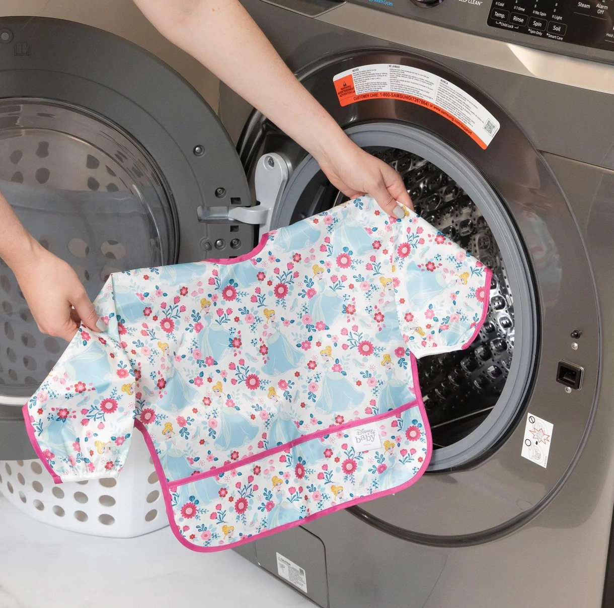 De taille généreuse et idéal pour nourrir le bébé, le bavoir à manches est fabriqué dans le tissu léger, durable et imperméable de Bumkins, qui résiste aux taches et aux odeurs. Avec une seule couche de tissu, vous n'avez pas à vous soucier de la prolifération de substances indésirables entre les couches. Ajustez la taille de votre enfant grâce à la fermeture à l'arrière et aux poignets élastiques. Une grande poche attrape-tout permet de contenir les éclaboussures, les miettes et bien plus encore. Essuyable et lavable en machine, elle se nettoie facilement pour que vous puissiez l'utiliser encore et encore !