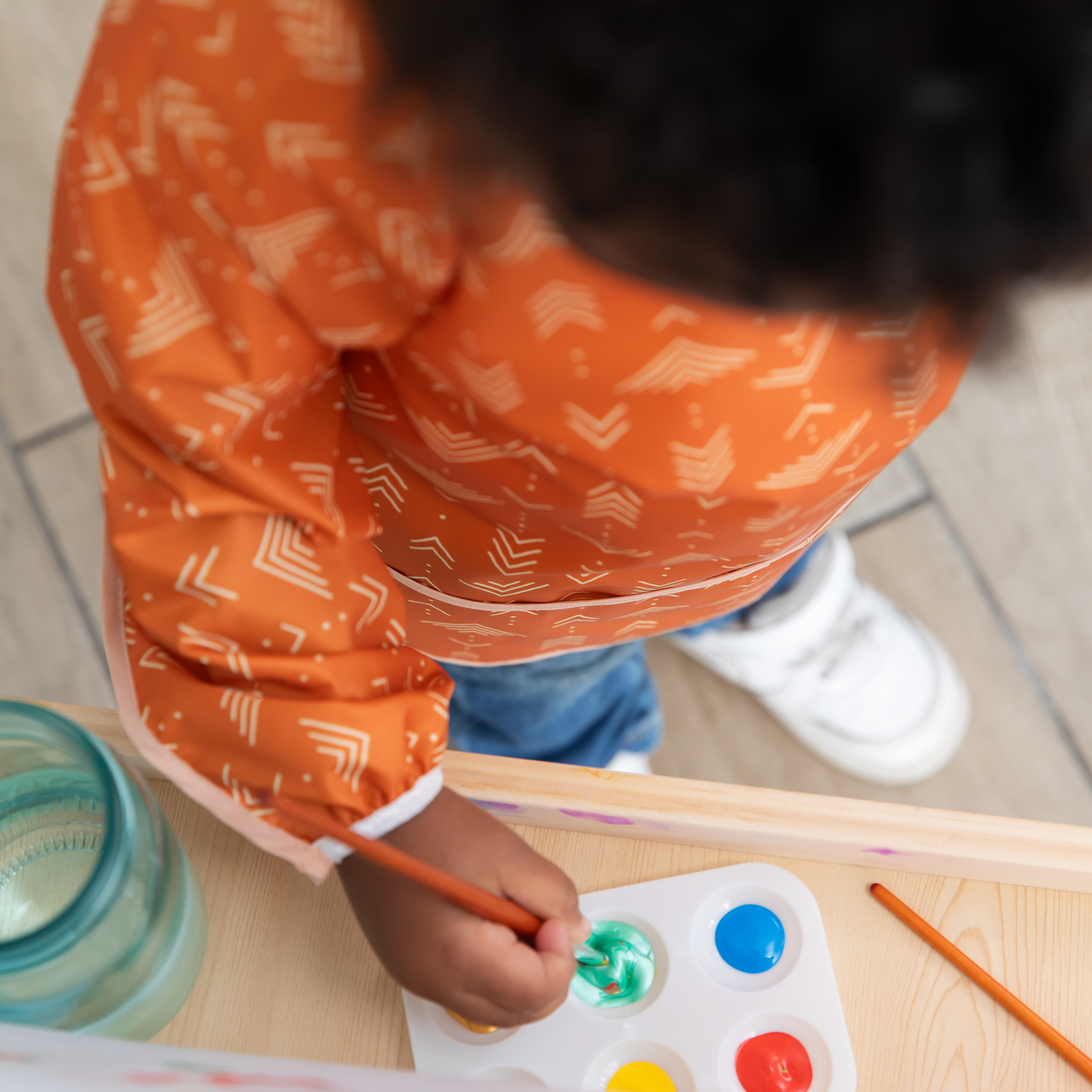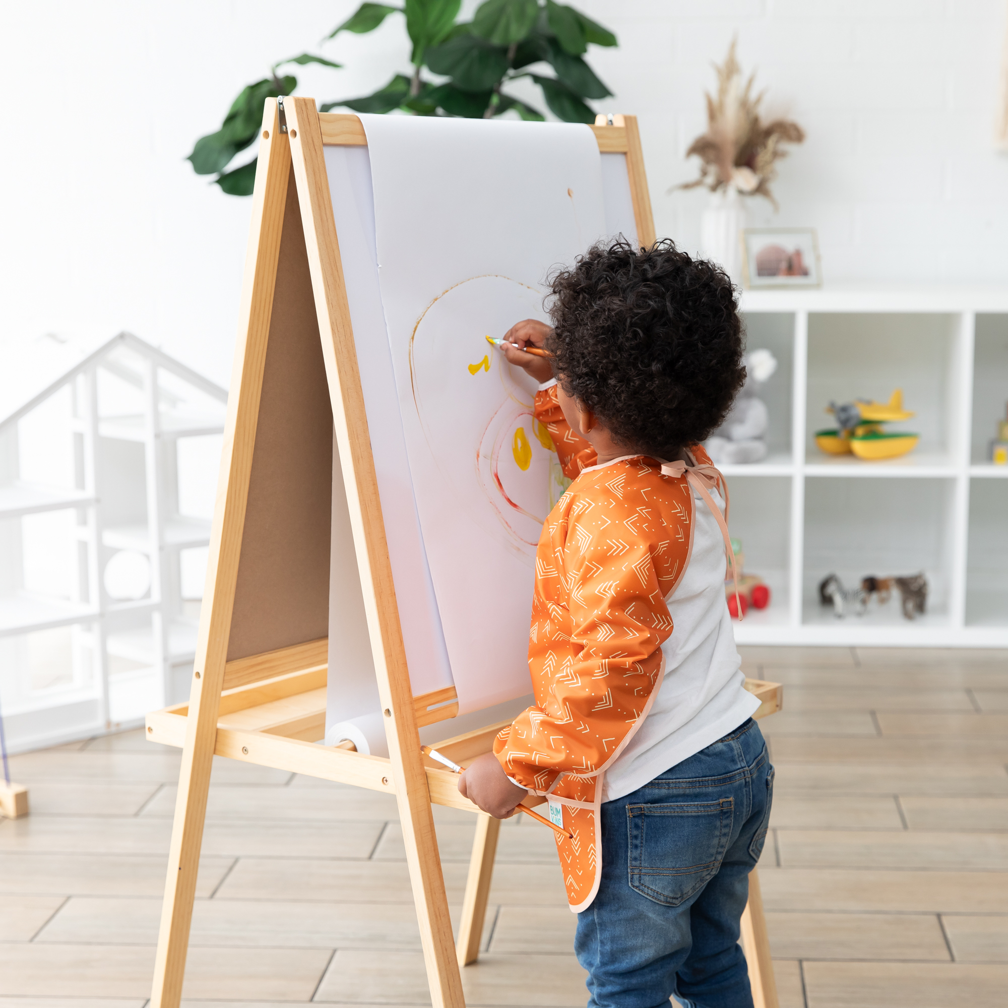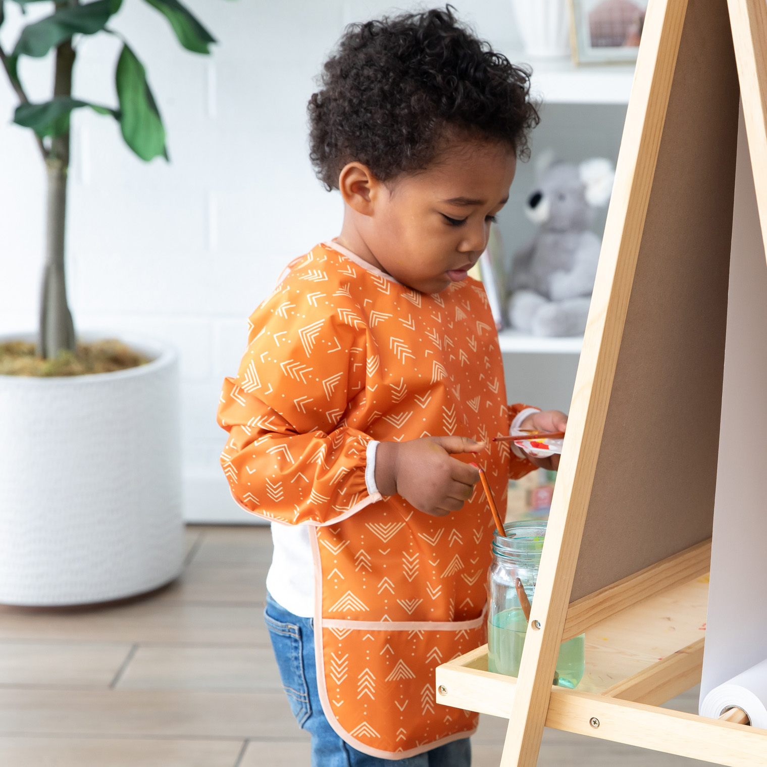 Parfaite pour votre artiste en herbe, la blouse d'art à manches longues empêche la créativité de tacher les vêtements ! Elle peut également servir de bavoir pour les enfants qui mangent mal et qui sont devenus trop grands pour notre bavoir à manches. Elle est dotée d'une poche suffisamment grande pour y ranger les fournitures artistiques ou pour recueillir les gouttes et les éclaboussures. Fabriqué en tissu Bumkins léger, imperméable, facile à essuyer, résistant aux taches et aux odeurs. La construction en un seul pli signifie qu'il n'est pas nécessaire de s'inquiéter de la croissance d'éléments indésirables entre les couches de tissu. Sans couche de coton, les taches et les odeurs ne s'incrustent pas. Essuyable et lavable en machine, il se nettoie facilement pour que vous puissiez l'utiliser encore et encore ! Fermeture réglable à l'aide d'une cravate.
