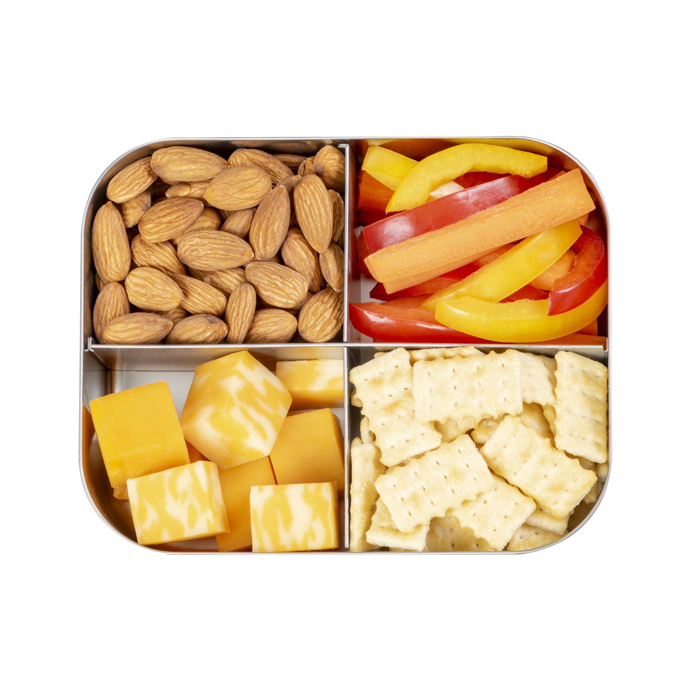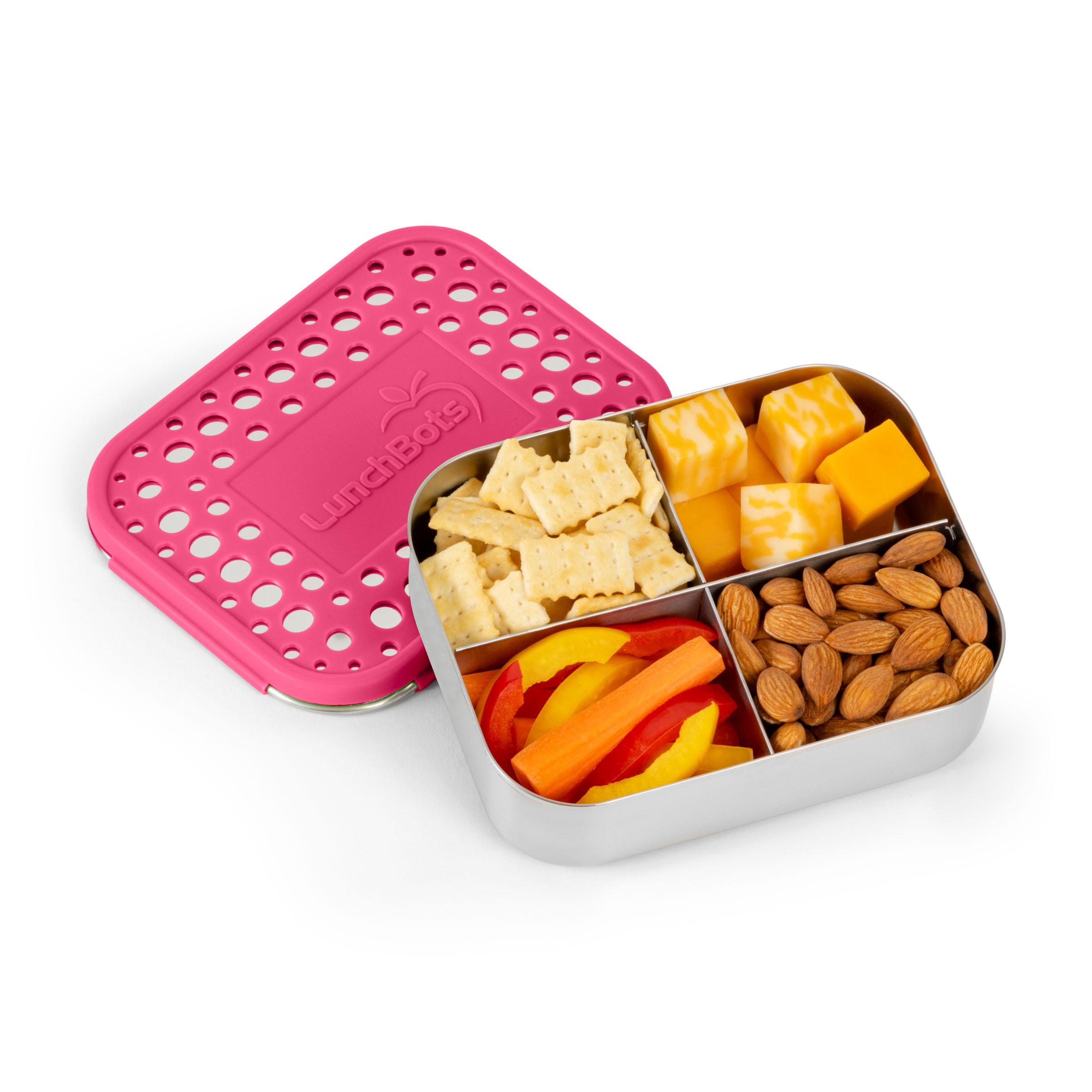 Le Quad est le centre des collations saines, offrant quatre petits compartiments pour une infinité de façons de grignoter. Cette boîte à bento en acier inoxydable est parfaite pour les repas des tout-petits ou à remplir avec vos grignotages préférés pour le petit creux de l'après-midi.