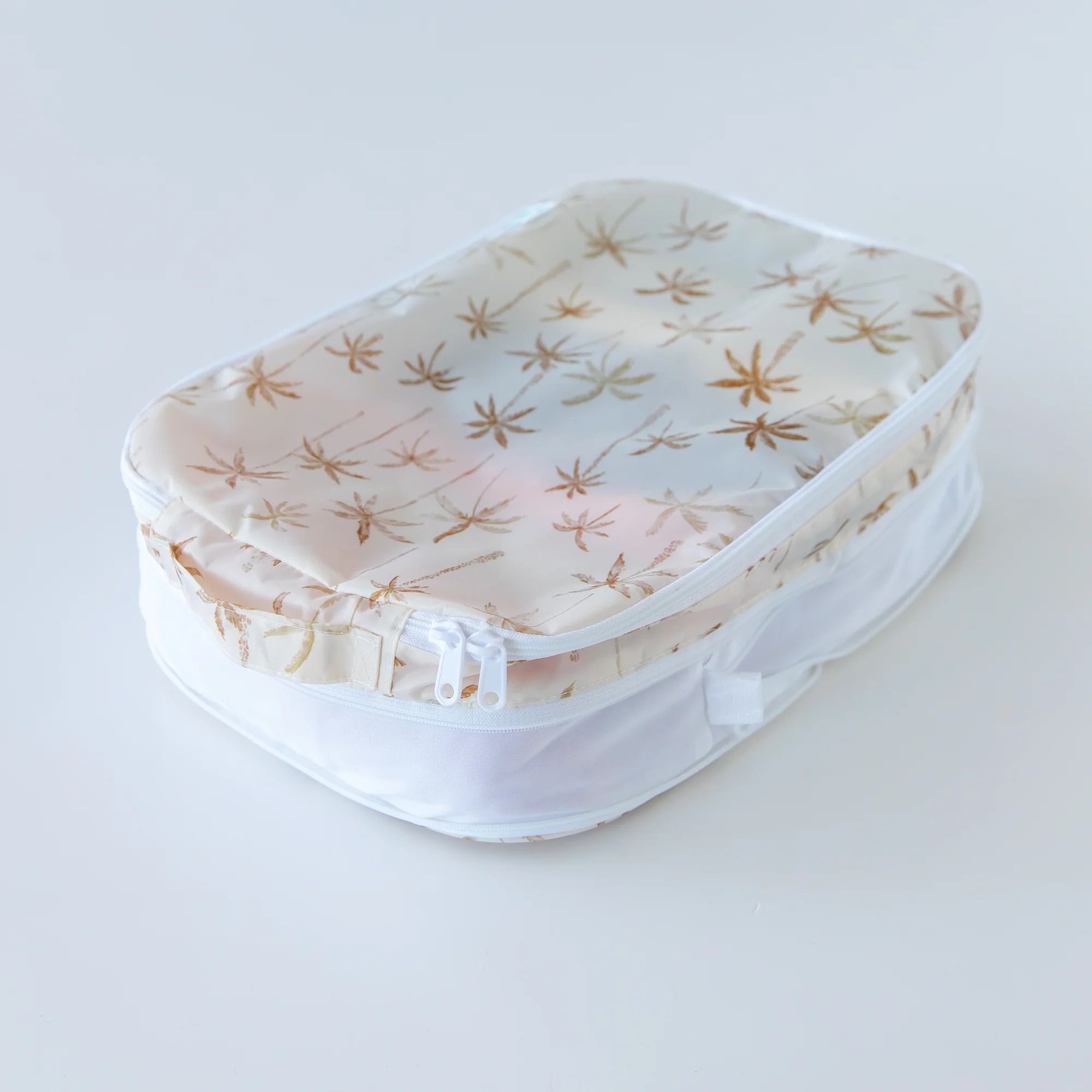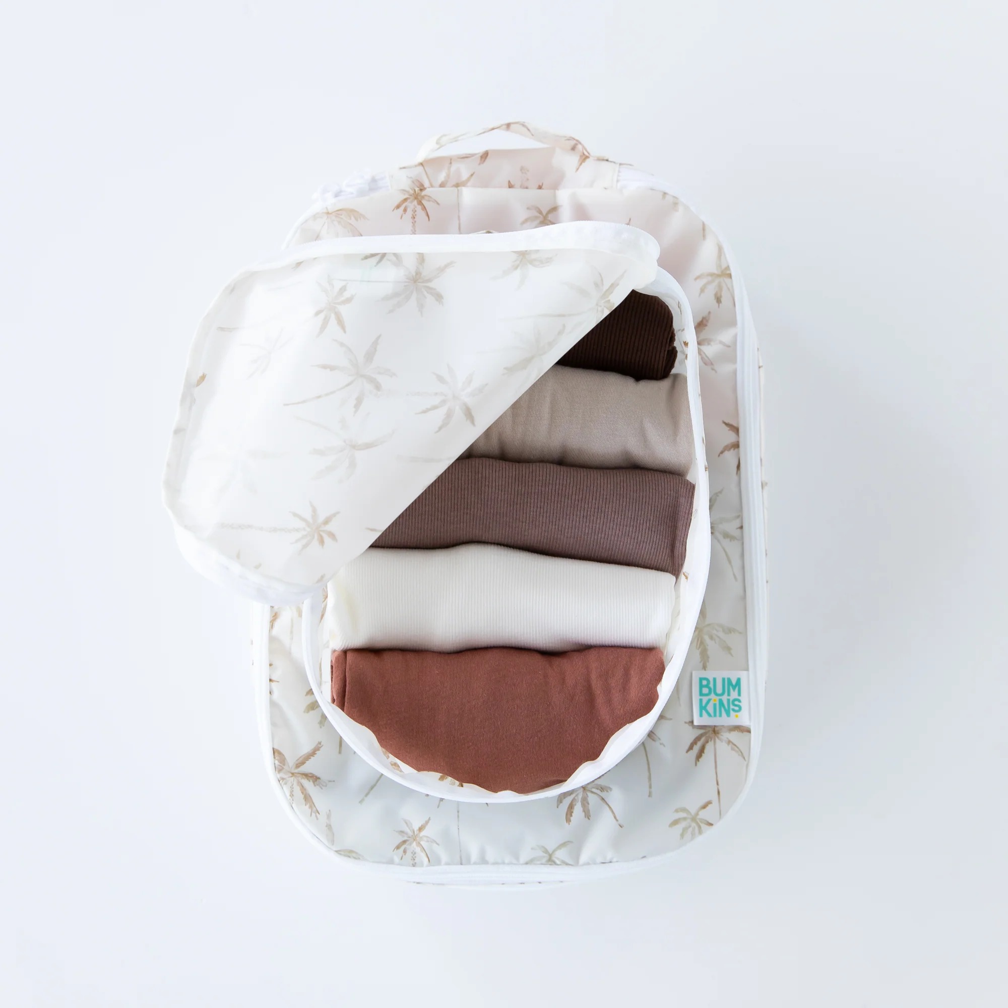 Emballez, emballez ! Voyagez avec style et restez organisé grâce aux cubes de rangement Bumkins. Fabriqués à partir de notre tissu imperméable, ces cubes de rangement sont durables, imperméables et résistants aux taches et aux odeurs. Quelle que soit la destination de votre prochaine aventure, nos cubes de rangement sont de formidables organisateurs pour les vêtements, les articles intimes, les articles de toilette, les appareils électroniques, les couches et bien plus encore. Fermeture éclair ou non ? Le plus grand cube d'emballage peut se comprimer ou s'étendre pour s'adapter à tous vos besoins de voyage.
