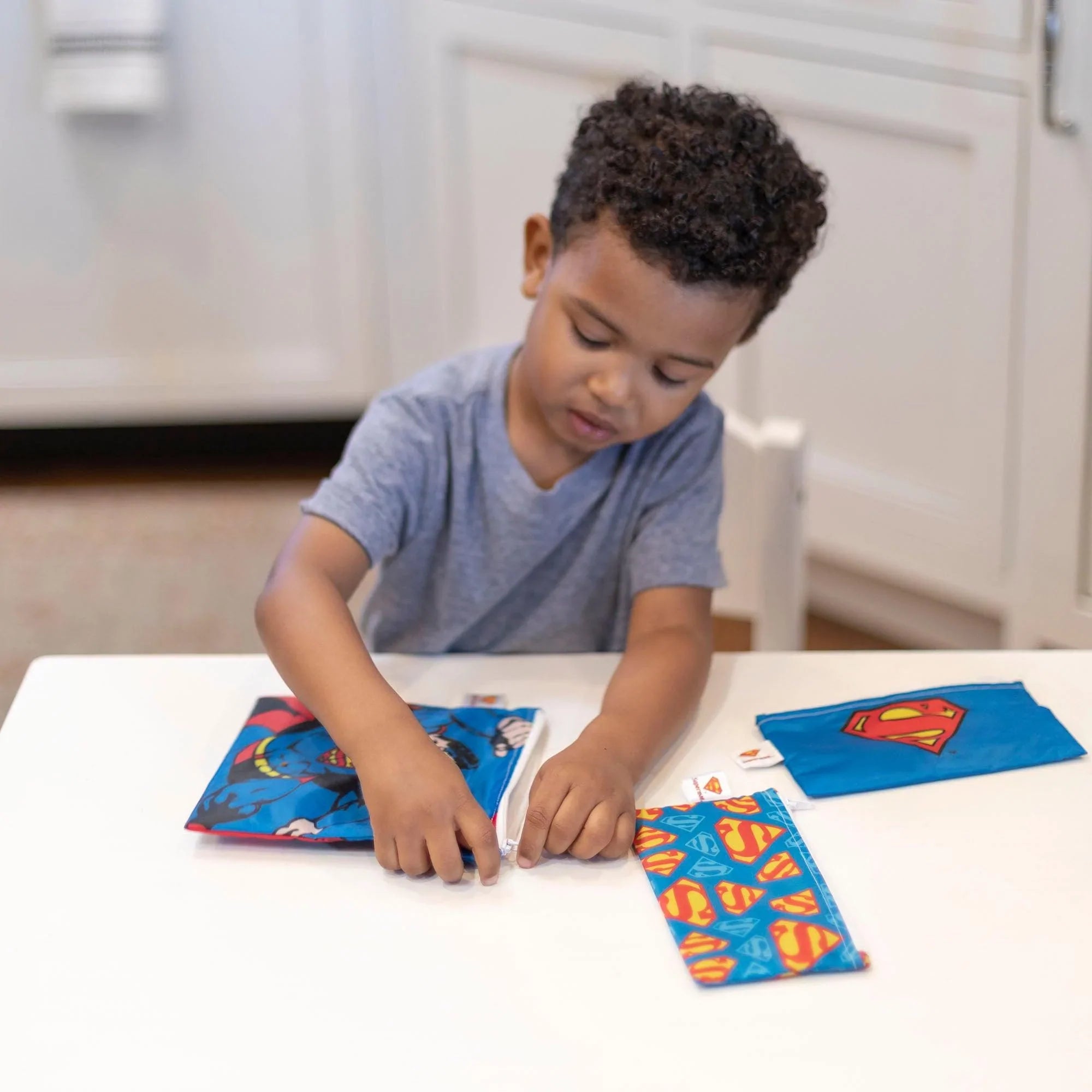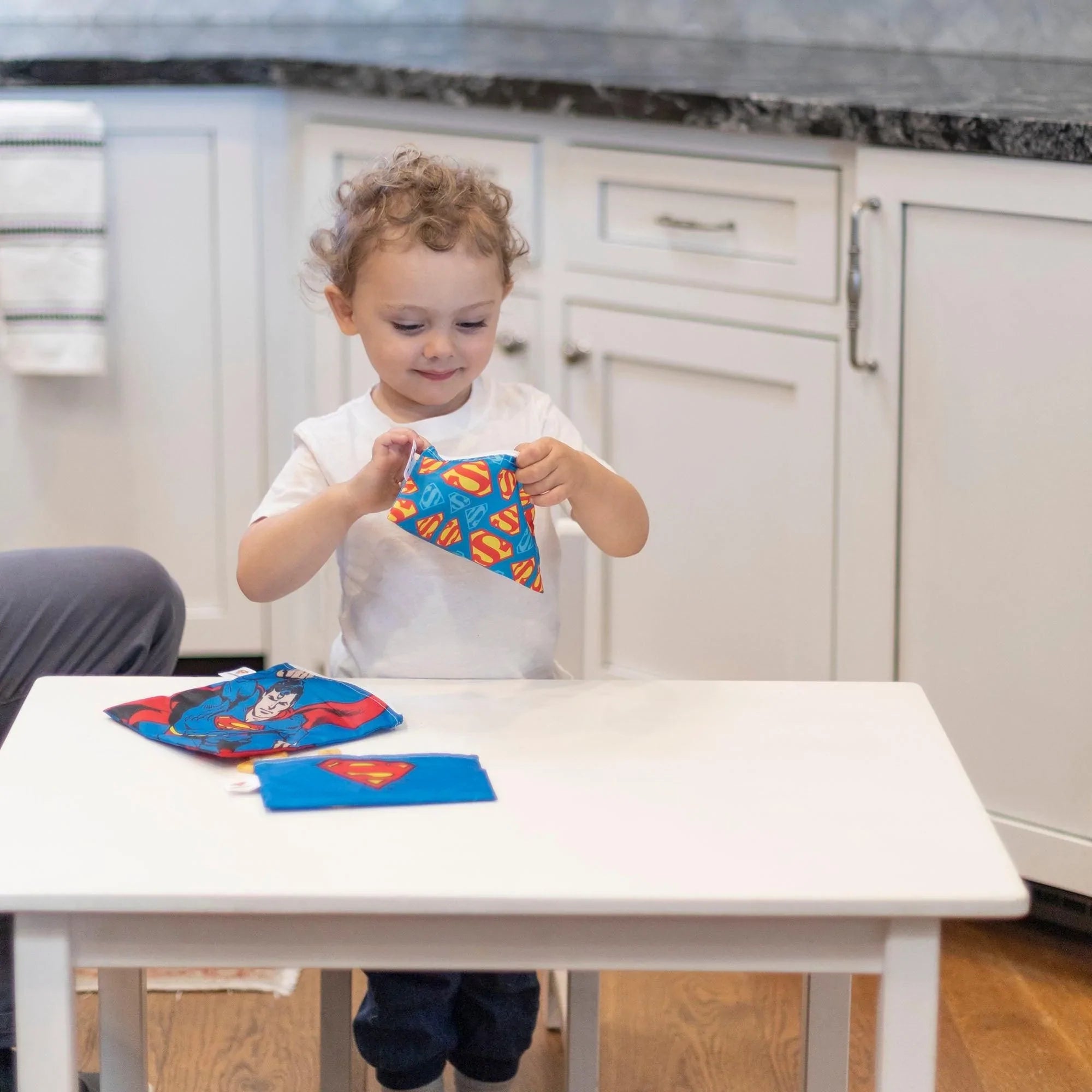 The better alternative to single-use plastic bags, our reusable  Snack Bags are made from the same easy-wipe waterproof and stain-resistant fabric as our SuperBib®. A smooth zipper closure locks in crumbs, and single-ply construction means no worrying about icky stuff growing between layers of fabric. Not just for food, snack bags make excellent organizers for storage and travel! Stash inside your purse, diaper bag, or travel bag. Great for pacifiers, cosmetics, cash, electronics, and more.