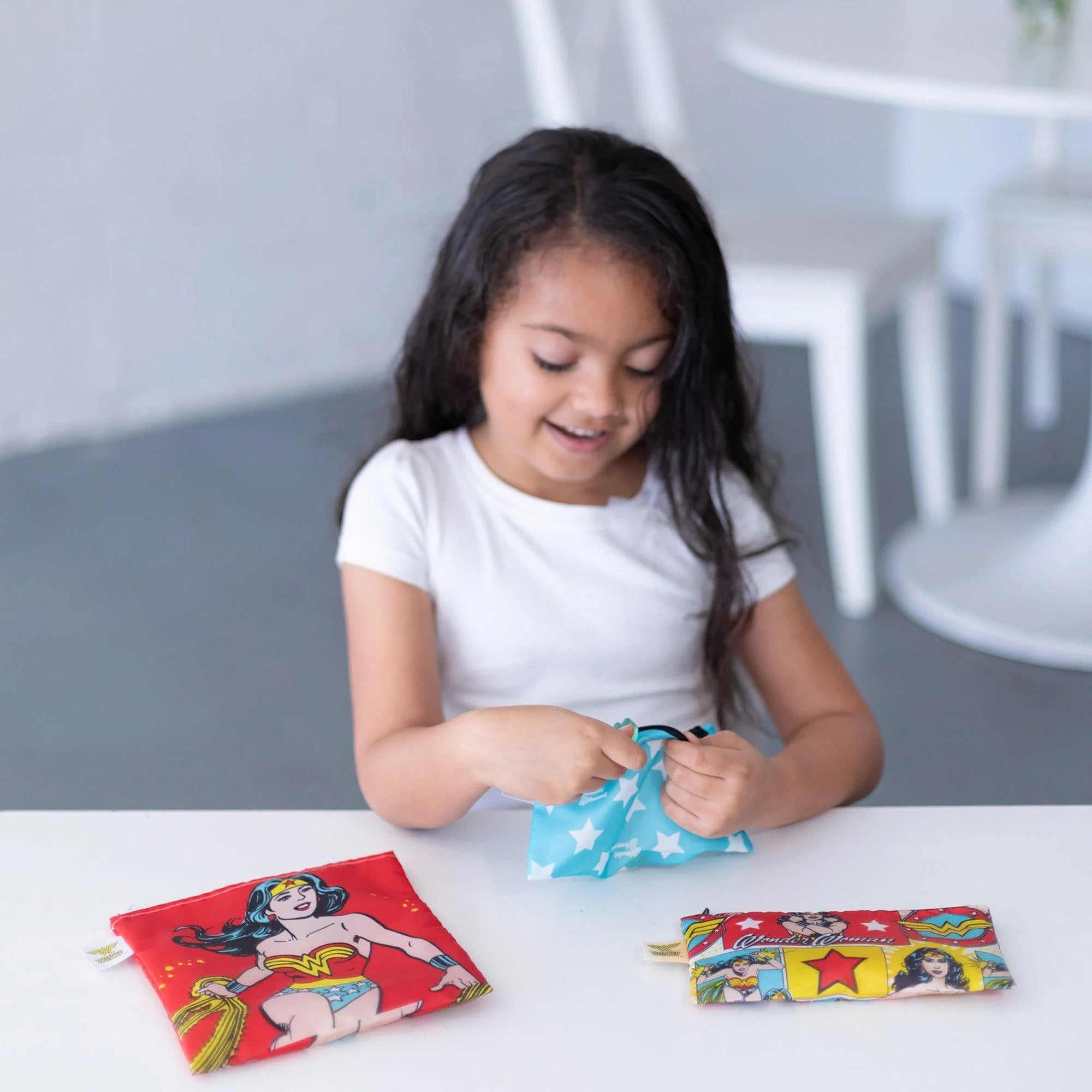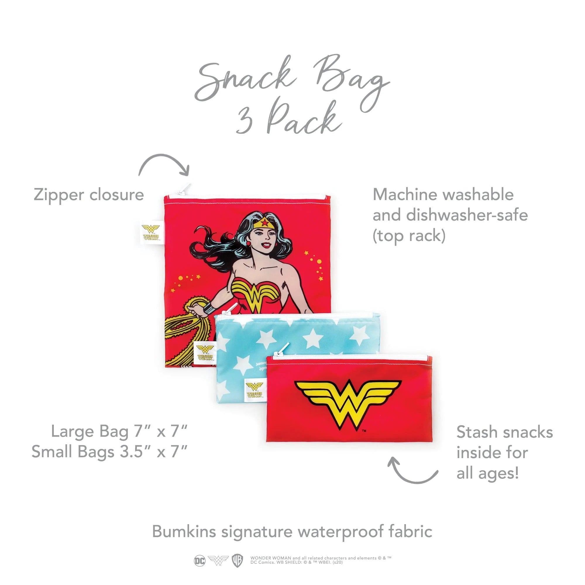 The better alternative to single-use plastic bags, our reusable  Snack Bags are made from the same easy-wipe waterproof and stain-resistant fabric as our SuperBib®. A smooth zipper closure locks in crumbs, and single-ply construction means no worrying about icky stuff growing between layers of fabric. Not just for food, snack bags make excellent organizers for storage and travel! Stash inside your purse, diaper bag, or travel bag. Great for pacifiers, cosmetics, cash, electronics, and more.