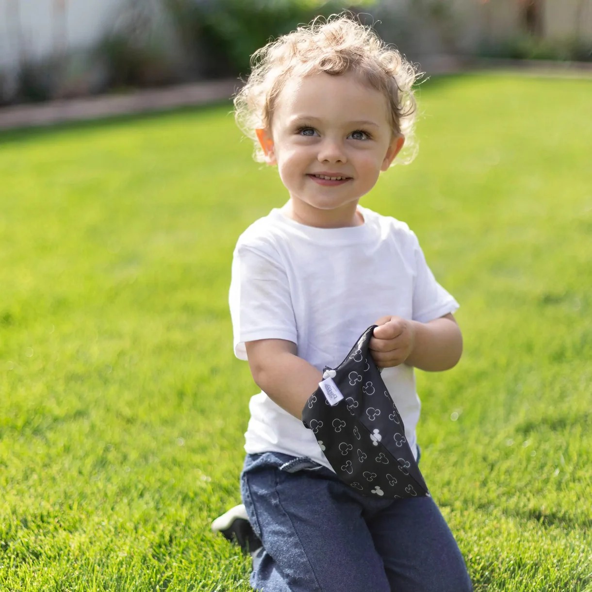 The better alternative to single-use plastic bags, our reusable  Snack Bags are made from the same easy-wipe waterproof and stain-resistant fabric as our SuperBib®. A smooth zipper closure locks in crumbs, and single-ply construction means no worrying about icky stuff growing between layers of fabric. Not just for food, snack bags make excellent organizers for storage and travel! Stash inside your purse, diaper bag, or travel bag. Great for pacifiers, cosmetics, cash, electronics, and more.