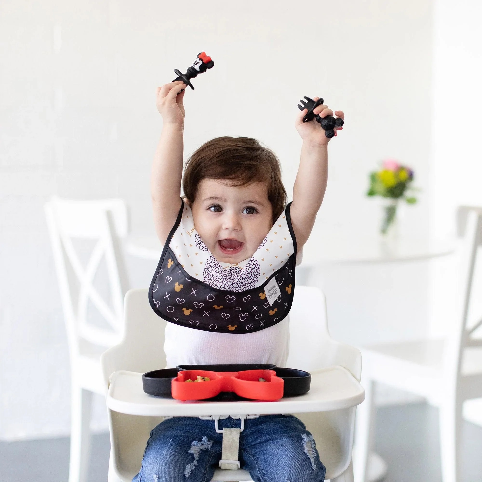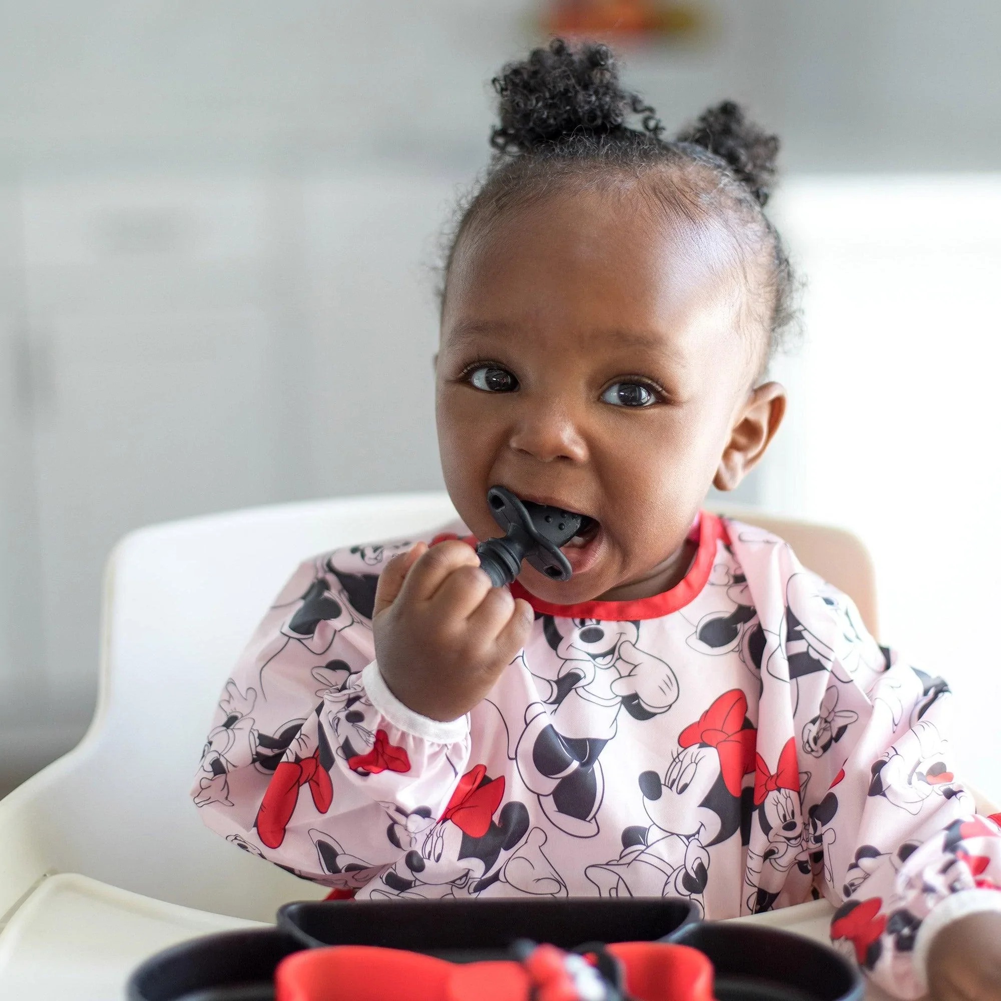 Nous avons conçu les Chewtensils pour l'étape 1 du sevrage dirigé par le bébé, qui consiste à initier les bébés au concept de tenir un ustensile et de se nourrir eux-mêmes. Fabriquées en silicone alimentaire souple et texturé, elles sont faciles à saisir et respectent les gencives sensibles. Les têtes sont pliables pour plus de sécurité. L'arrière de la tête de la cuillère présente des bosses sensorielles qui stimulent les gencives. Ils sont parfaits pour plonger dans les aliments en purée au début du sevrage dirigé par le bébé. Les ustensiles de mastication peuvent être mâchouillés par les jeunes bébés avant qu'ils ne soient prêts à passer à l'argenterie. Ils sont sûrs à utiliser - fabriqués en silicone 100 % alimentaire.
