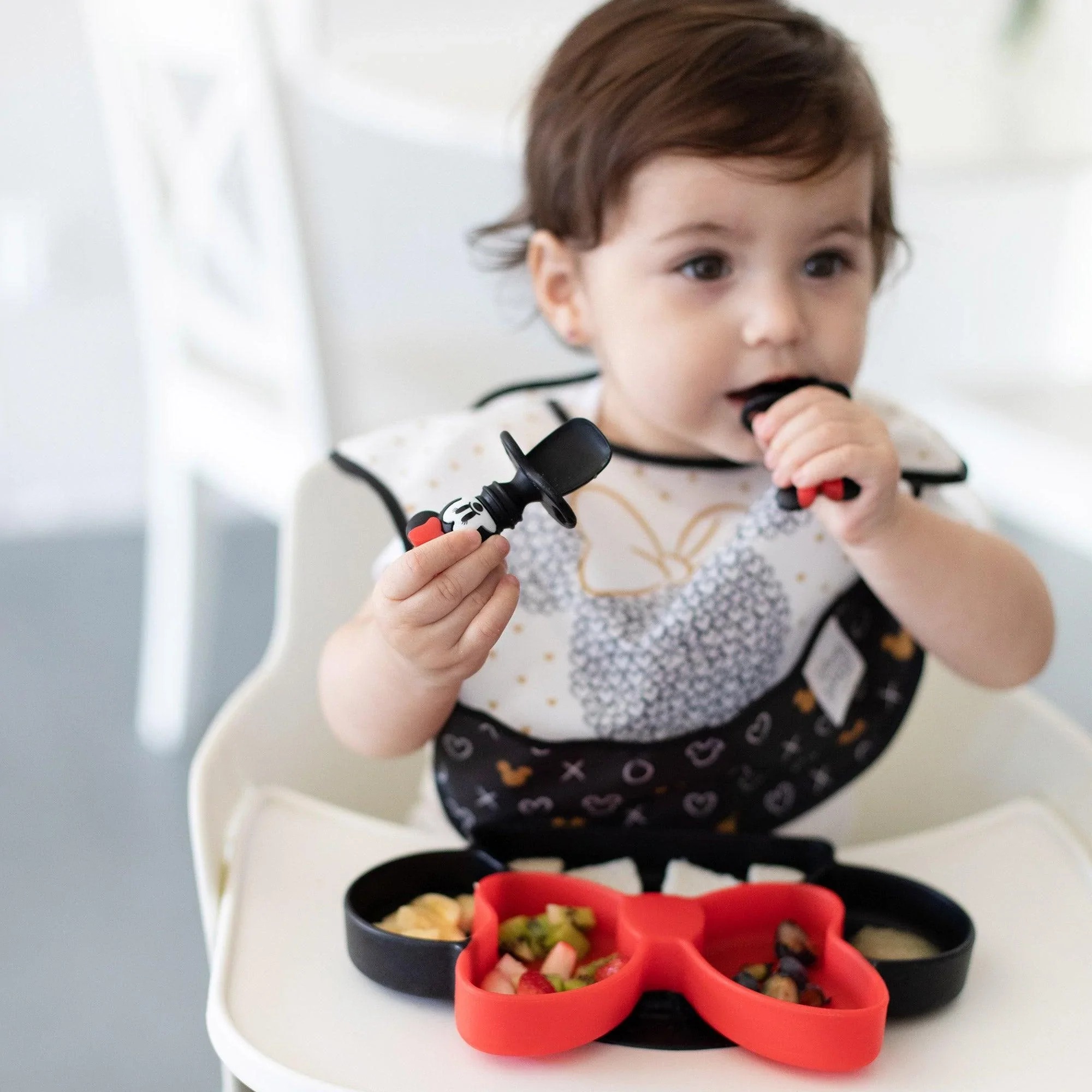 - Les ustensiles à mâcher sont destinés aux bébés qui ne maîtrisent pas encore l'auto-alimentation (ils conviennent mieux pour tremper et ramasser, mais pas encore pour couper des aliments solides).
