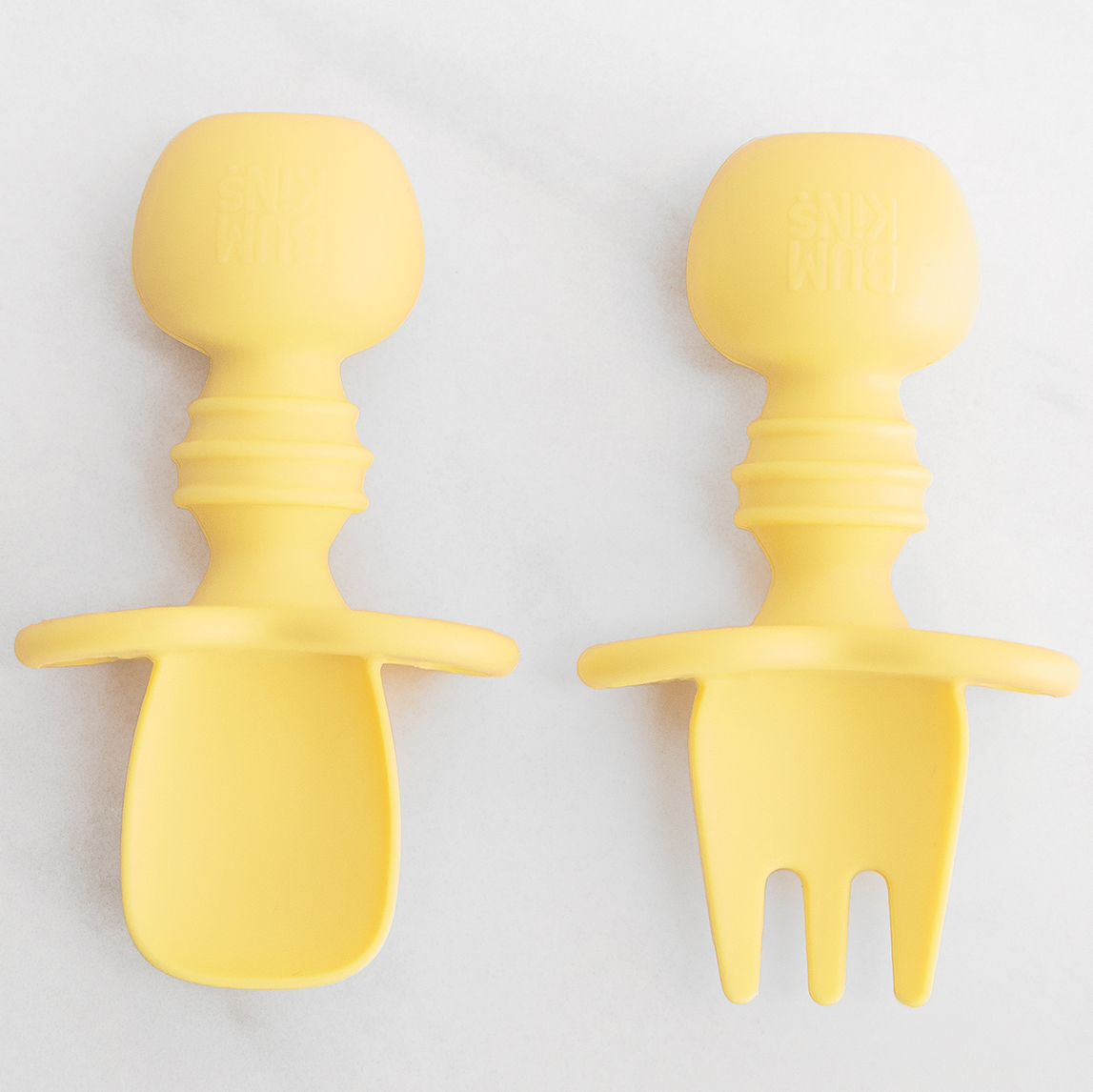 • Les ustensiles à mâcher sont destinés aux bébés qui ne maîtrisent pas encore l'auto-alimentation (ils conviennent mieux pour tremper et ramasser, mais pas encore pour couper des aliments solides).