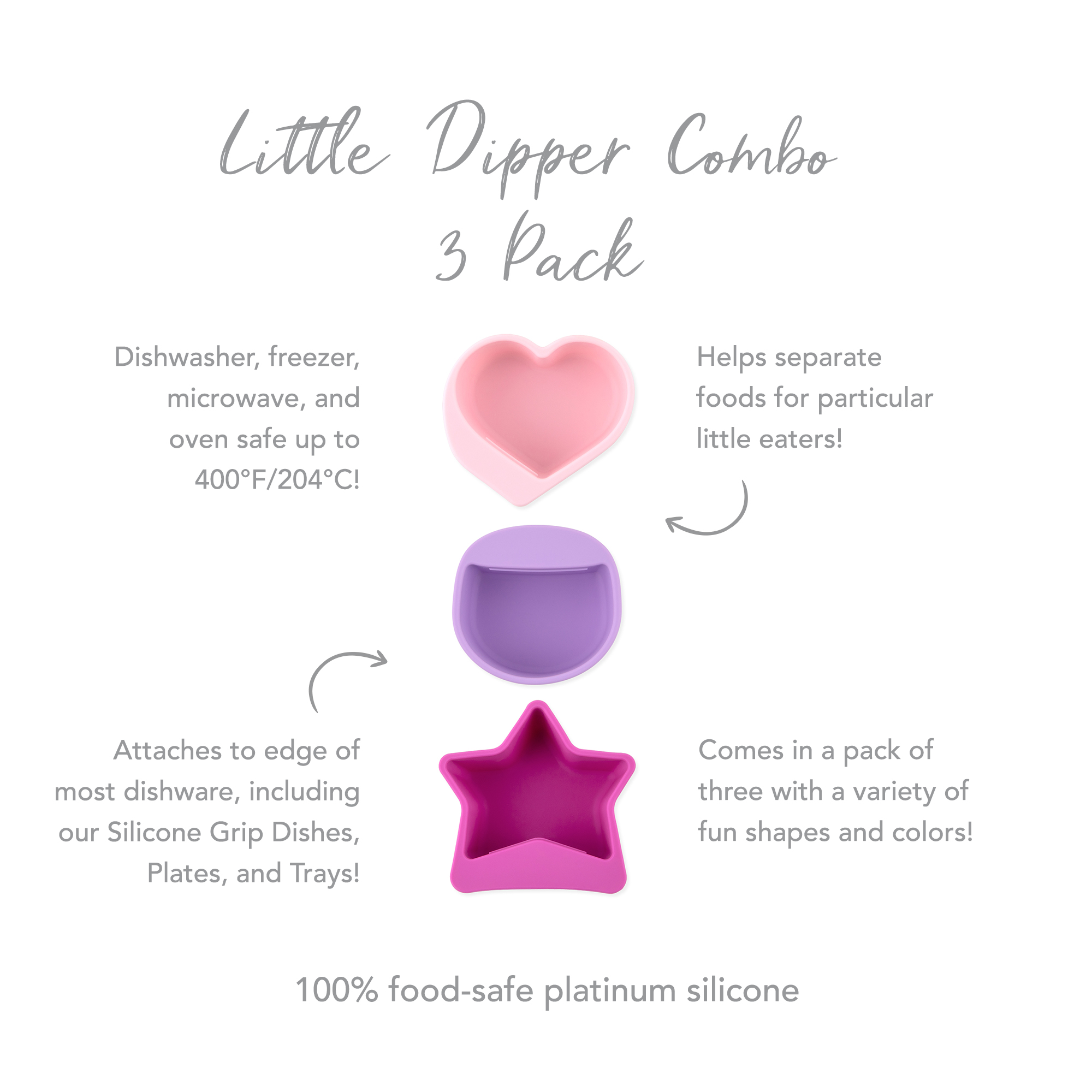 Nos bols à condiments en silicone sont parfaites pour les mangeurs difficiles qui préfèrent leur sauce sur le côté ! Grâce à ces gobelets à sauce réutilisables, vous pouvez fixer des sauces, des petits accompagnements et des purées sur le côté de notre vaisselle et de la plupart de vos plats à bords préférés, à la maison ou en déplacement. Notre set de sauces est disponible dans des formes et des couleurs amusantes. Le silicone alimentaire réutilisable vous permet de les laver et de les réutiliser, réduisant ainsi les déchets produits par les récipients en papier ou en plastique. Trempez bébé, trempez !