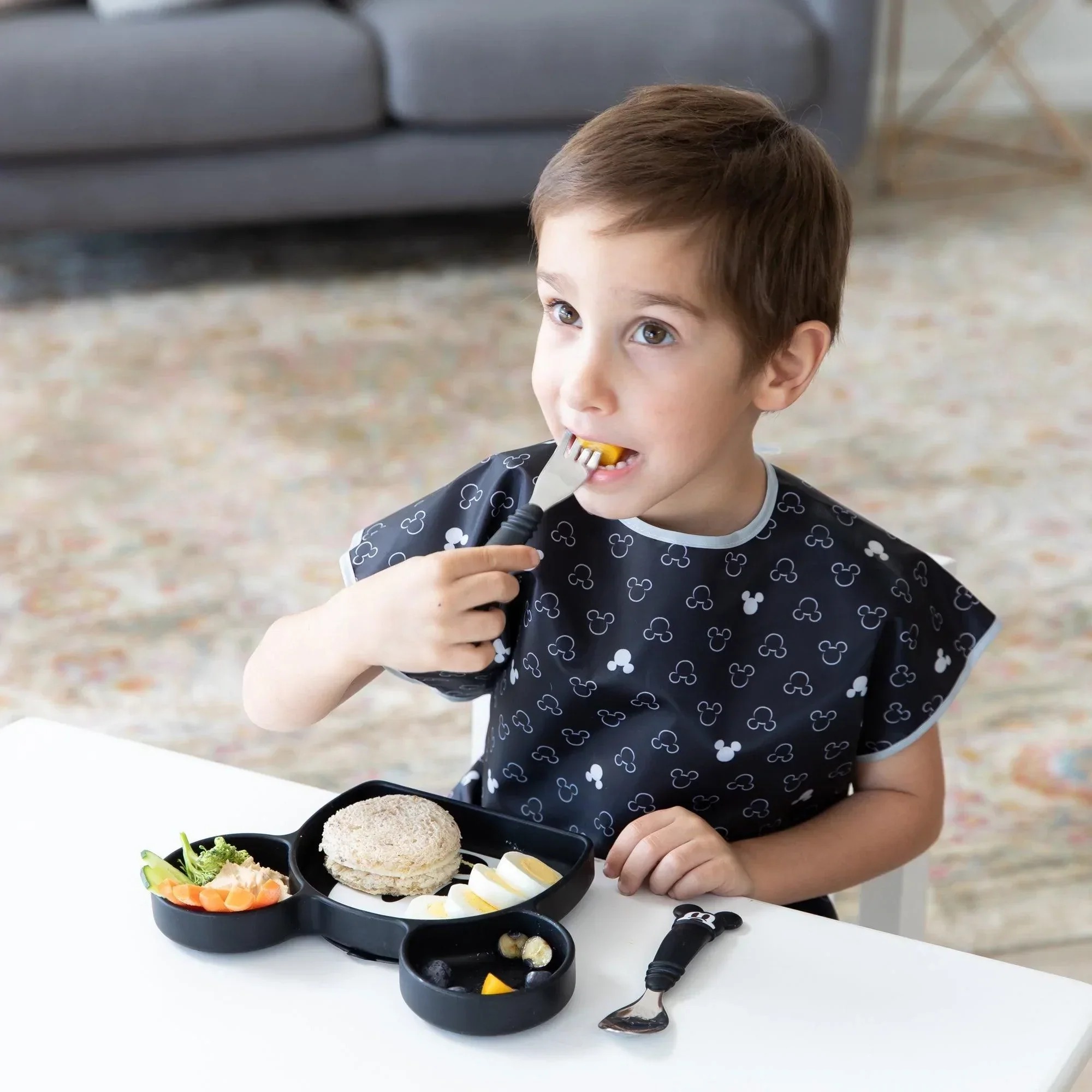 Les tout-petits peuvent se régaler à l'heure du repas grâce à notre ensemble cuillère + fourchette. Les têtes des fourchettes et des cuillères en acier inoxydable ont une taille et une forme adaptées aux tout-petits. Les têtes concaves aident à maintenir les aliments sur la fourchette ou la cuillère, ce qui favorise l'auto-alimentation avec les aliments solides. Les dents extérieures de la fourchette sont courbées pour aider à lancer les aliments et à les garder sur la fourchette. Les poignées en silicone texturé sont faciles à saisir. Utilisation sûre - fabriqué à partir de silicone 100 % alimentaire.